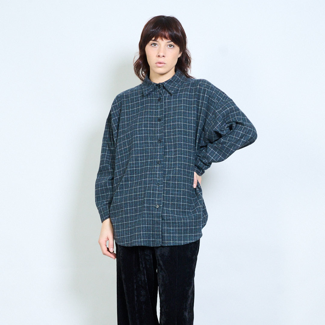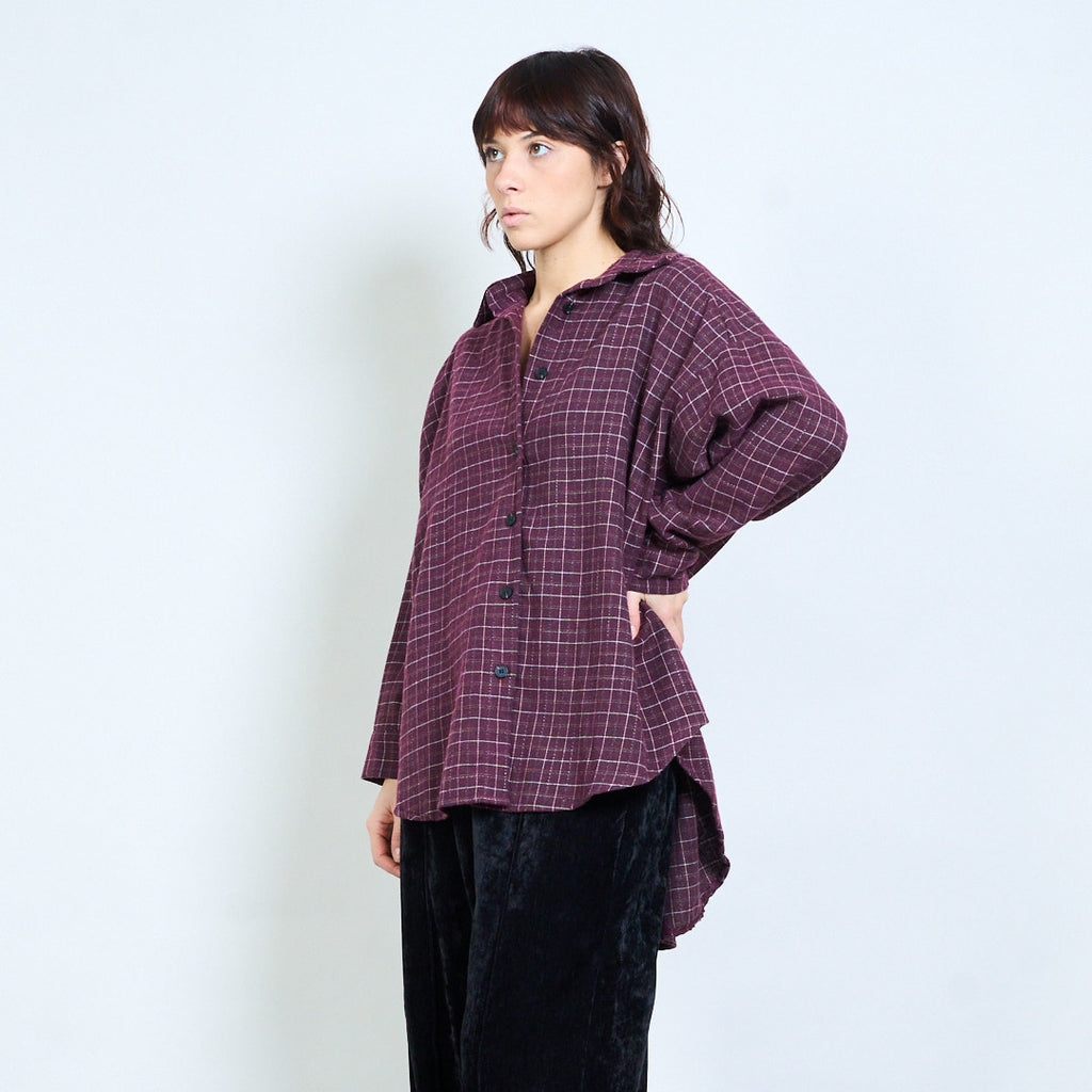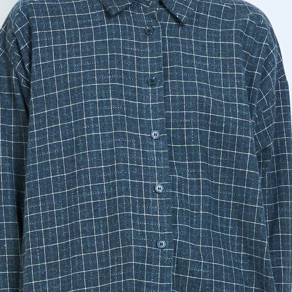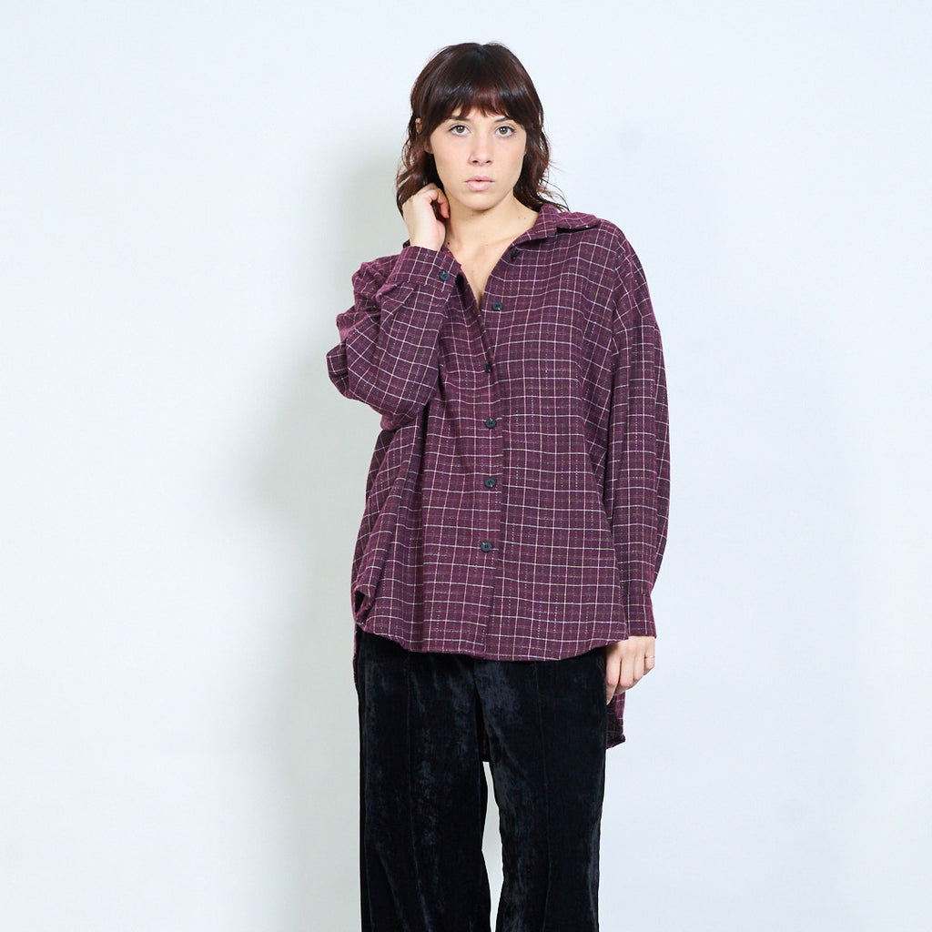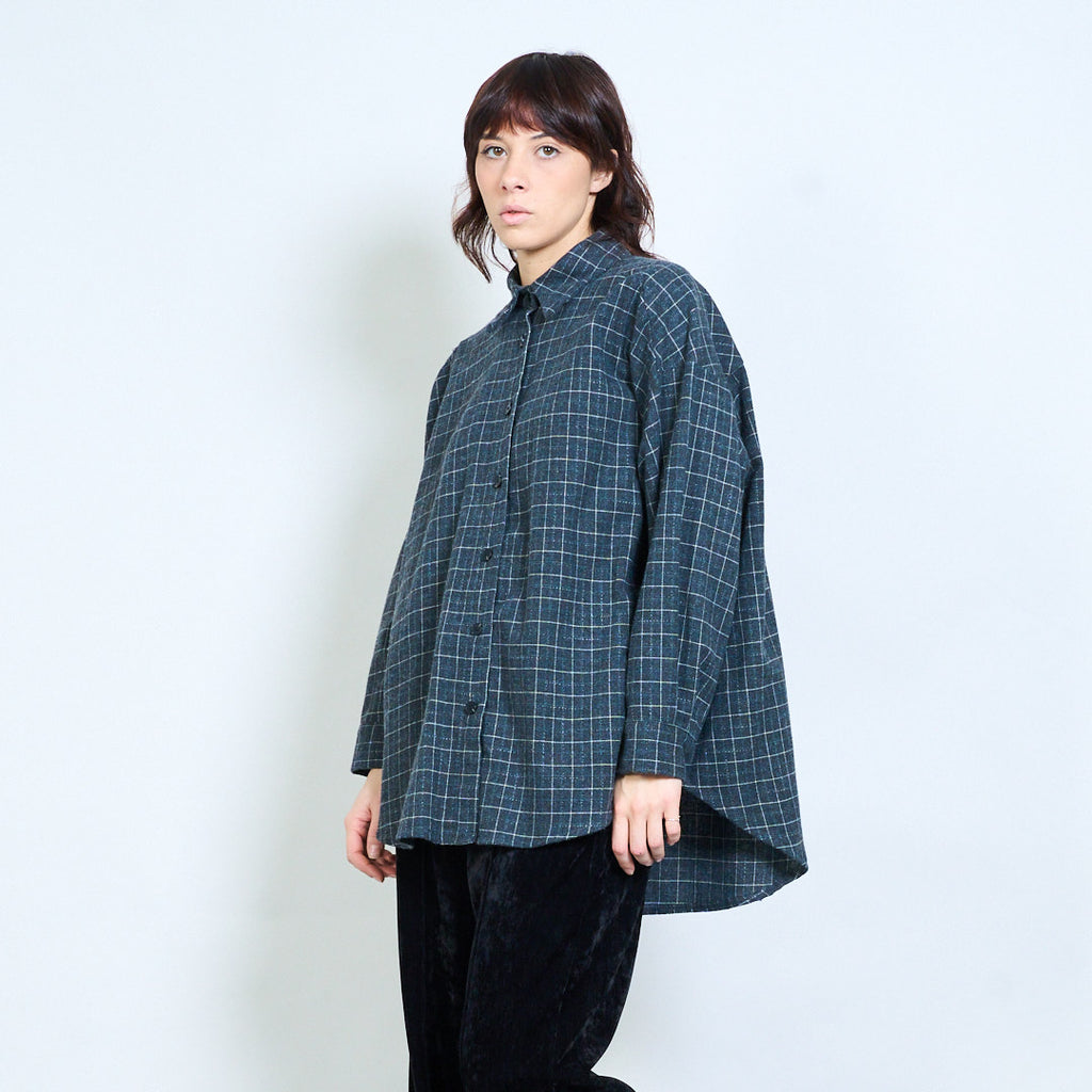 格纹宽松纽扣领衬衫批发