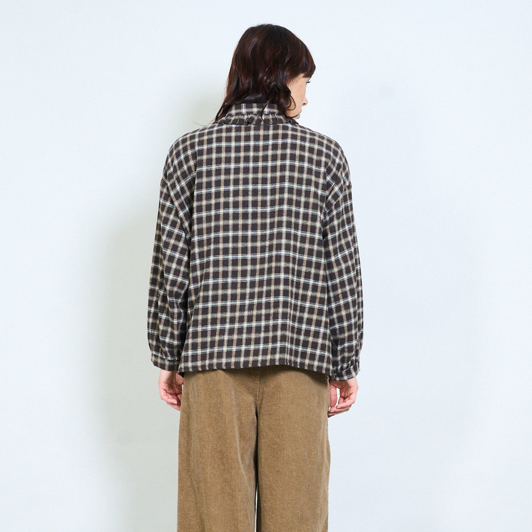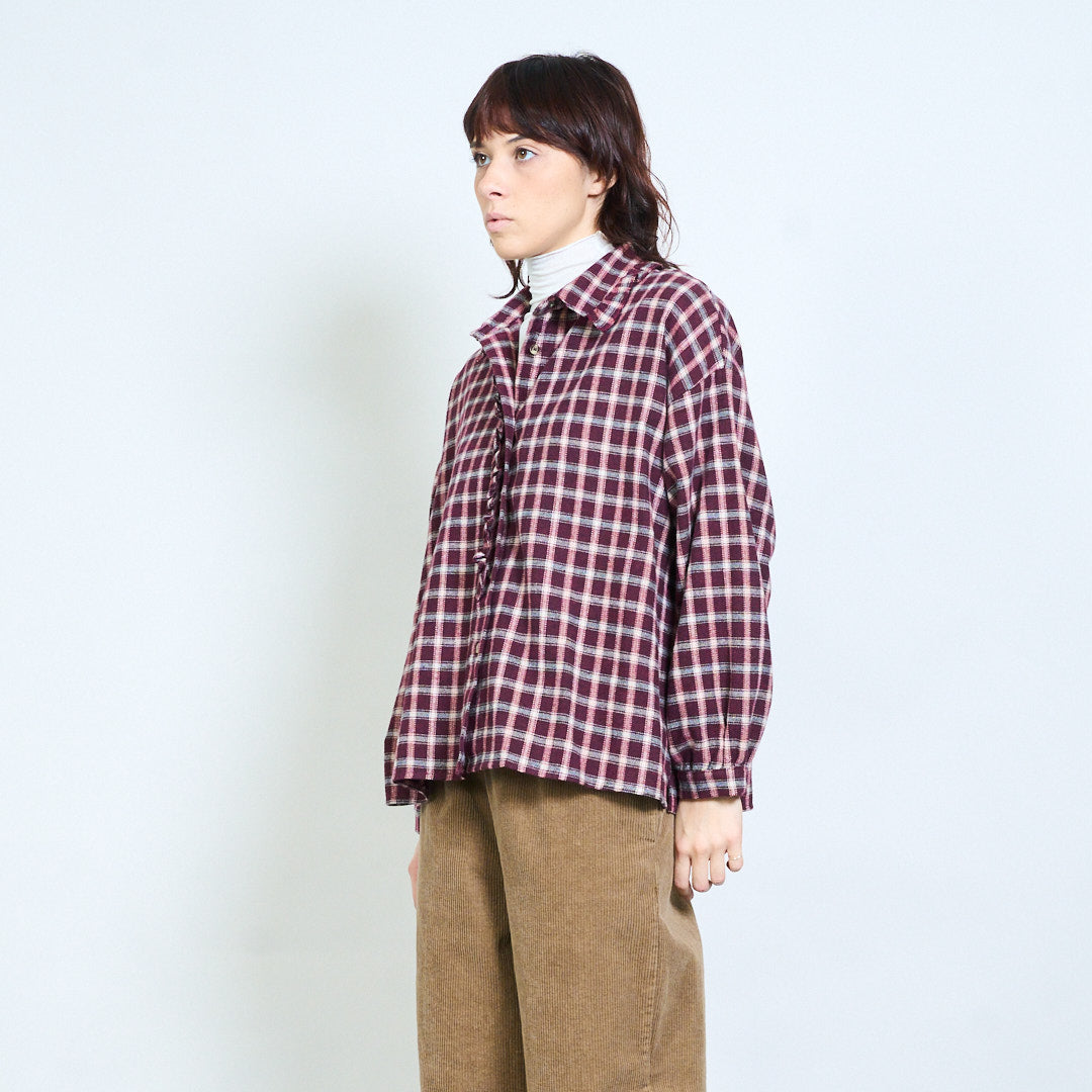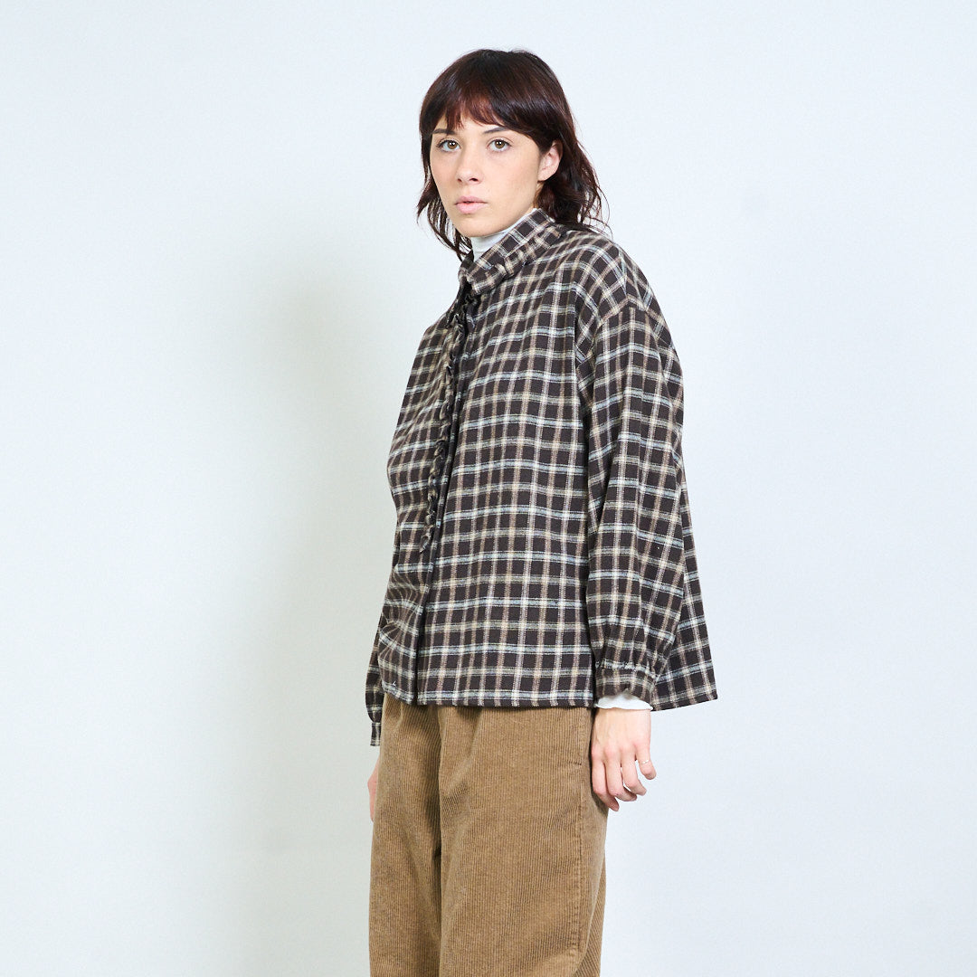 格纹系带细节宽松领衬衫批发
