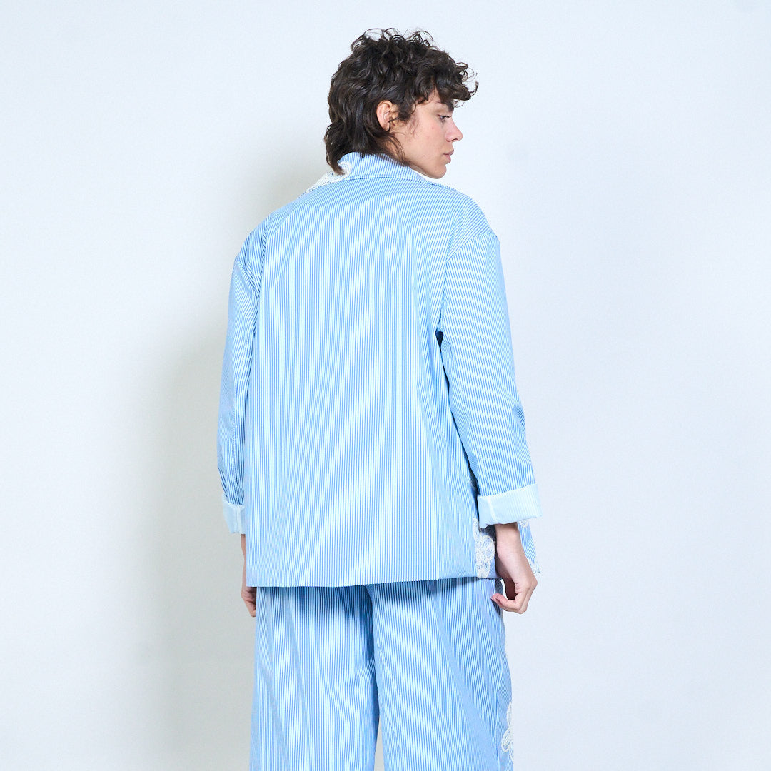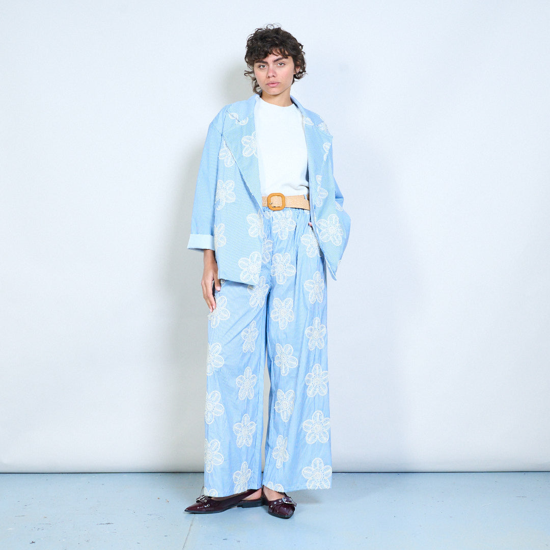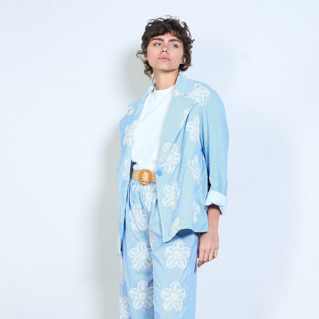 花卉绳绣细条纹西装外套批发