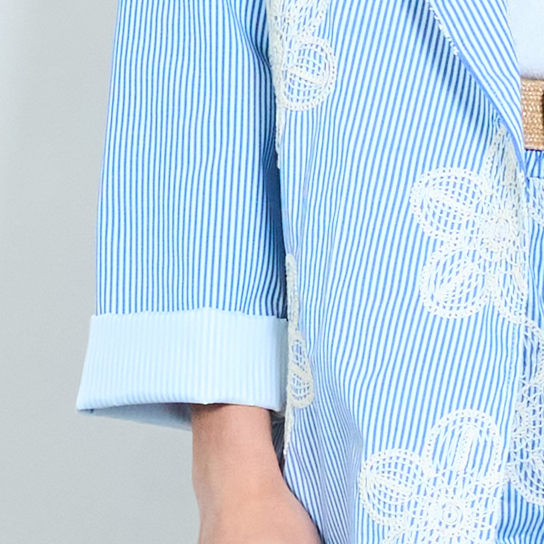 - 卷袖饰面和单纽扣前开合
