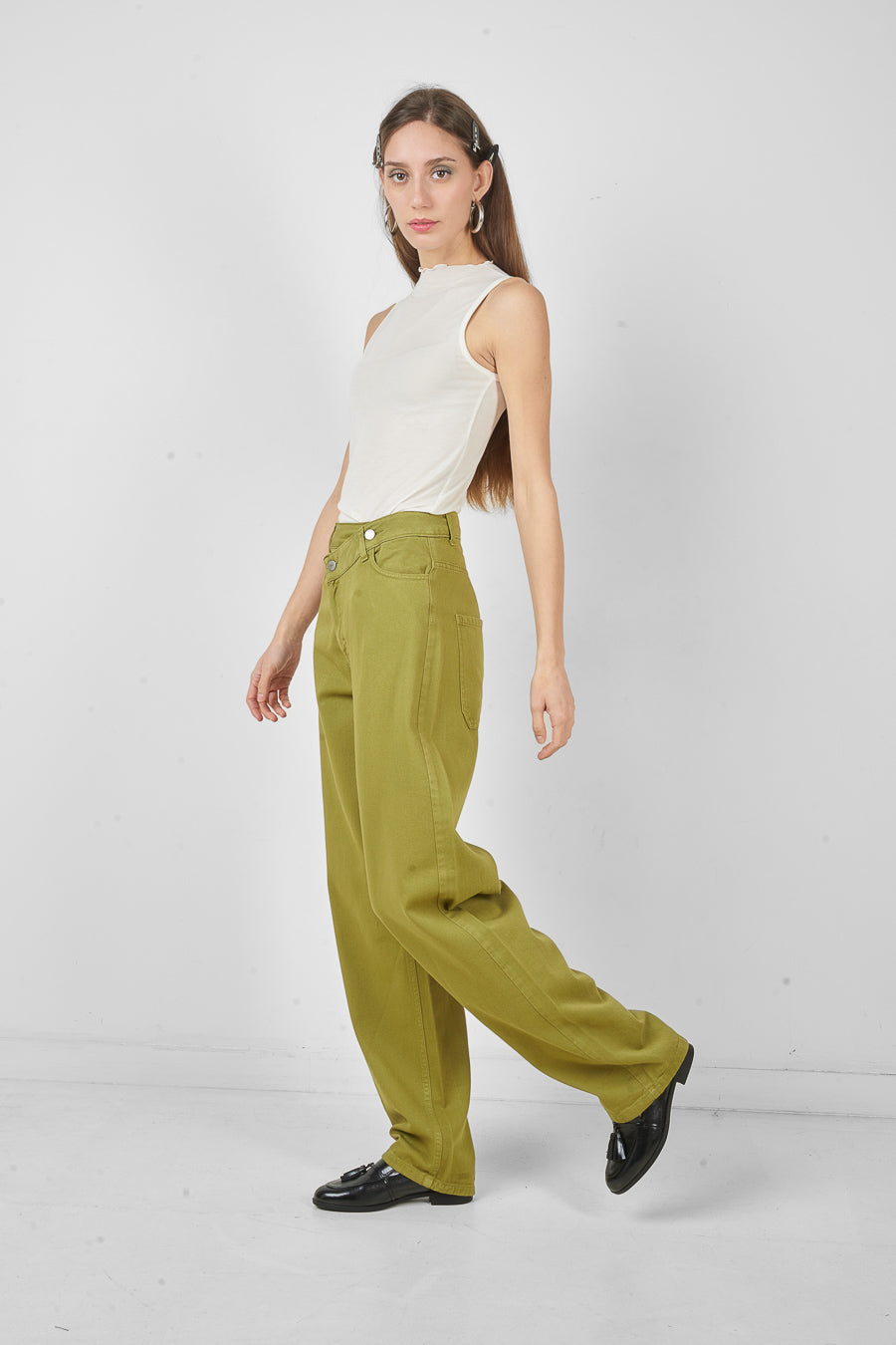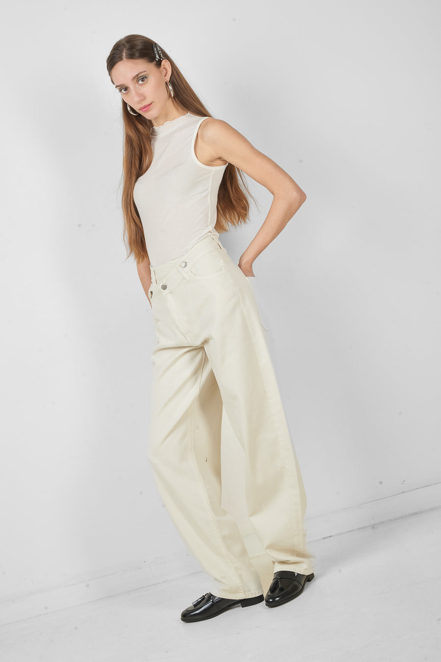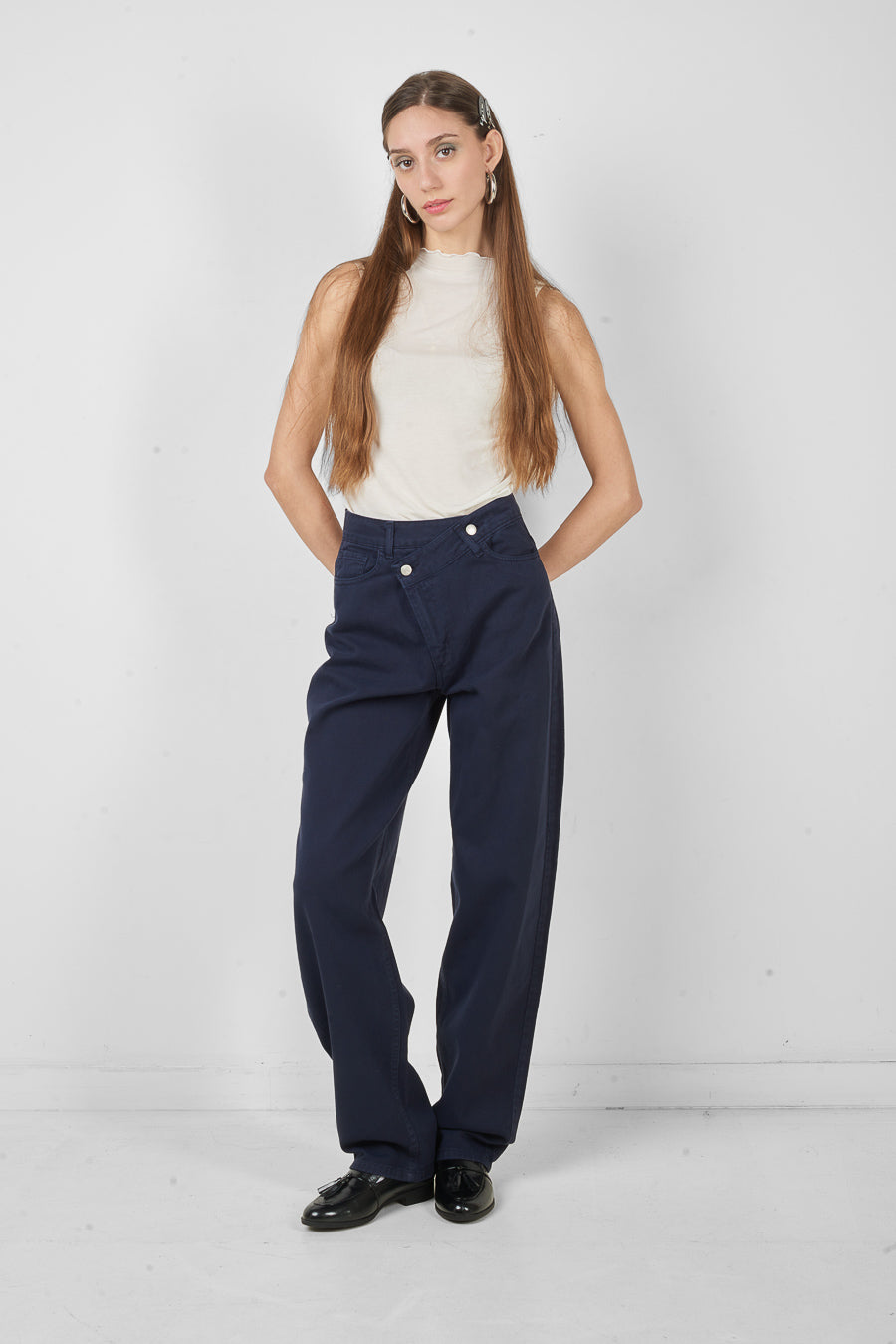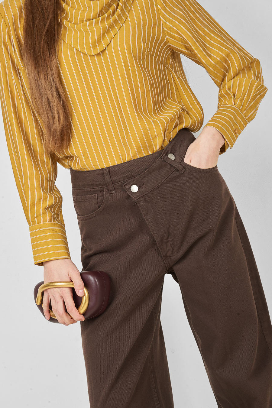高腰不对称纽扣阔腿裤批发