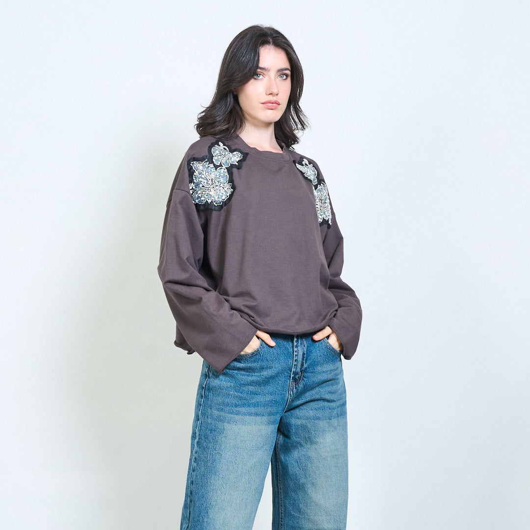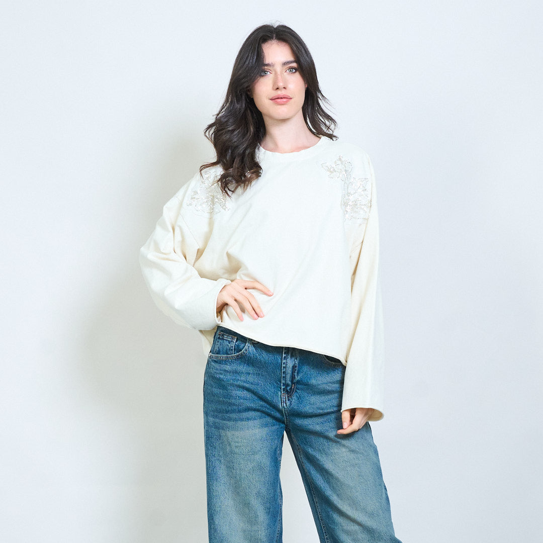 亮片花贴花运动衫批发