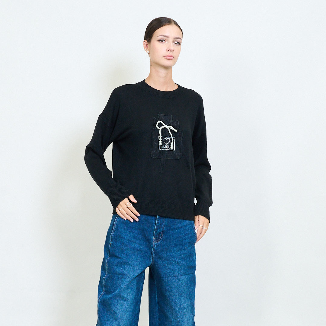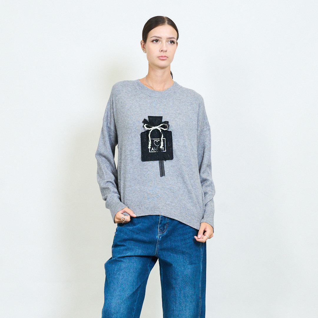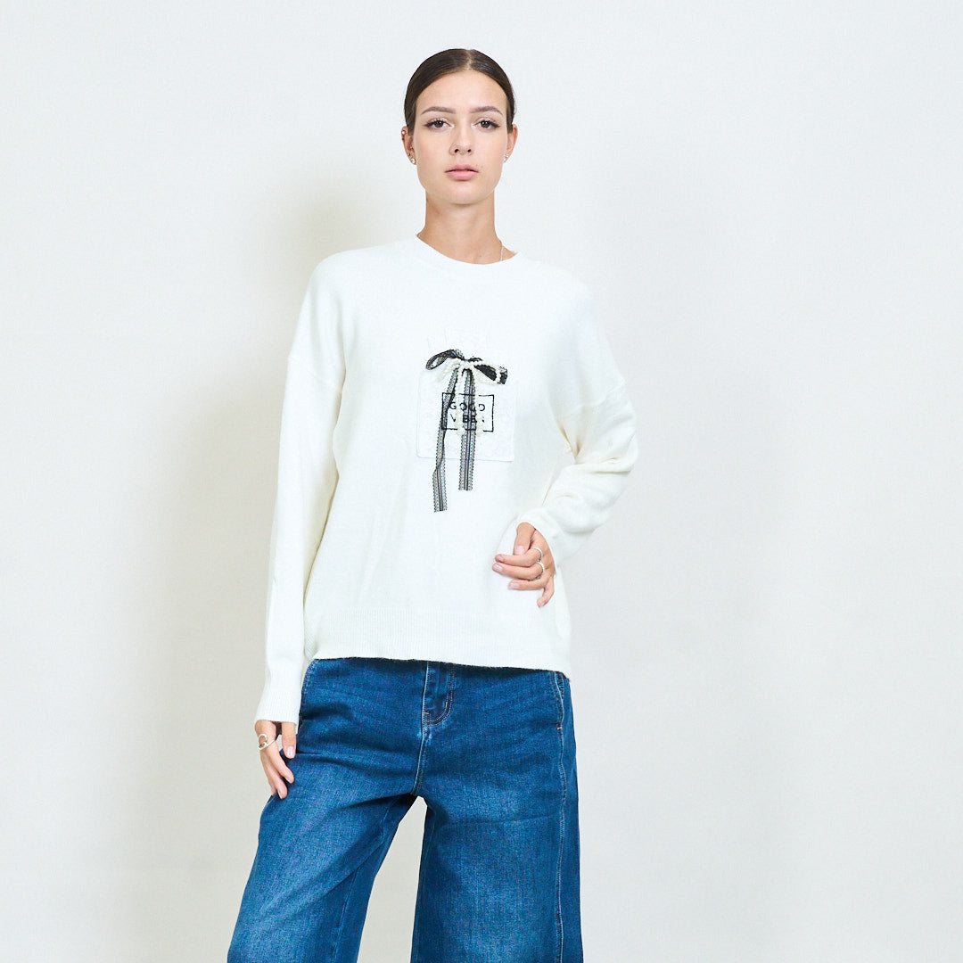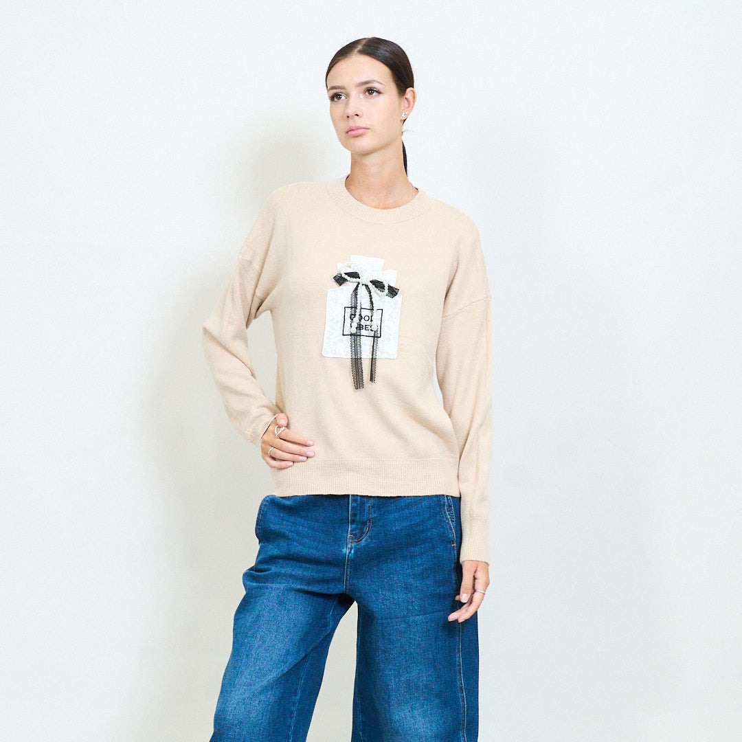 弓贴纸细节针织毛衣批发