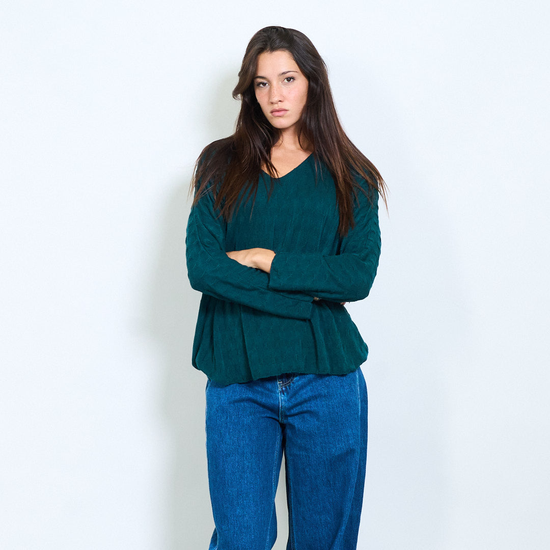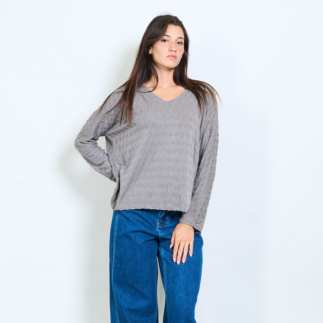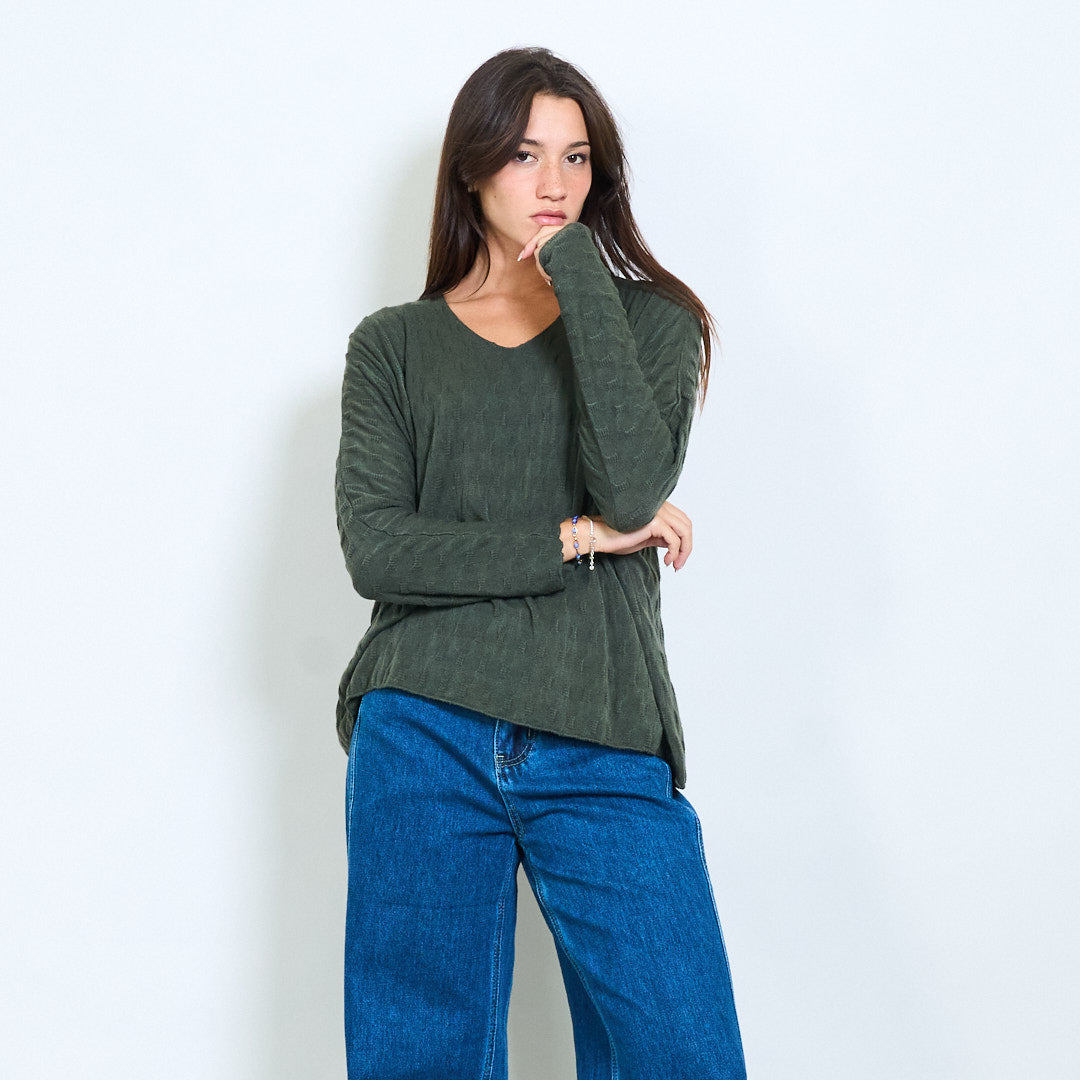 纹理的V领针织长袖批发