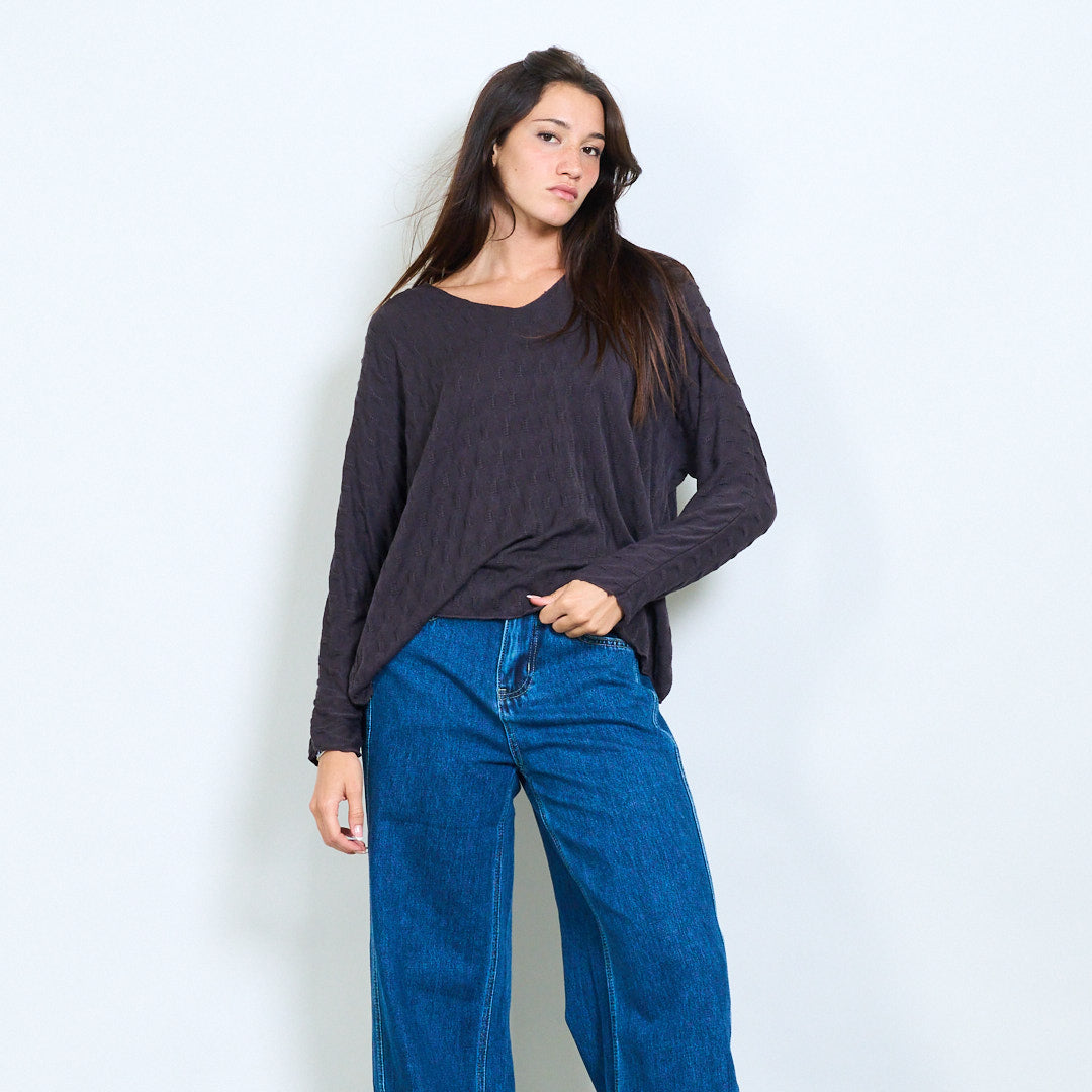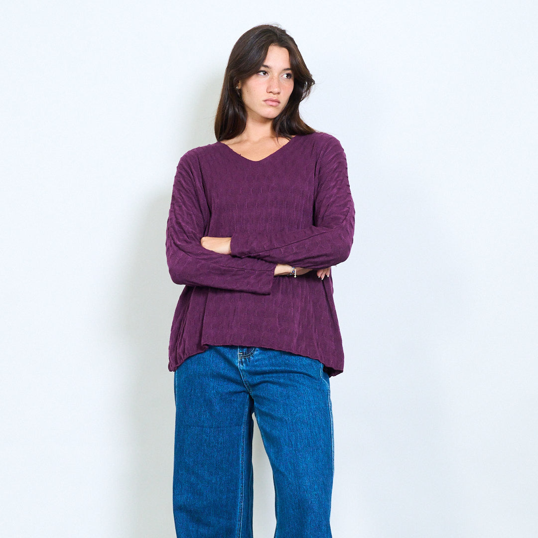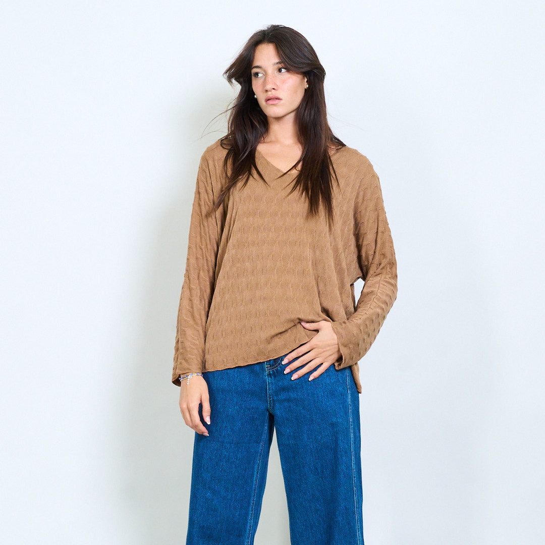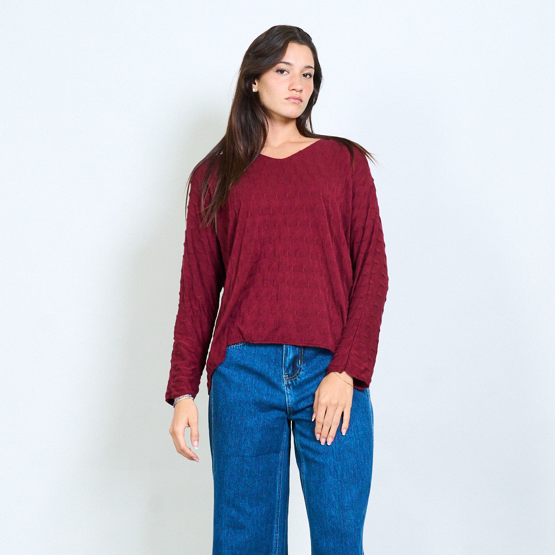 纹理的V领针织长袖批发
