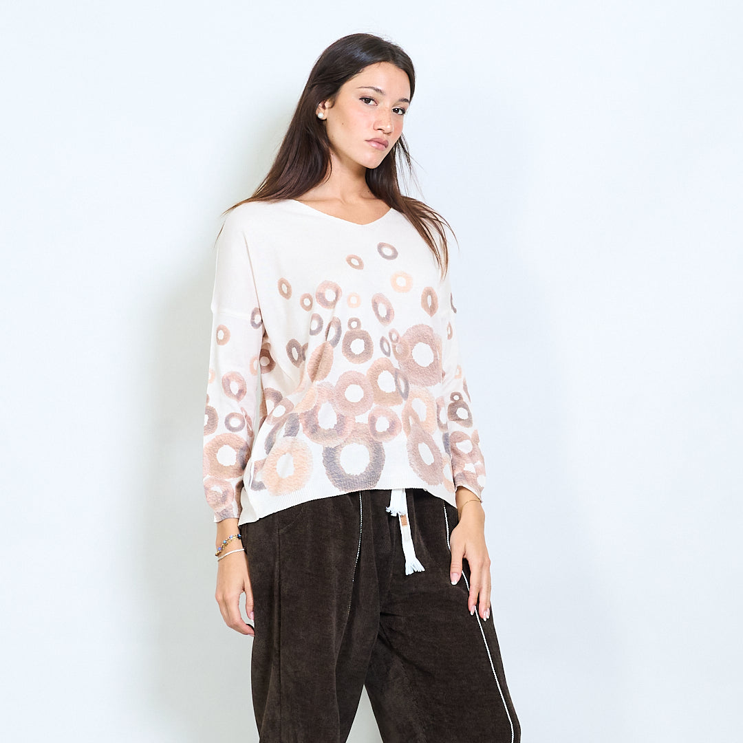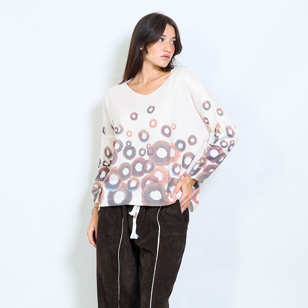 v颈部超大针织上衣,抽象圆批发