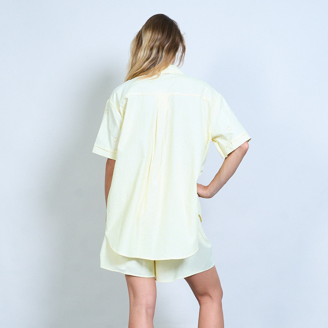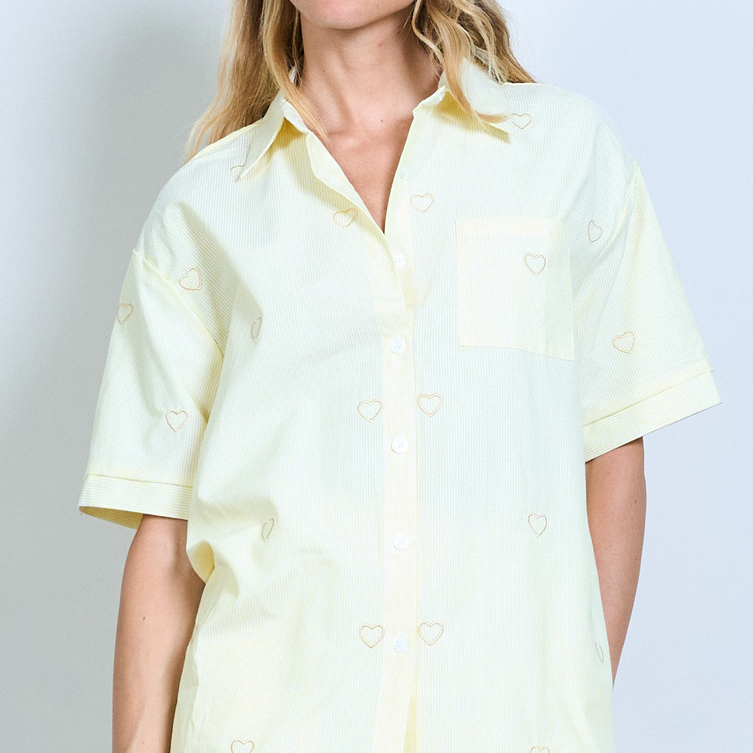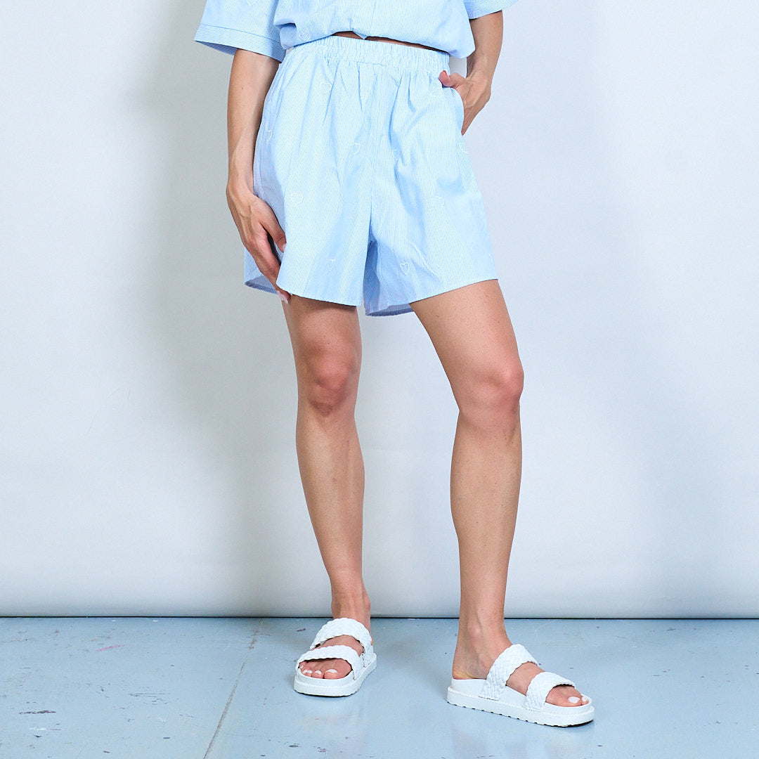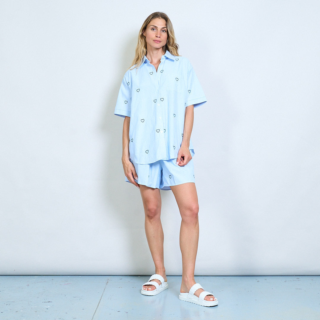 心脏刺绣条纹衬衫和短裤坐标套装