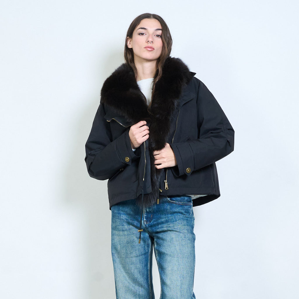毛绒领不对称拉链冬季短派克大衣鸭绒服批发