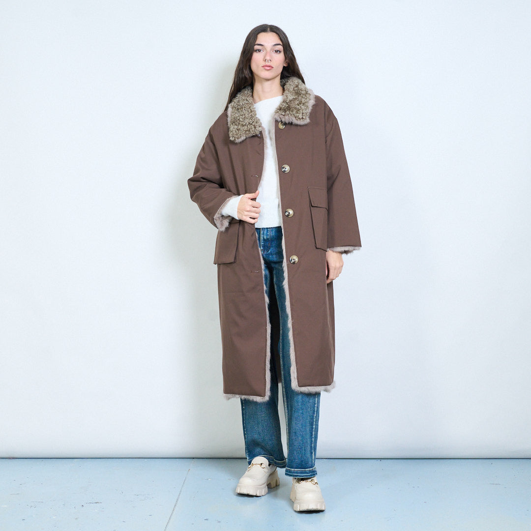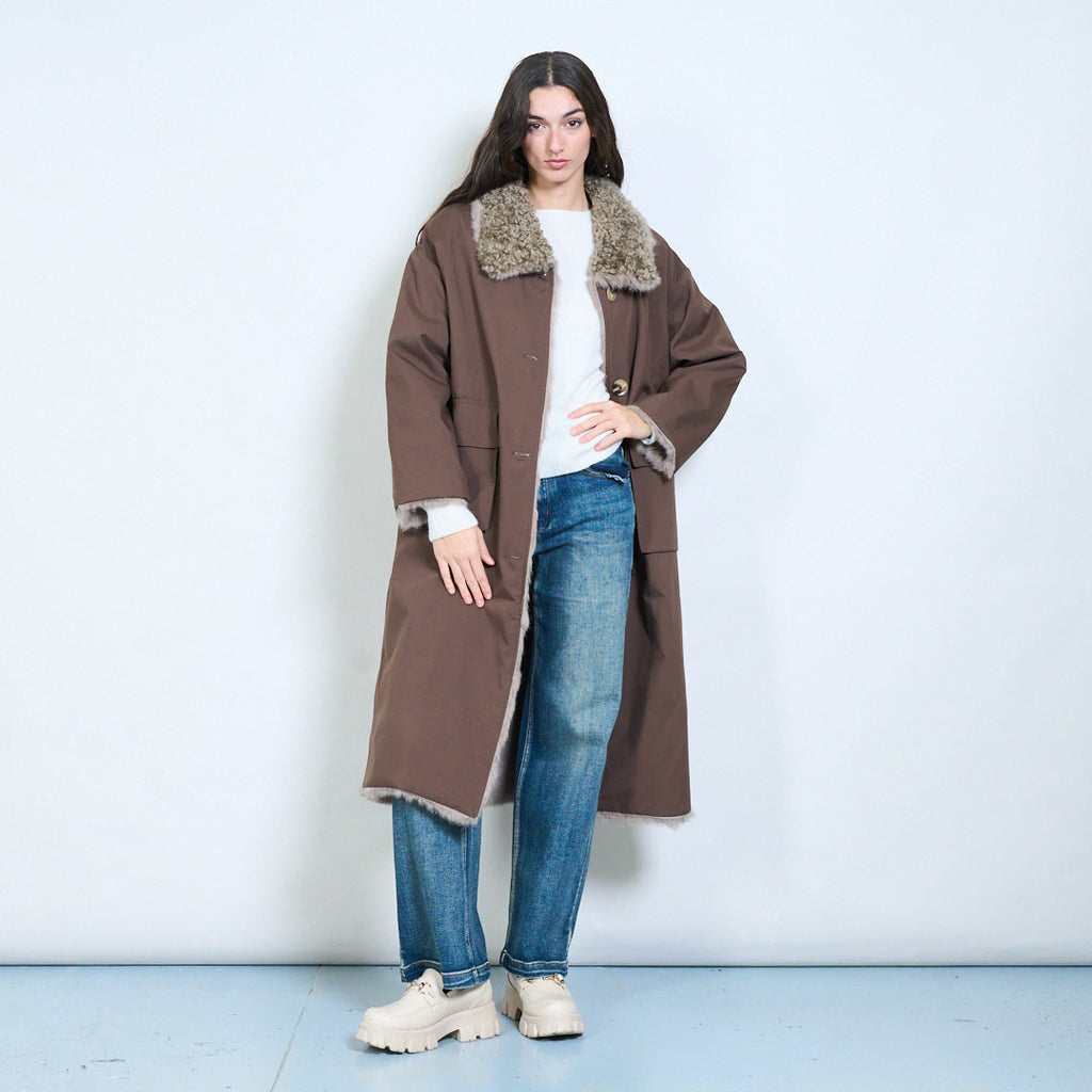 • 超大廓形长款保暖,打造轻松、精致的外套造型