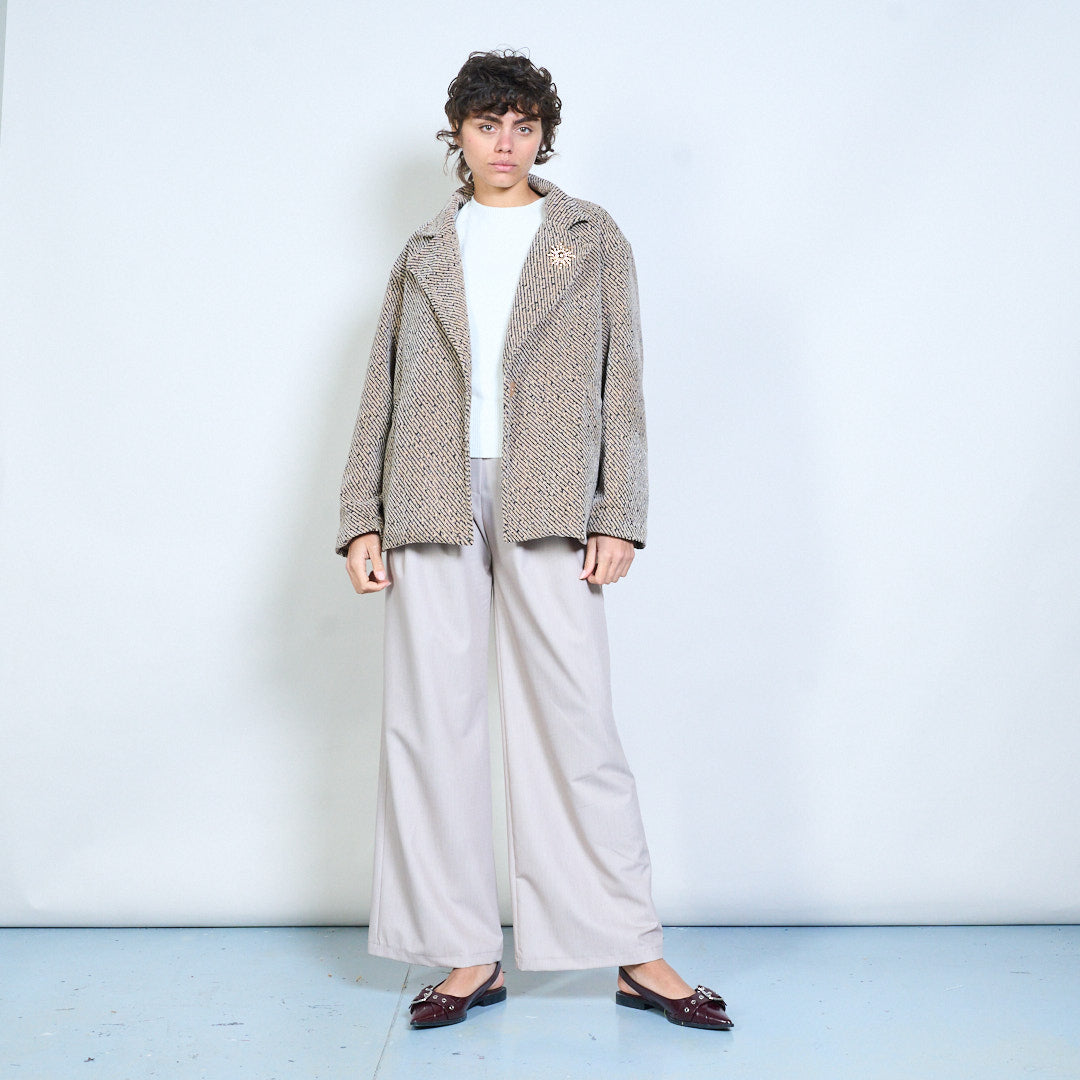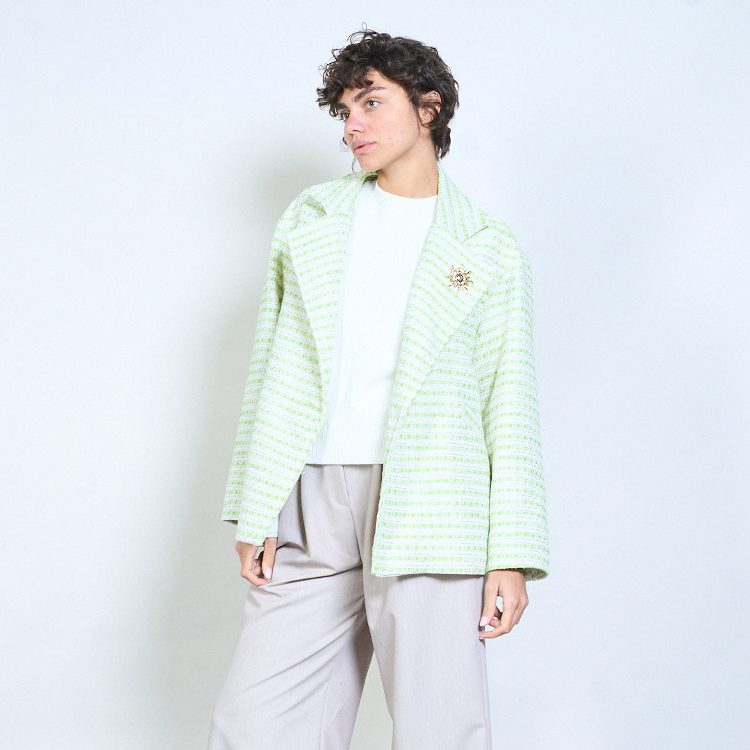 斑点编织图案和胸针批发纹理花呢西装外套