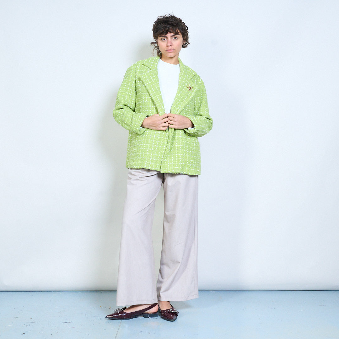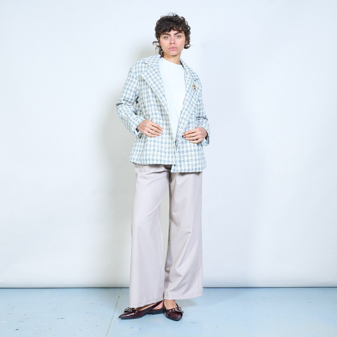 象牙色花呢西装外套,经典编织格纹纹理和海星胸针批发