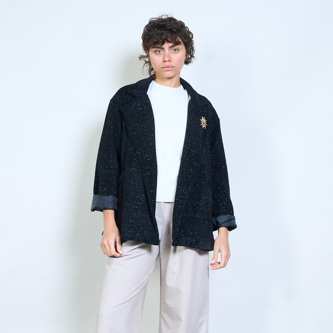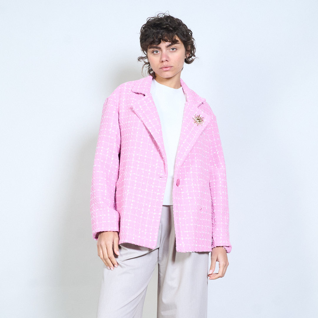 带装饰胸针的纹理编织西装外套批发