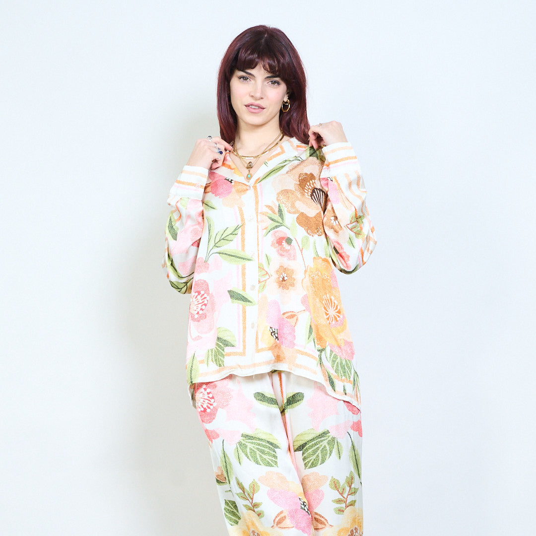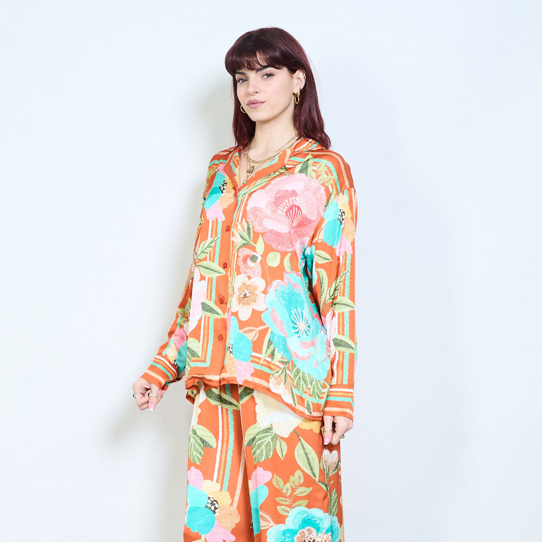 - 衬衫正面饰有抽象风景印花