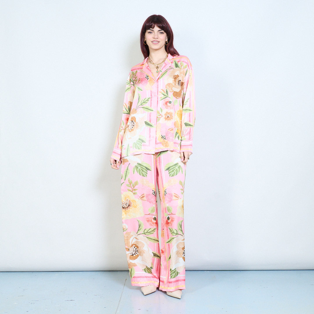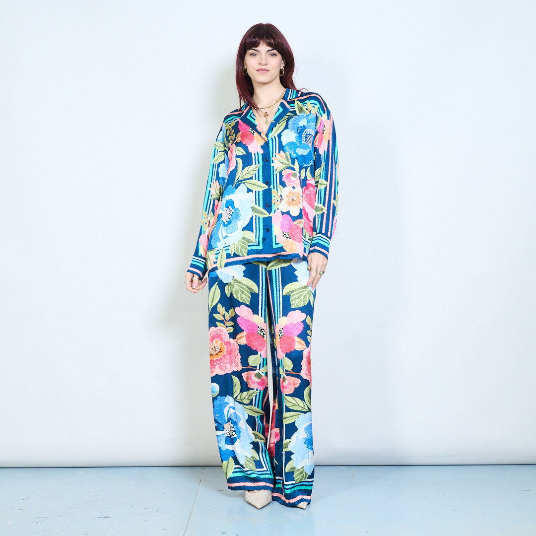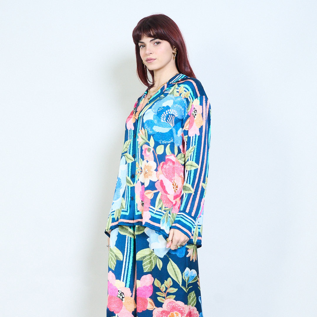 花卉条纹印花领扣前衬衫批发