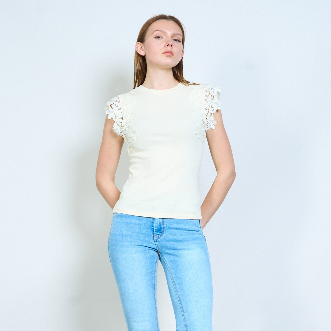 - 短袖,饰有装饰蕾丝片