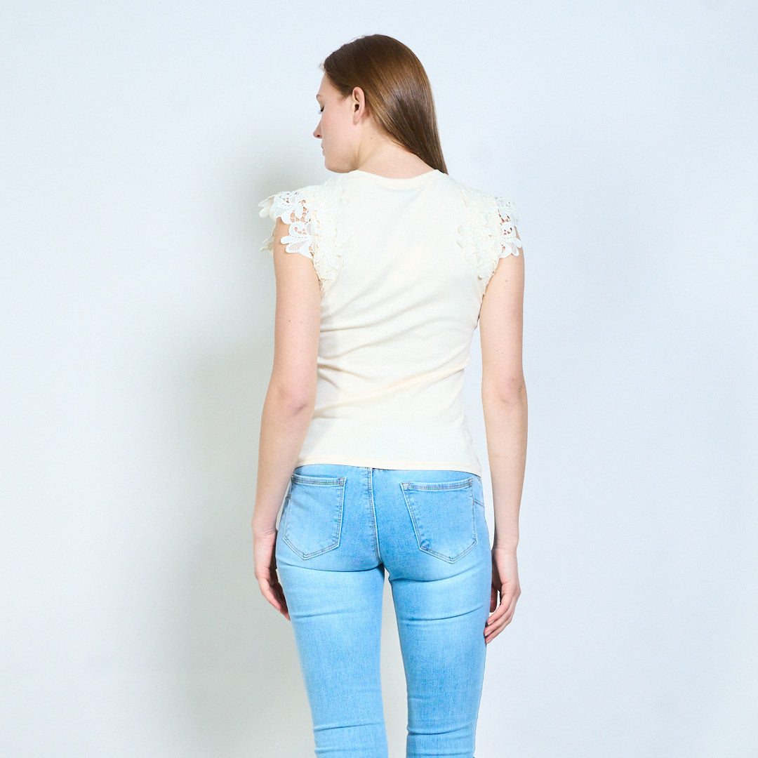 花卉蕾丝贴花肩T恤批发