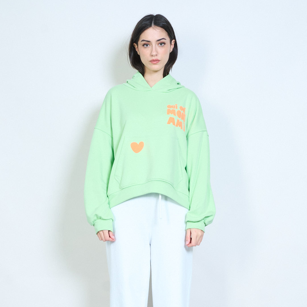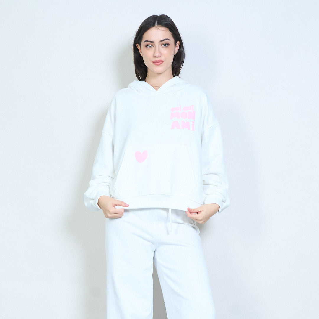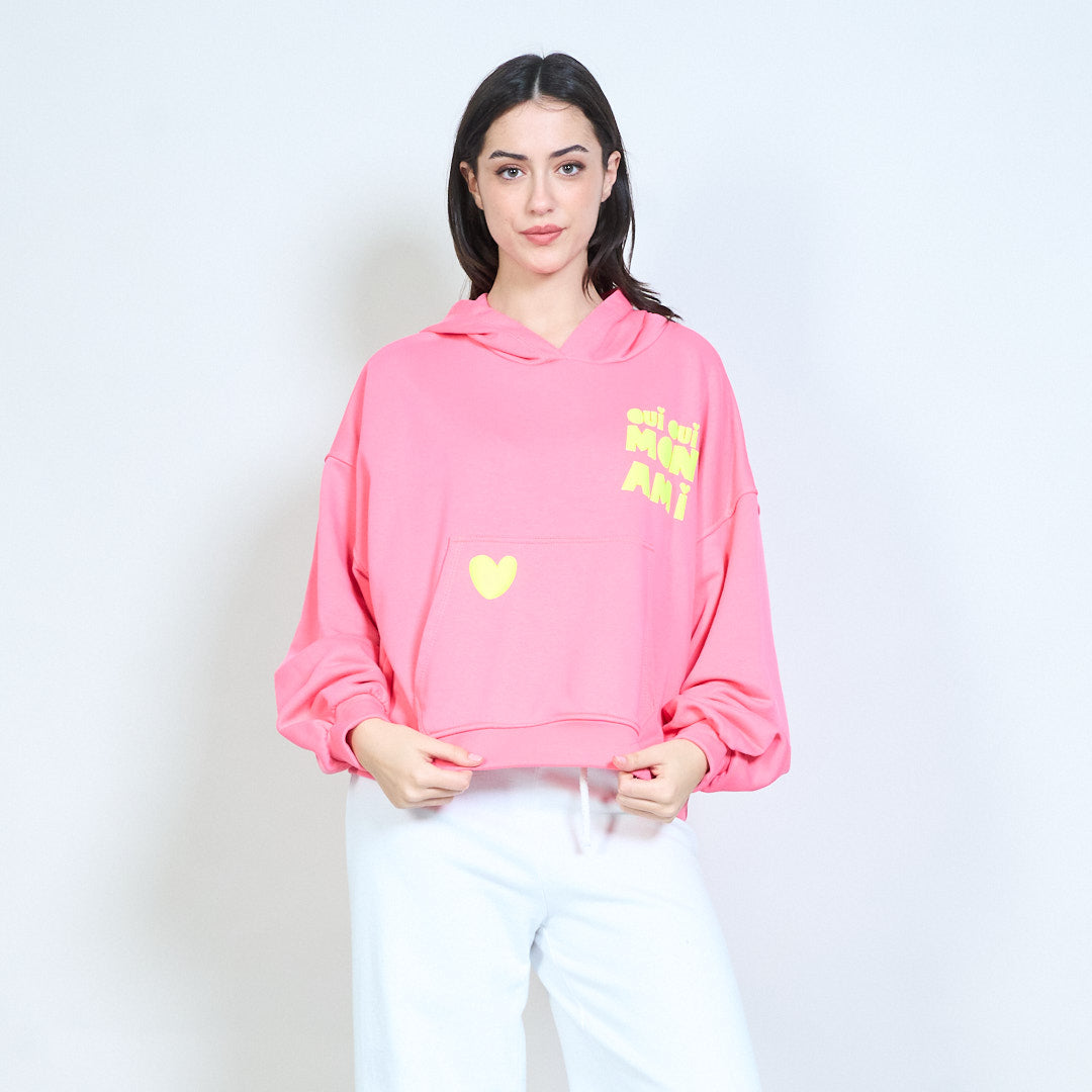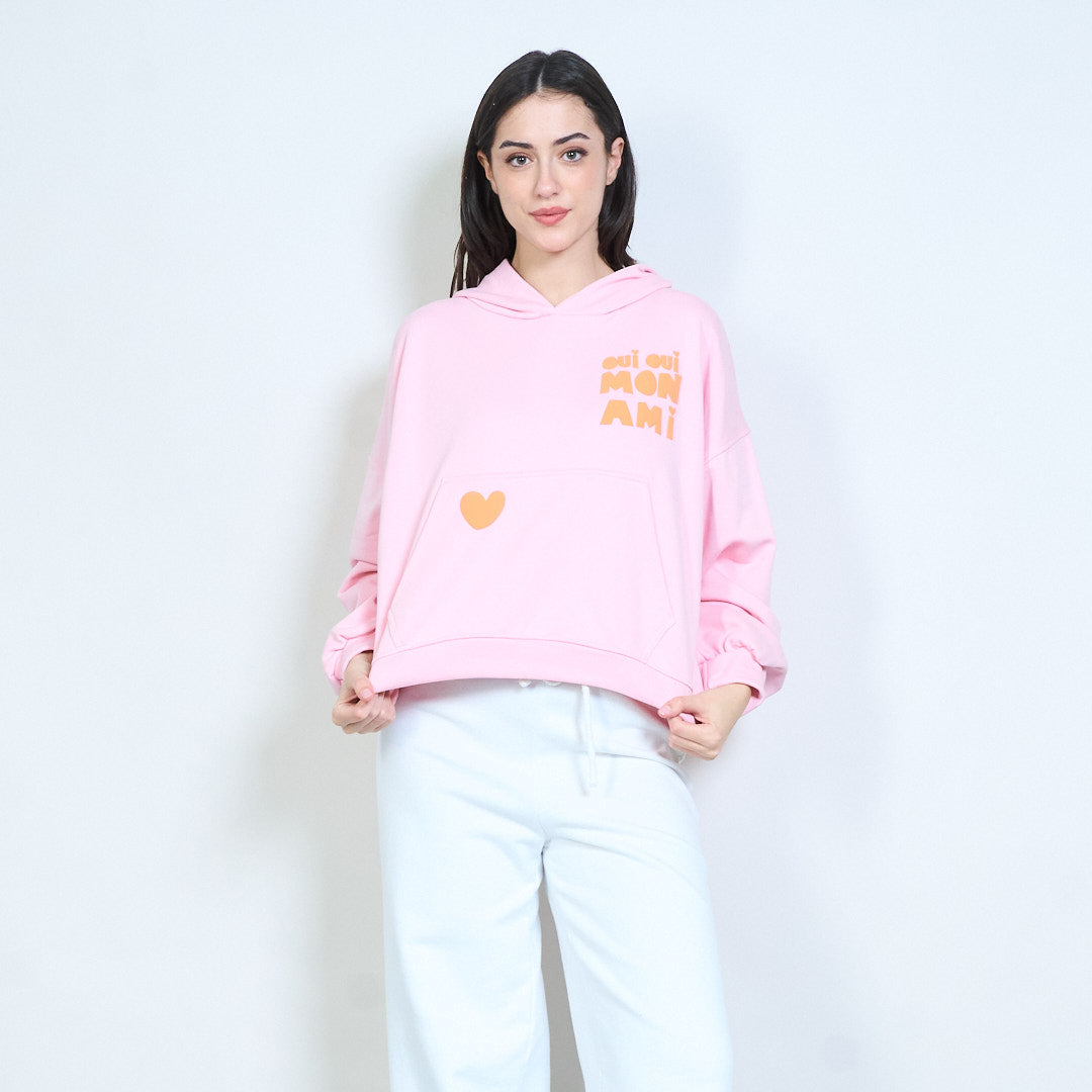 标语图案“Oui Oui Mon Amour”心形细节连帽运动衫批发