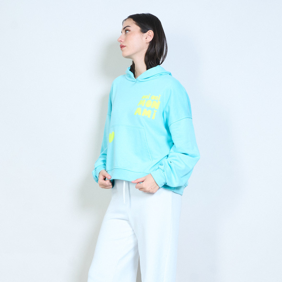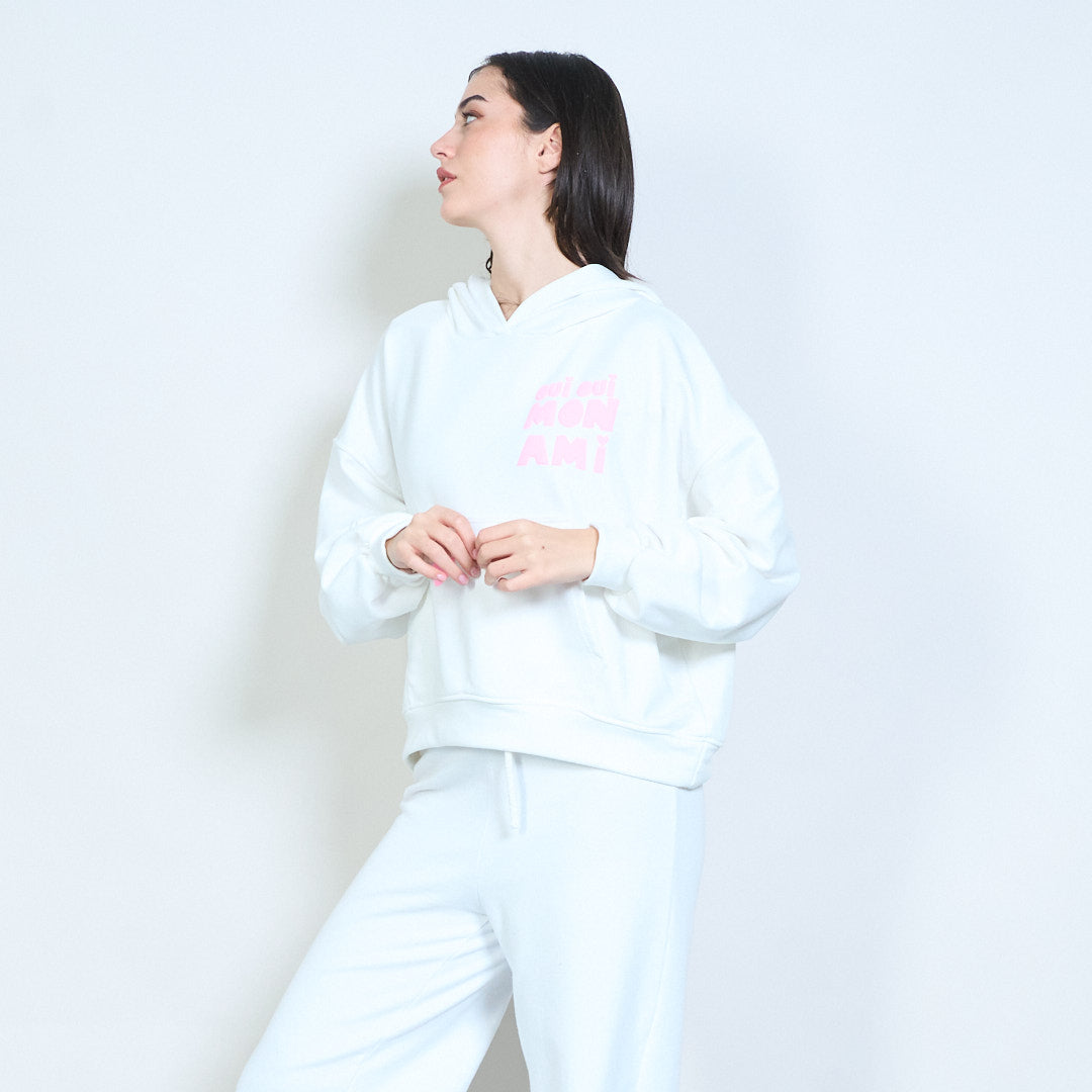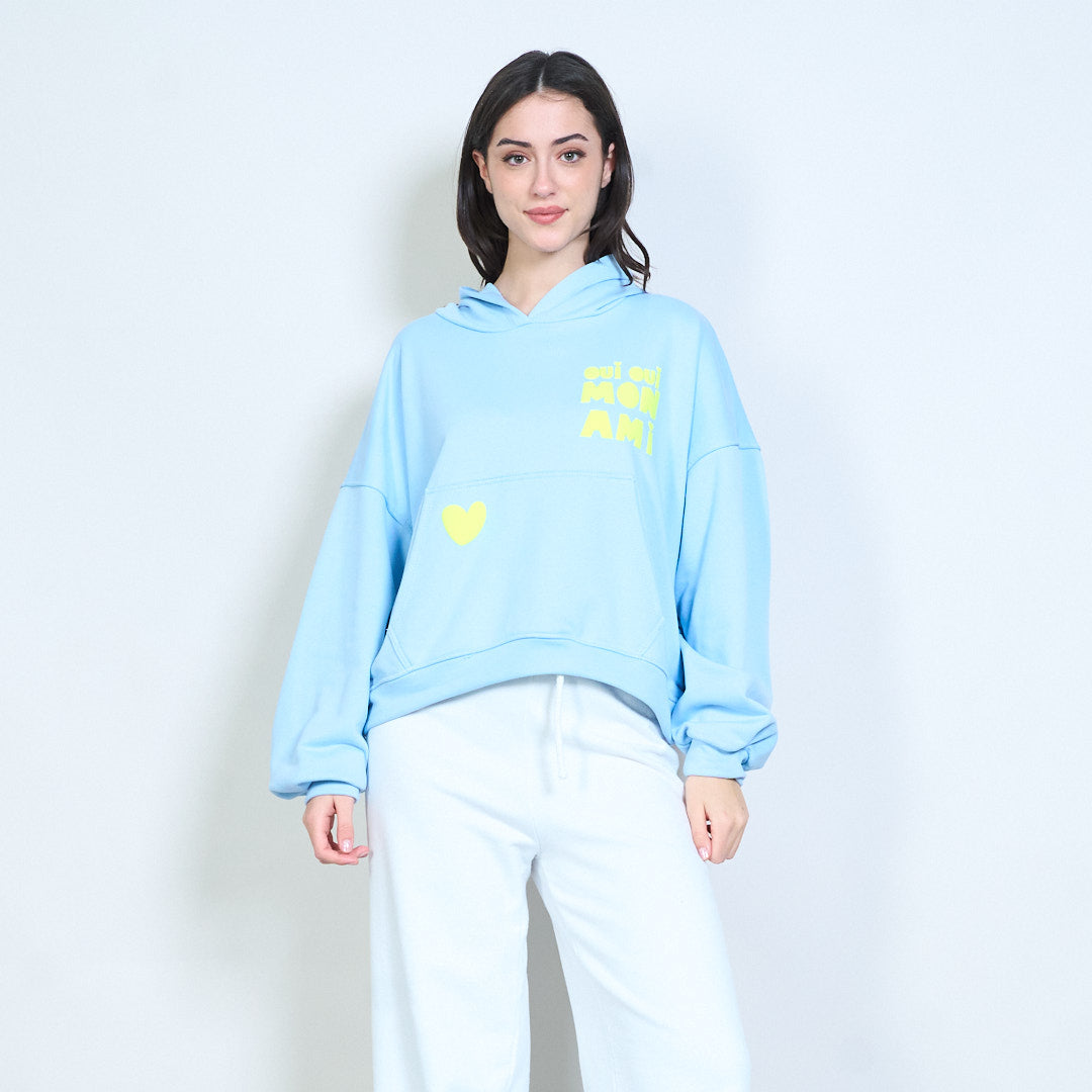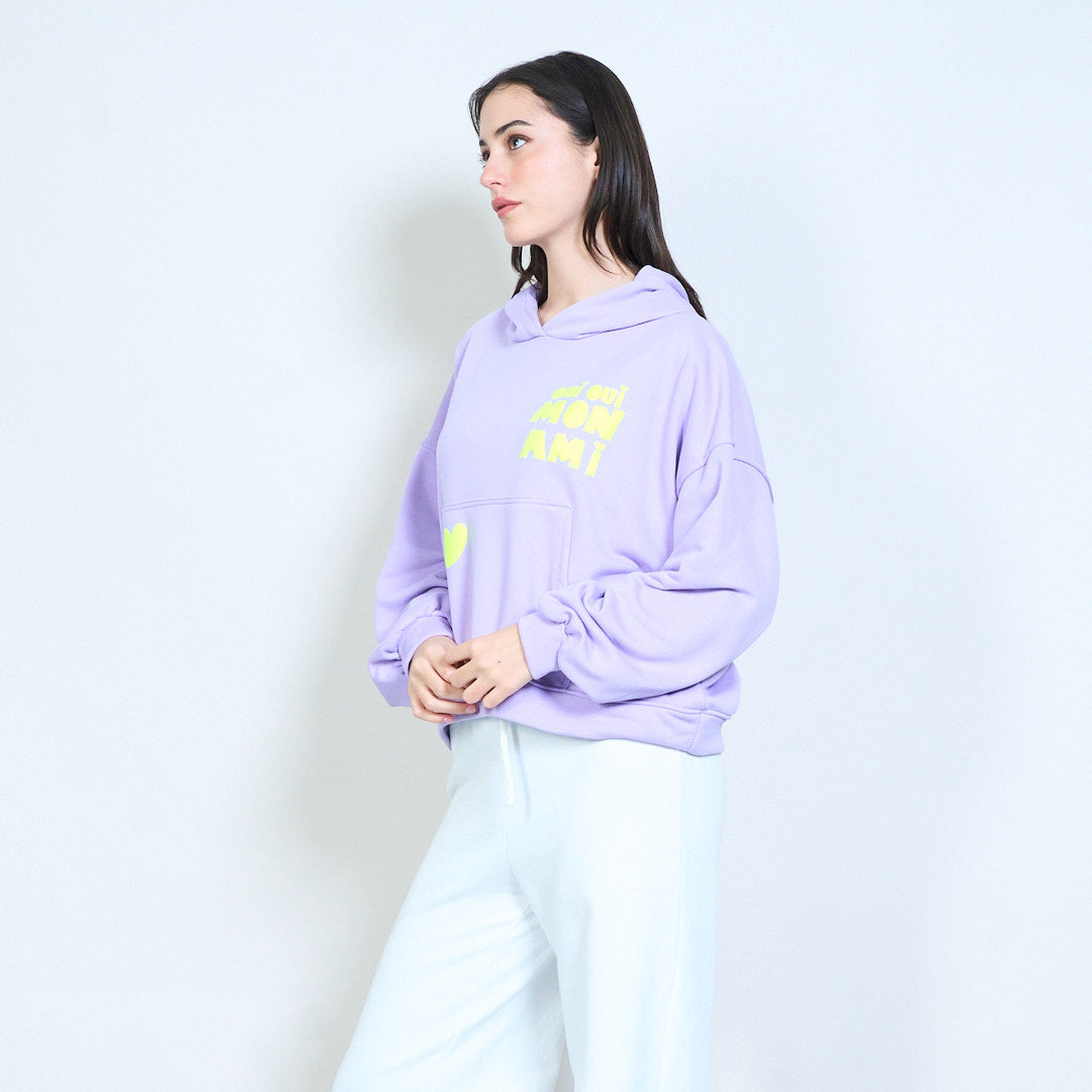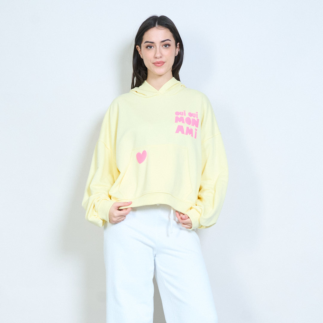 标语图案“Oui Oui Mon Amour”心形细节连帽运动衫批发