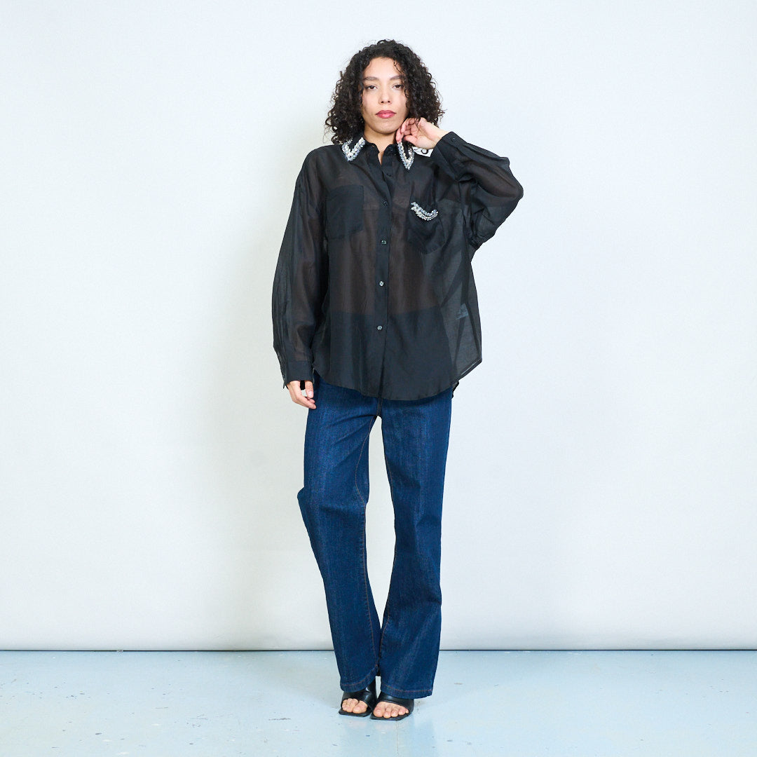 背面图案水晶装饰个性领衬衫批发
