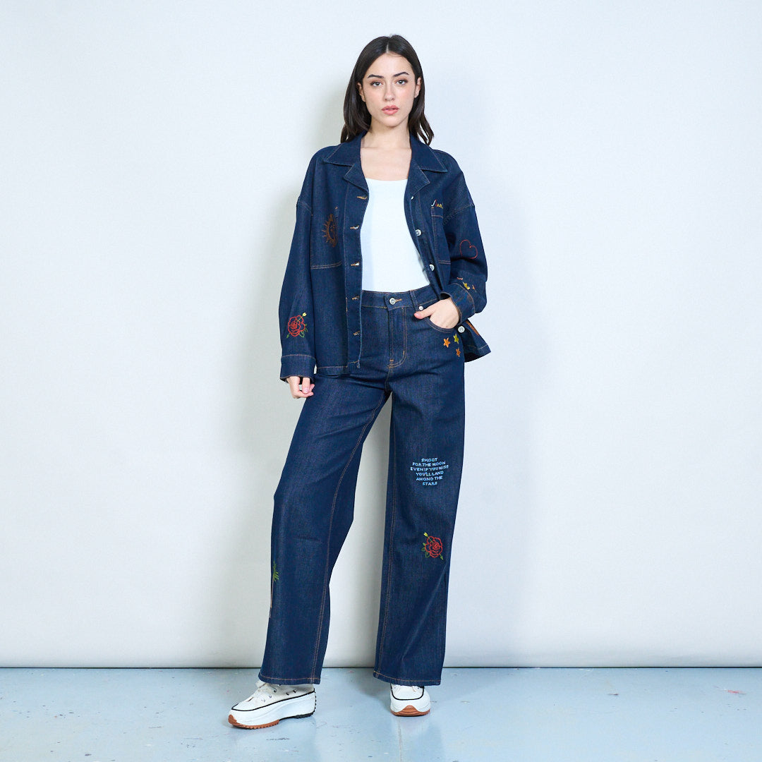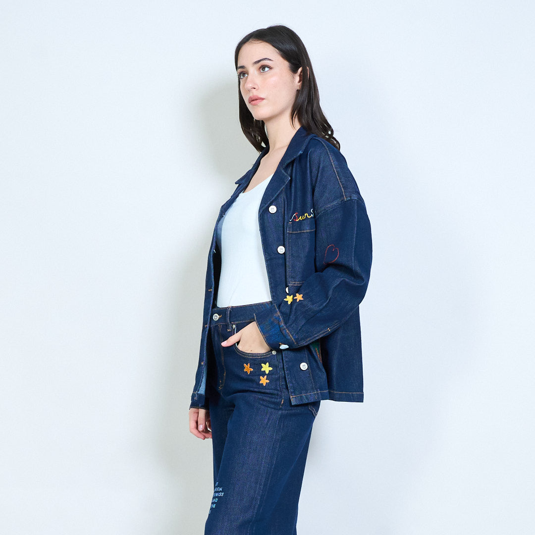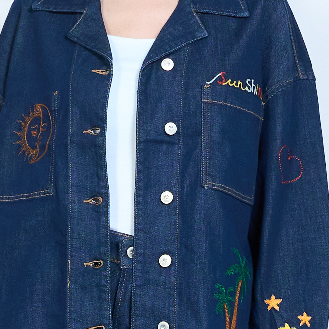 超大刺绣太阳棕榈牛仔夹克批发