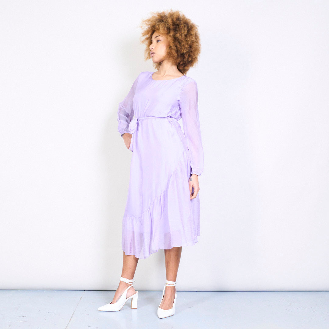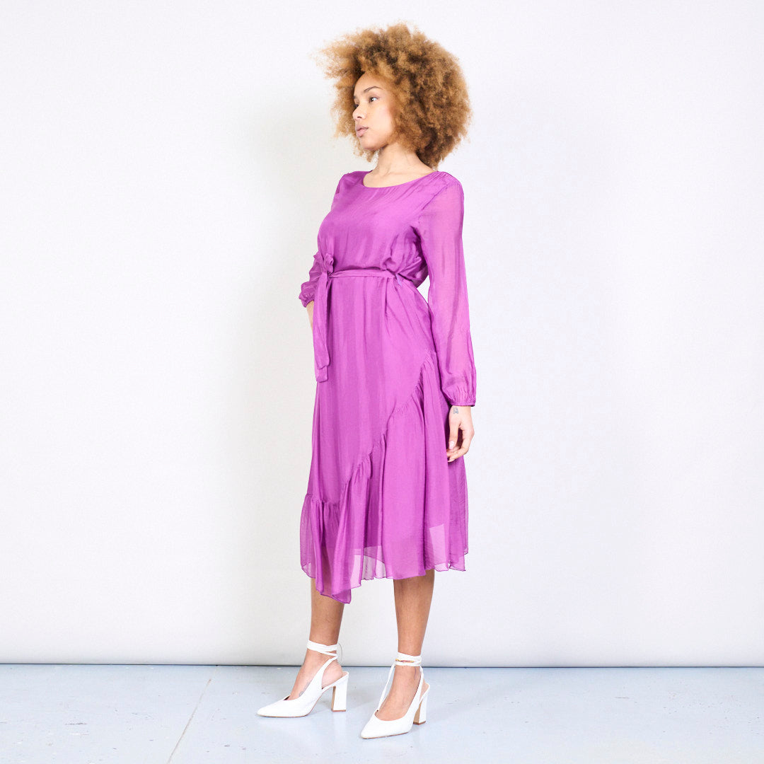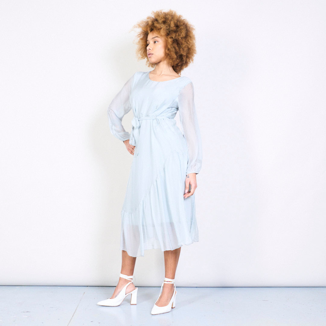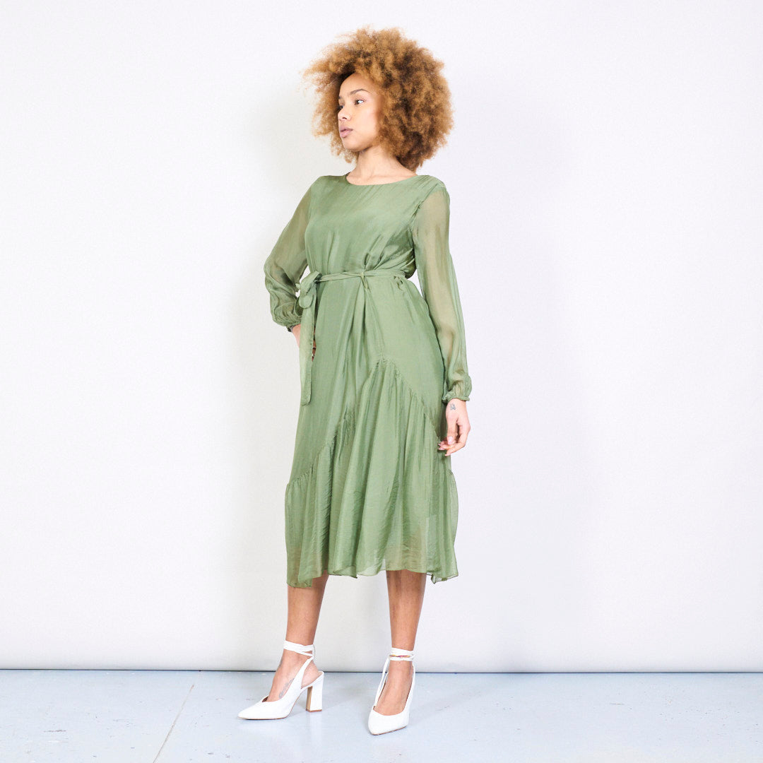 优雅的Slik Midi连衣裙,带领带的腰部批发
