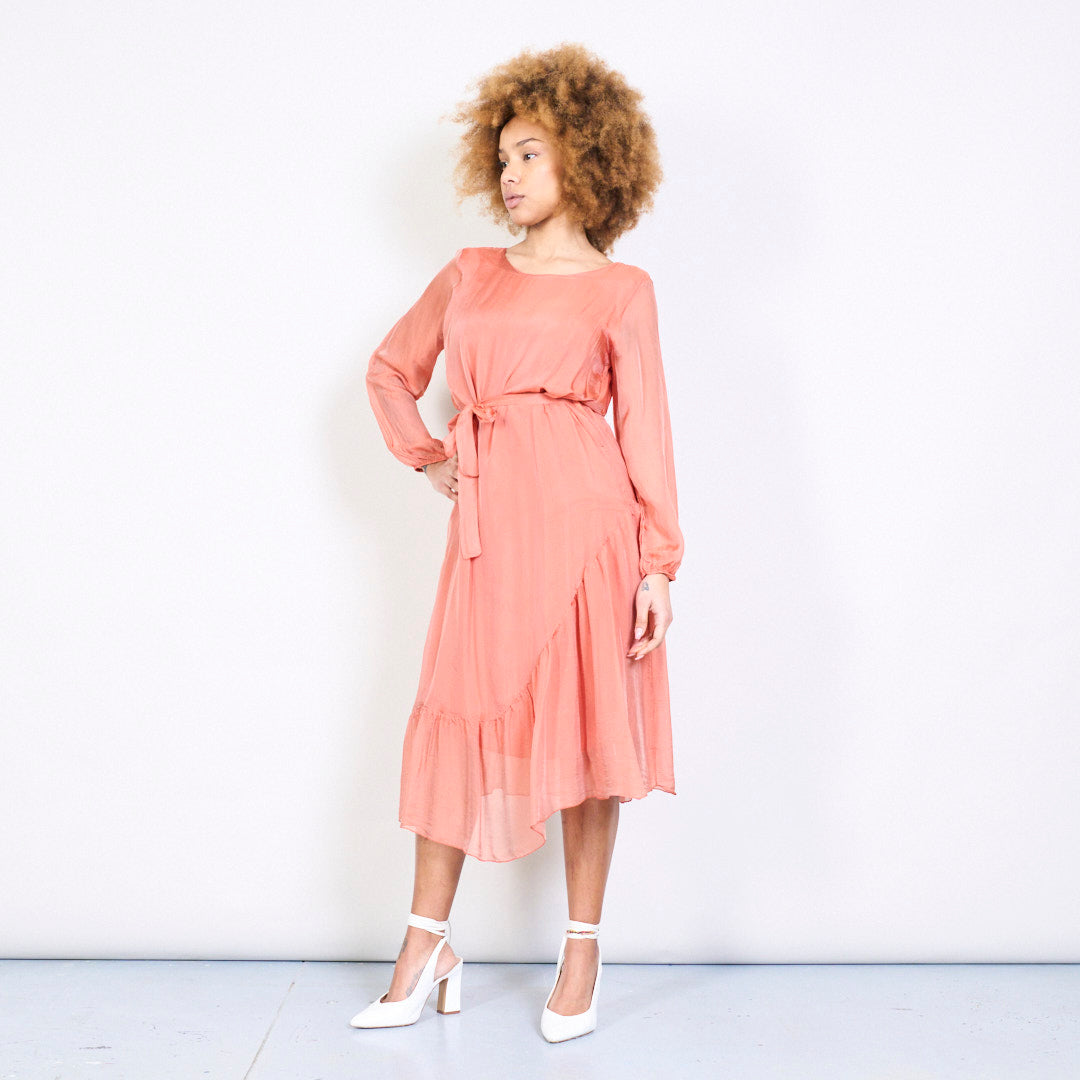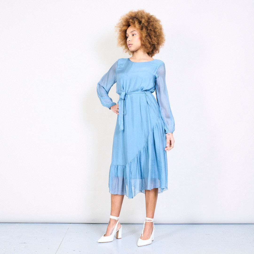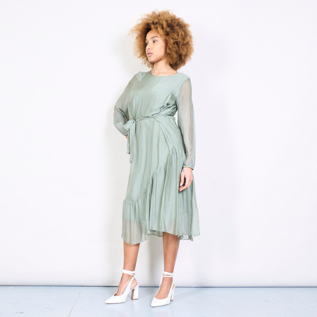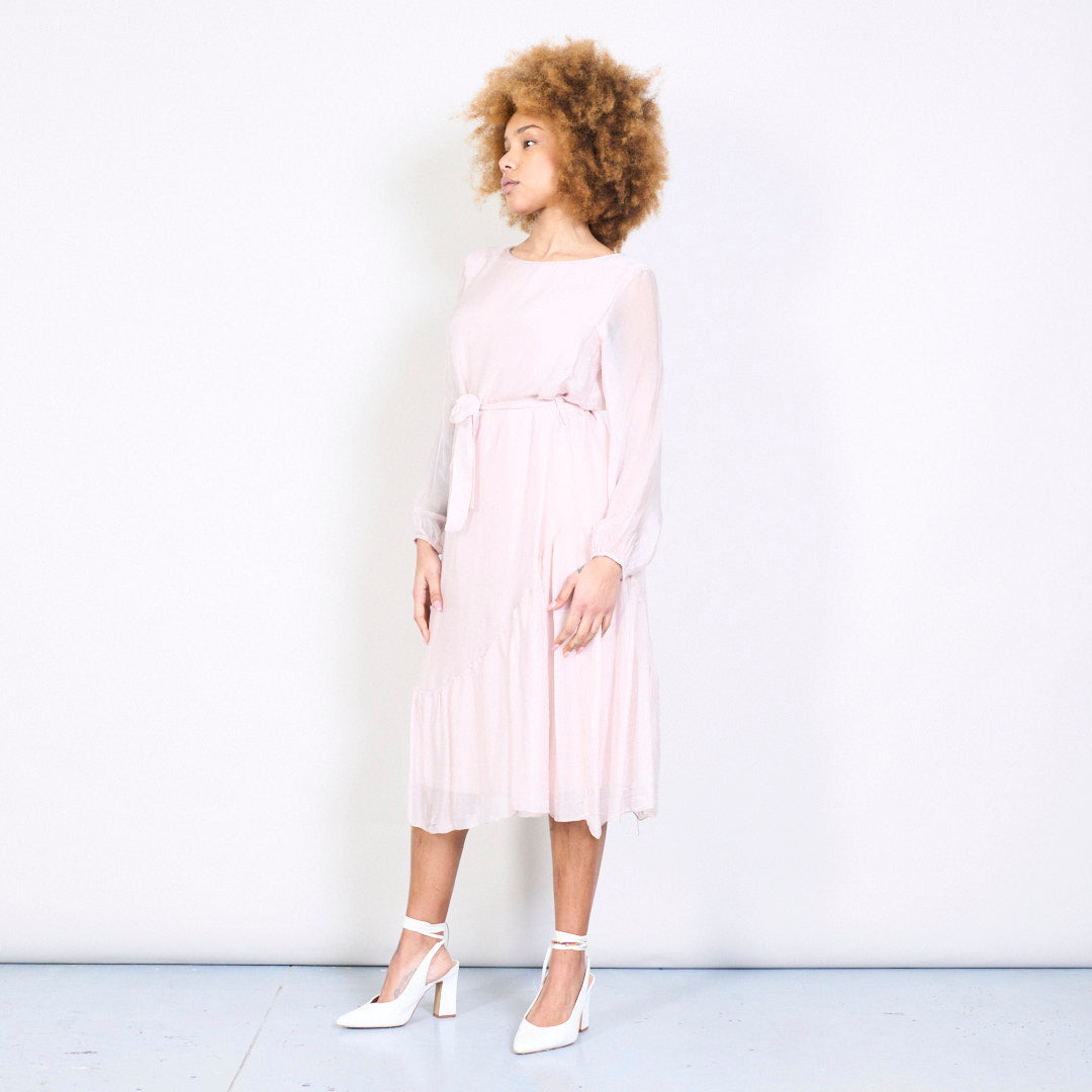 优雅的Slik Midi连衣裙,带领带的腰部批发