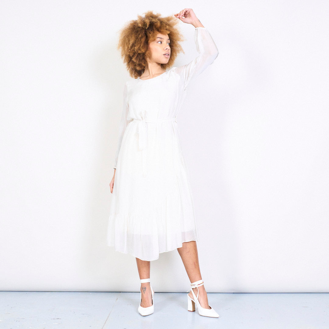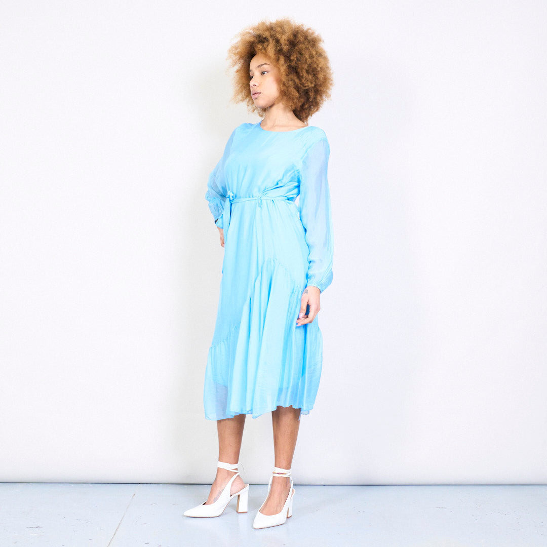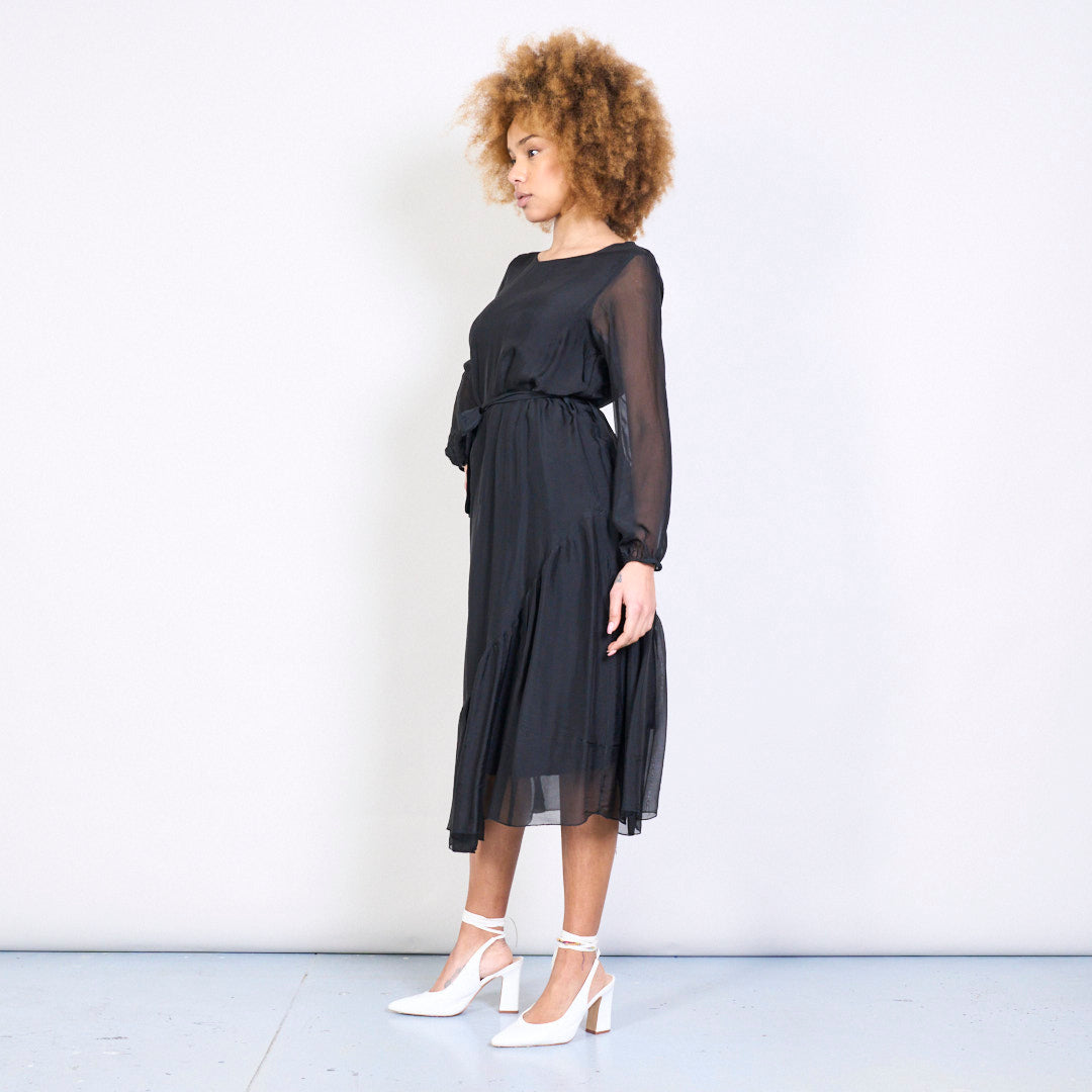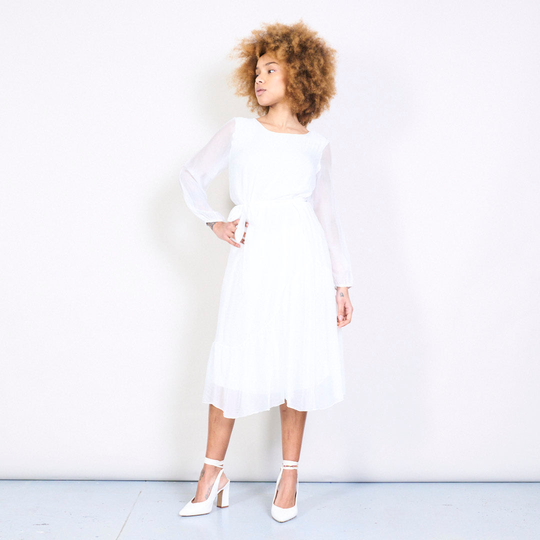 优雅的Slik Midi连衣裙,带领带的腰部批发