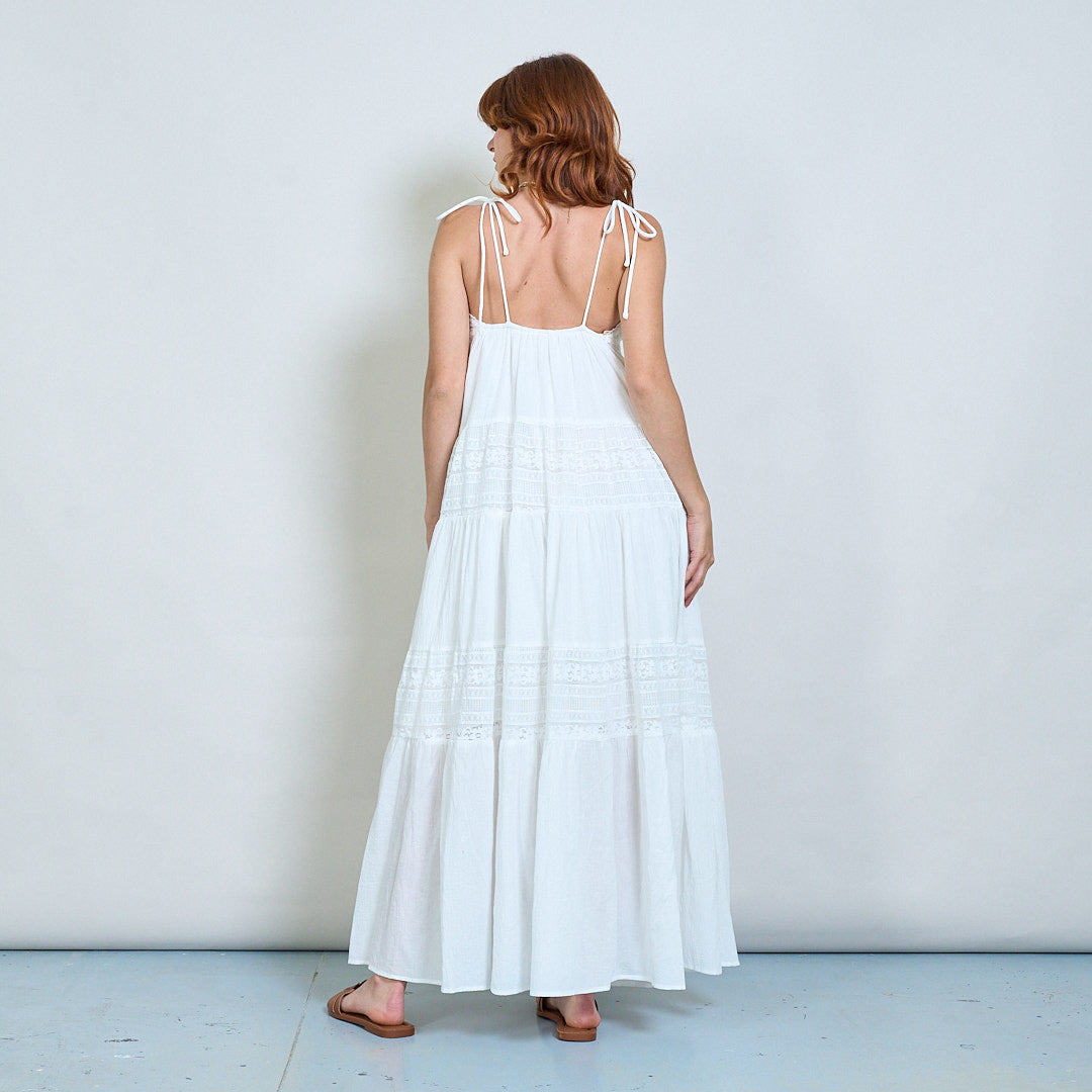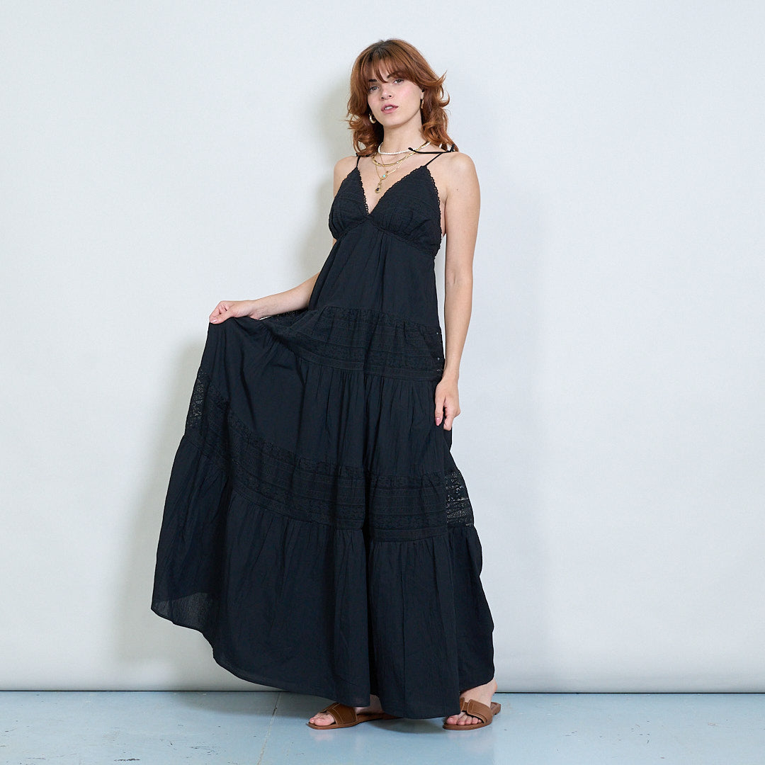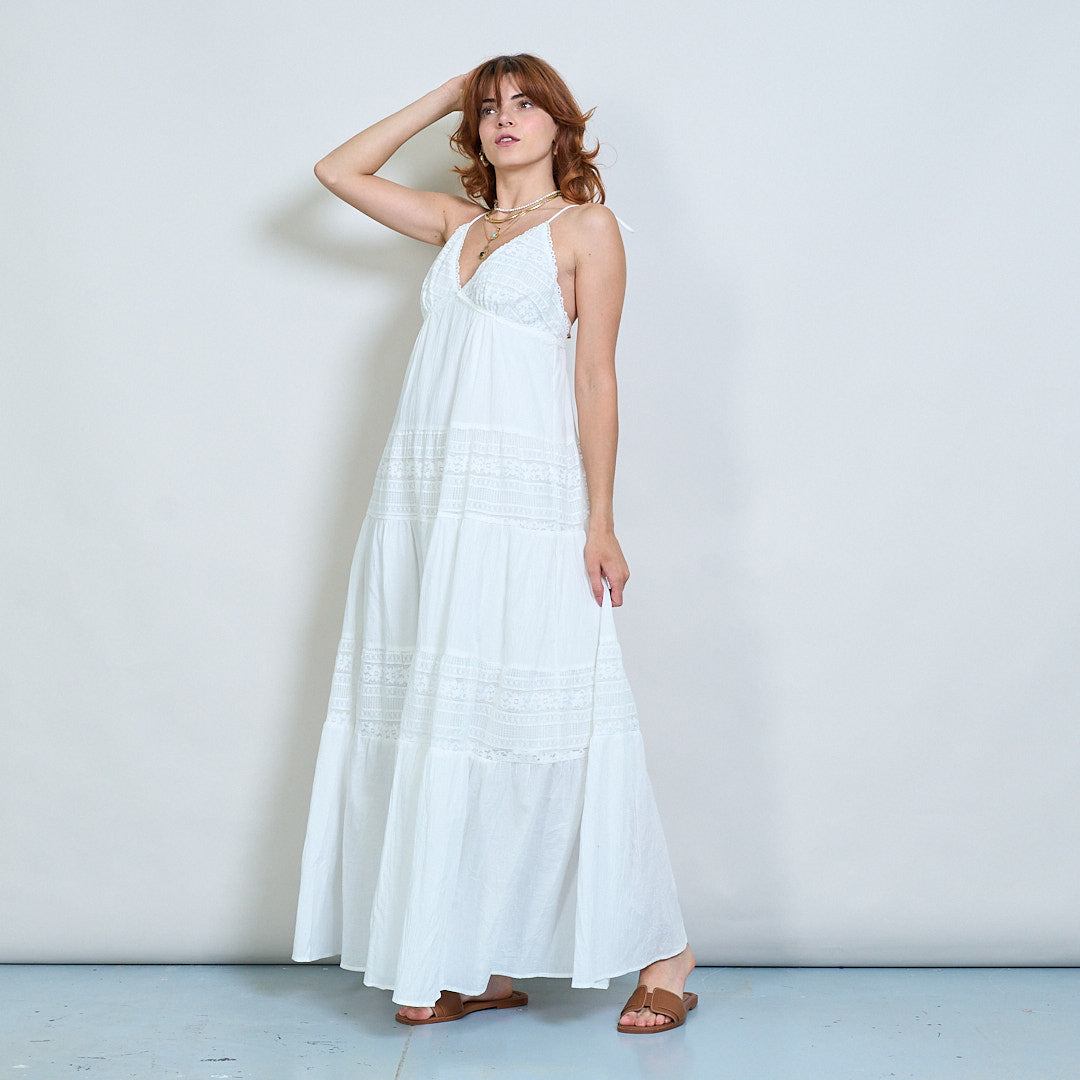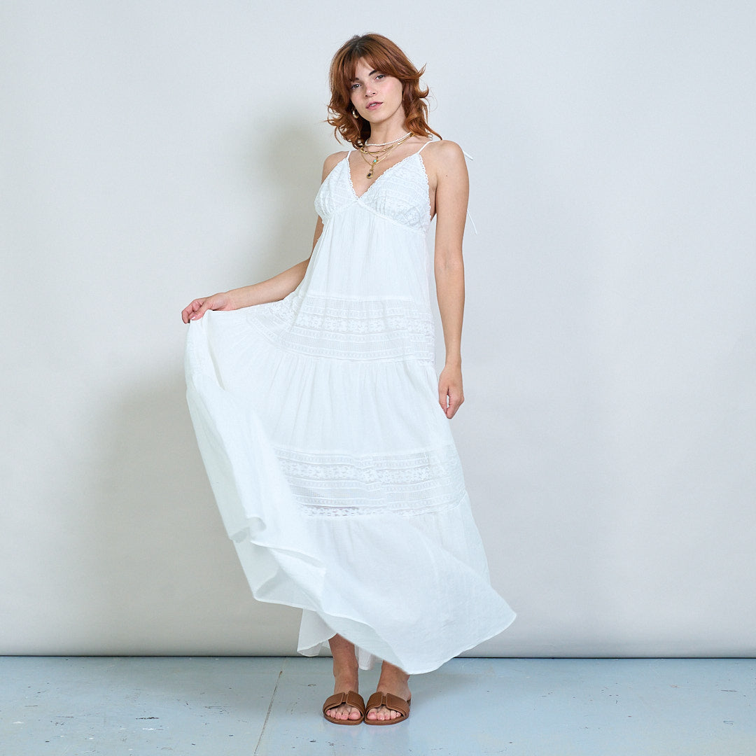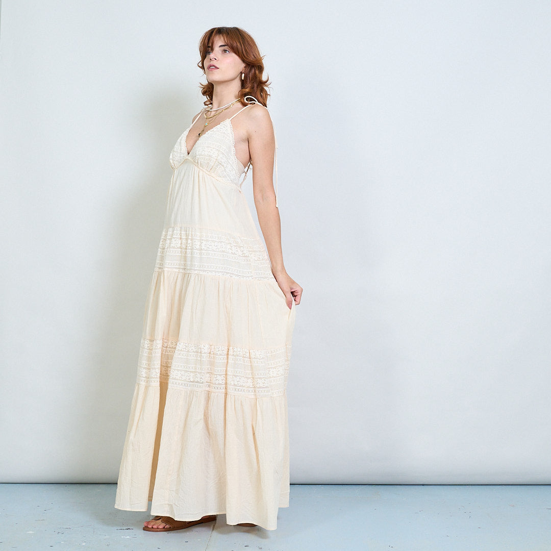 分层蕾丝 - 三角形意大利面条带浪漫的长裙批发