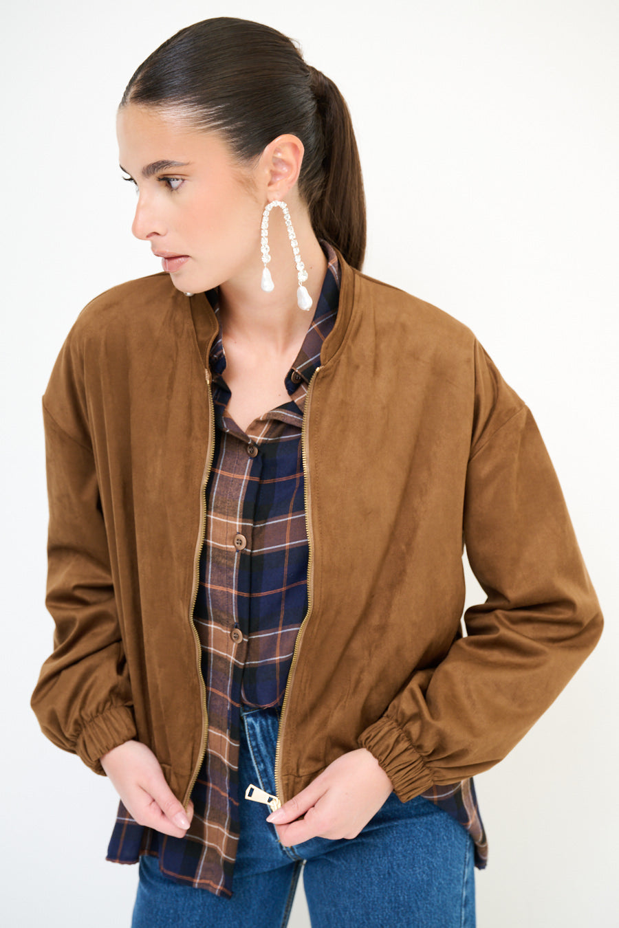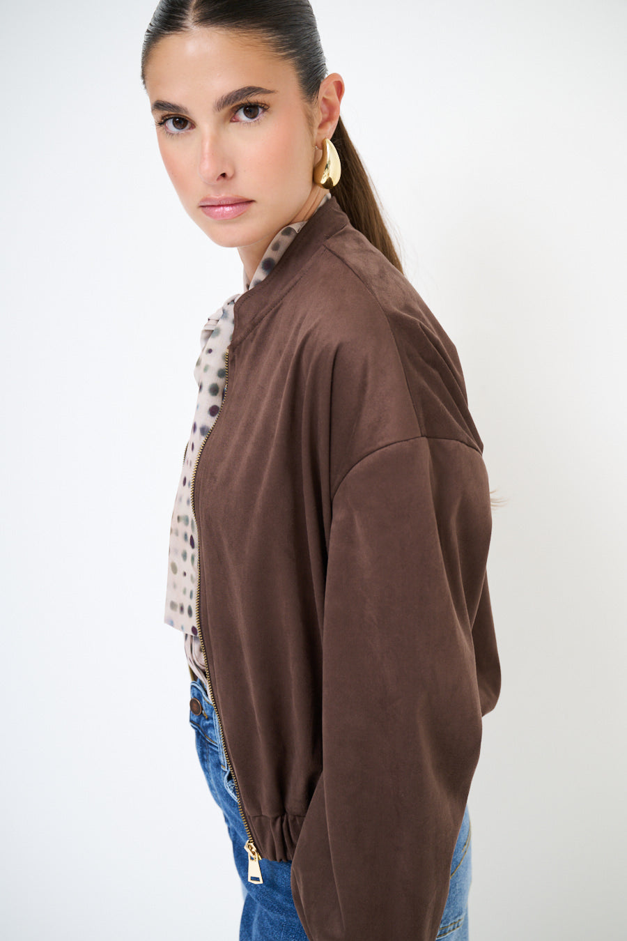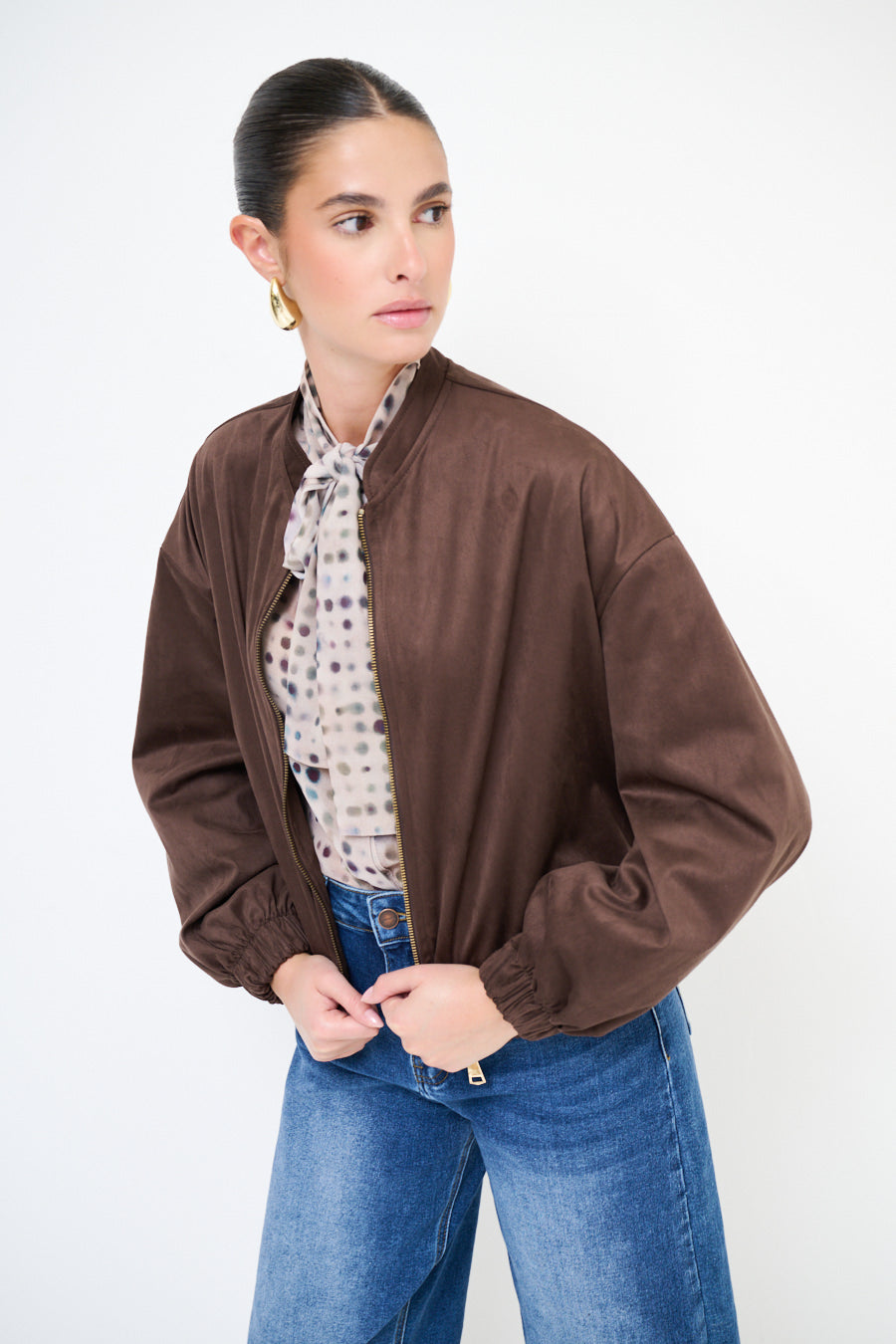 带拉链闭合批发的绒面效应轰炸机夹克