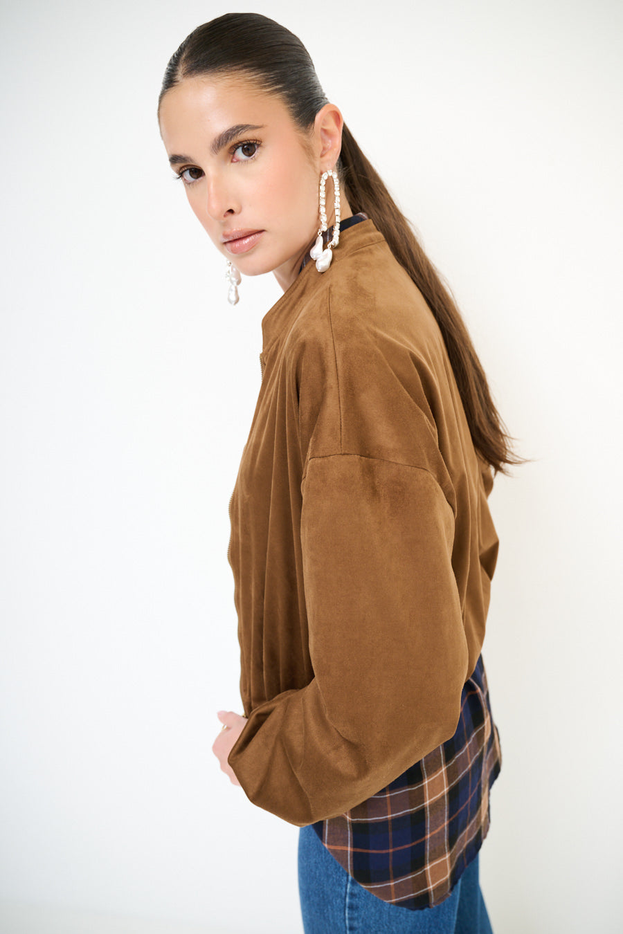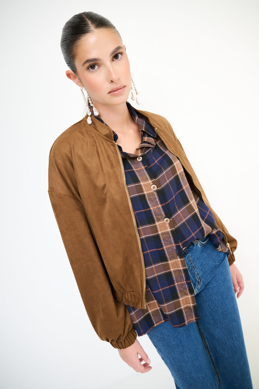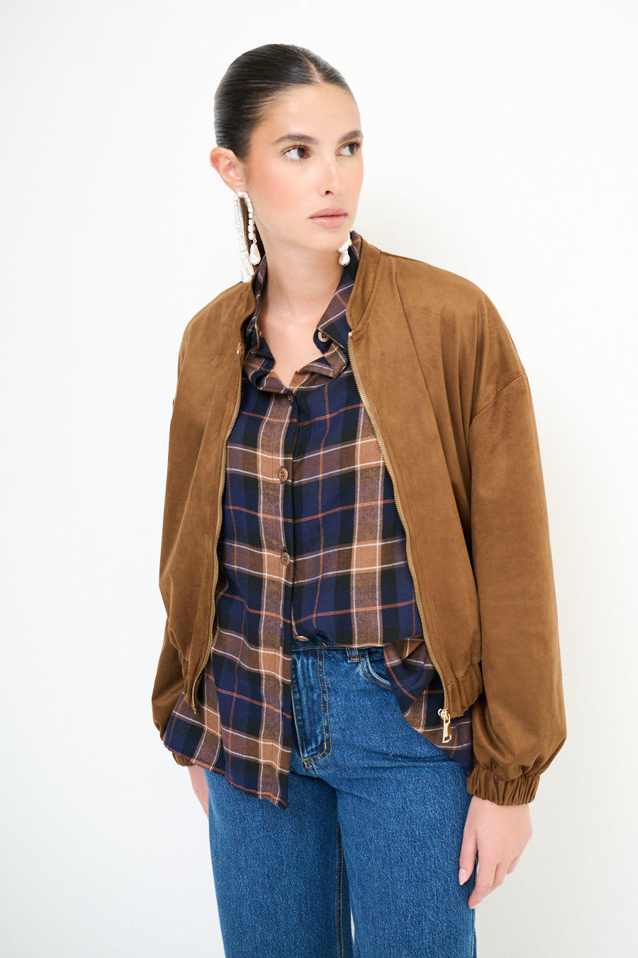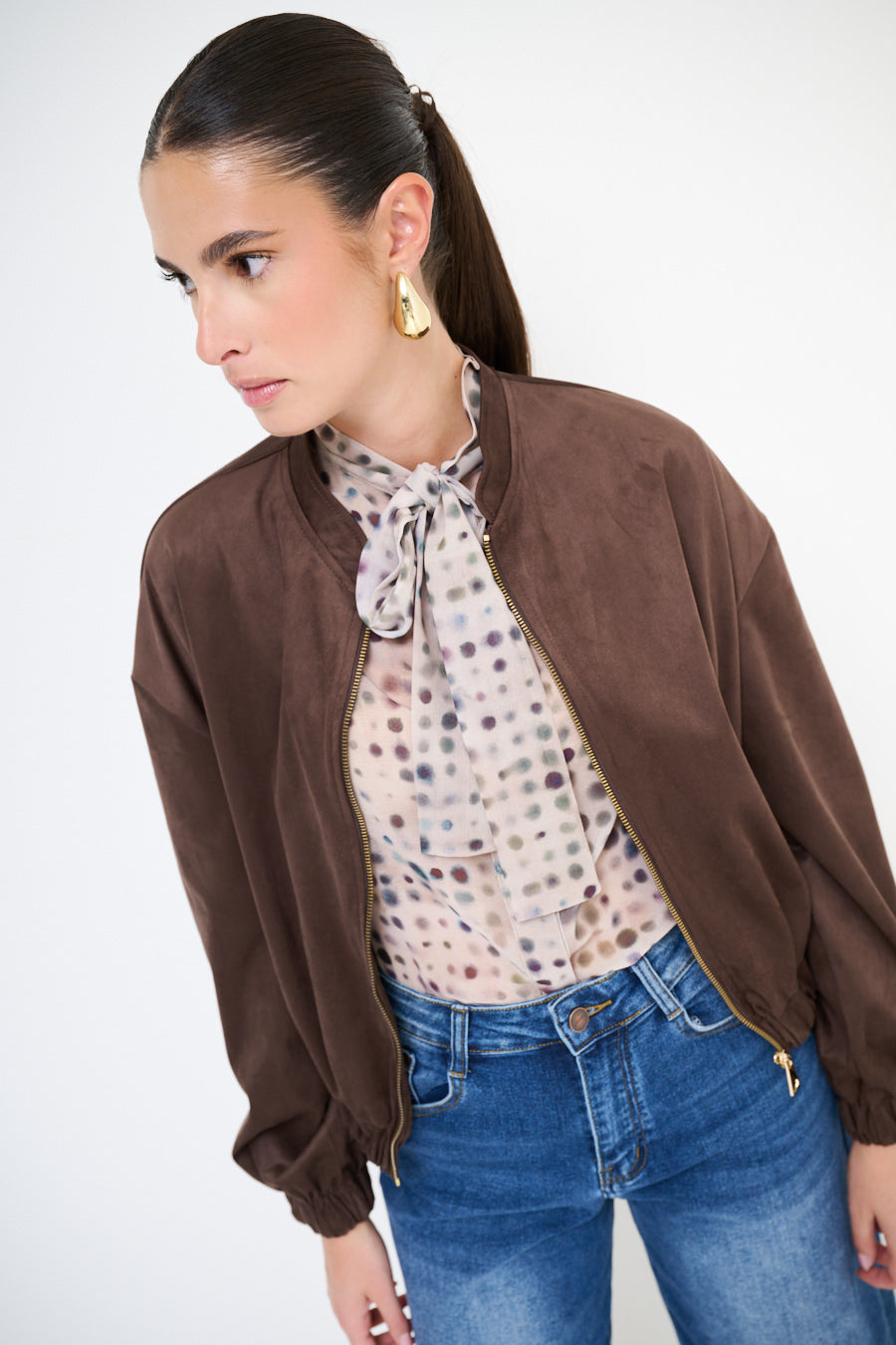 带拉链闭合批发的绒面效应轰炸机夹克