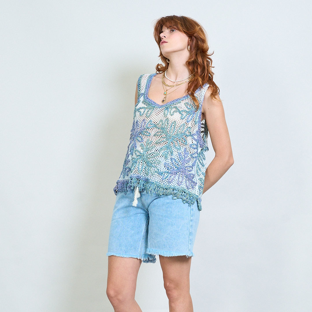 - 错综复杂的开放式钩针编织带有花卉风格的细节