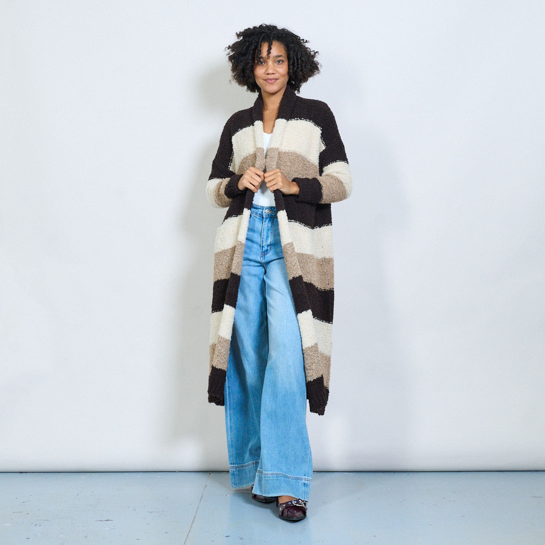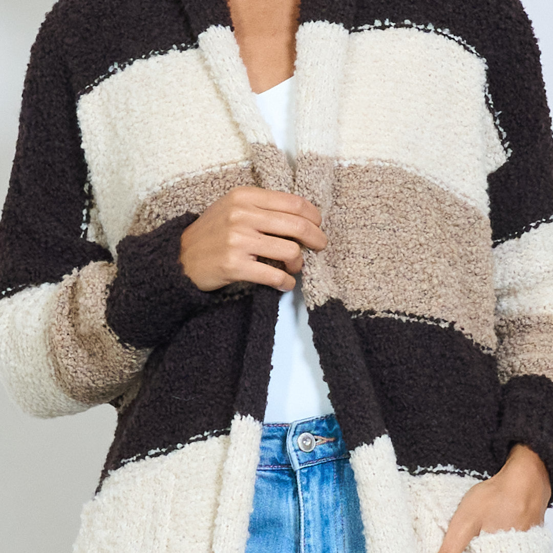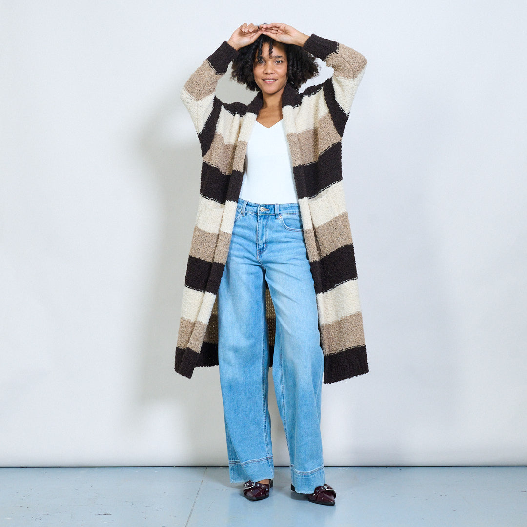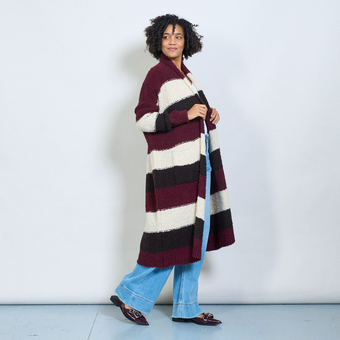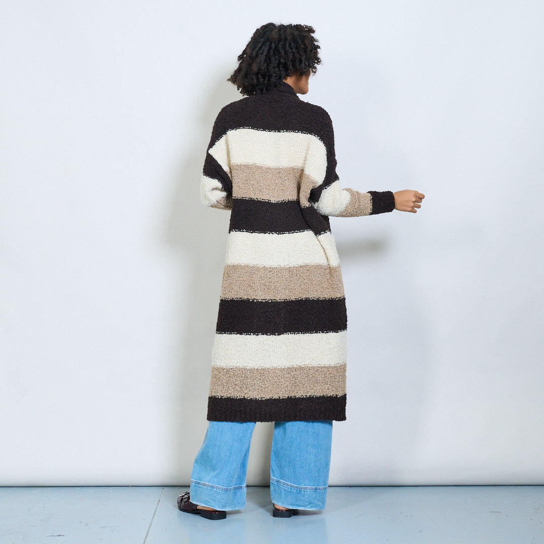 条纹bouclé长开衫批发