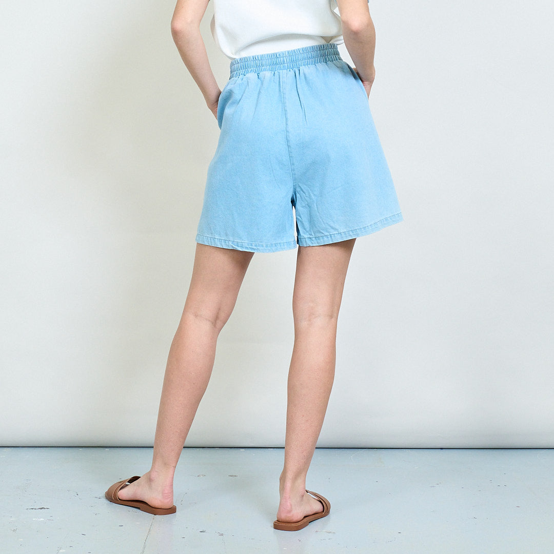 牛仔布修剪对比度按钮针织顶和束线条短裤批发