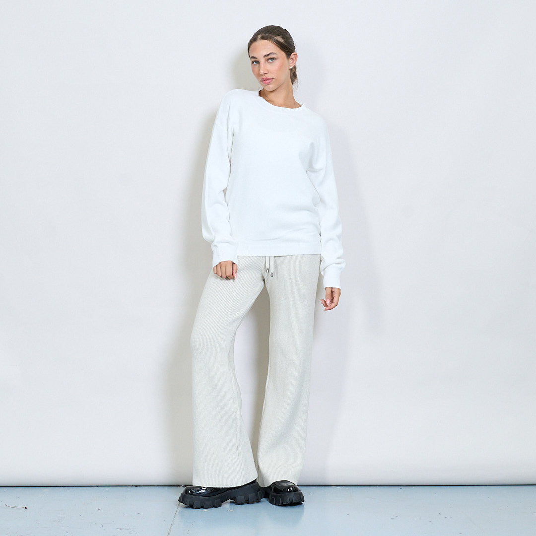 经典的精美针织毛衣,带肋船员脖子和长袖批发