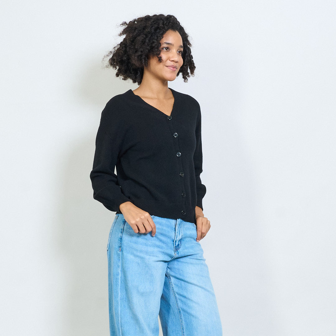 经典的V领纽扣针织开衫批发