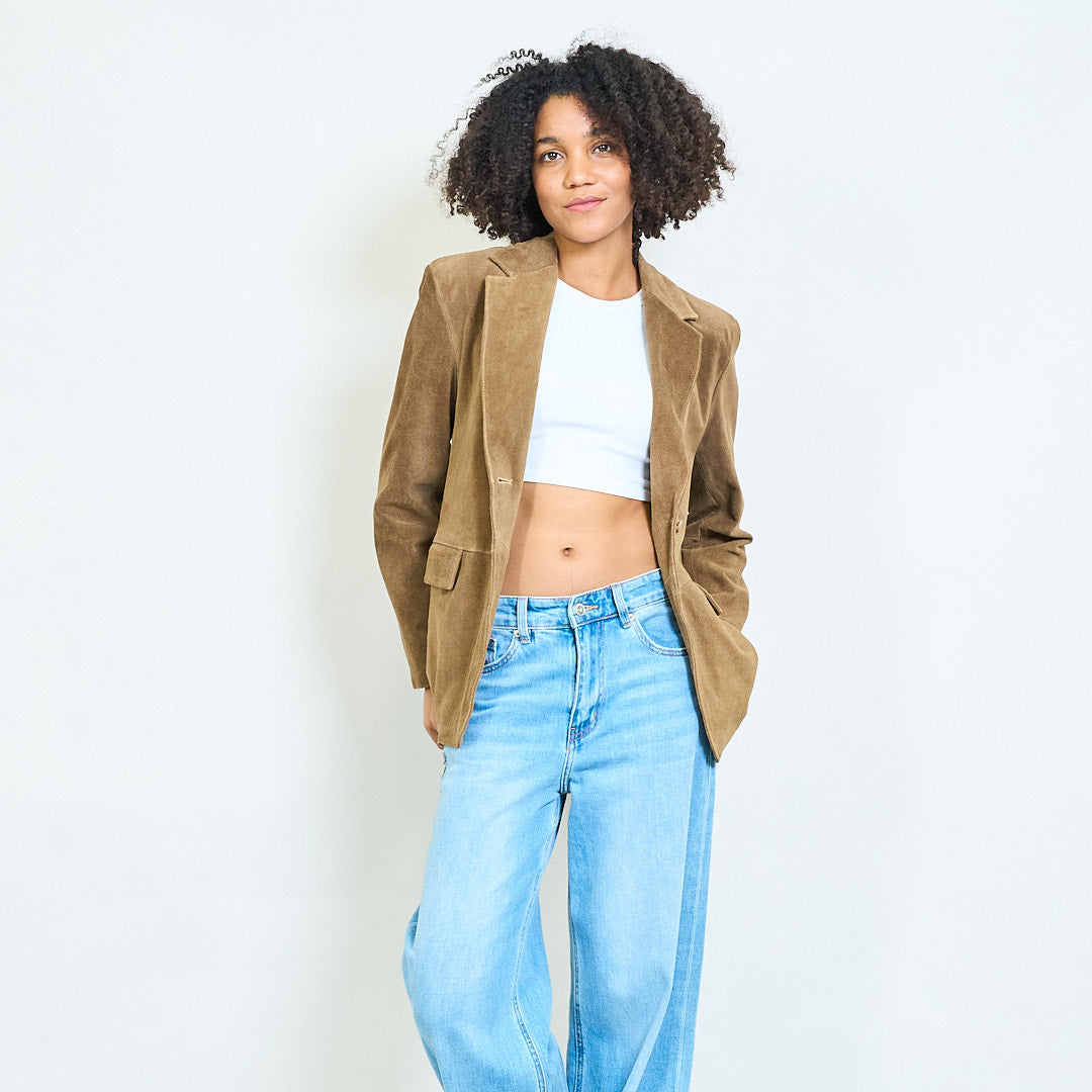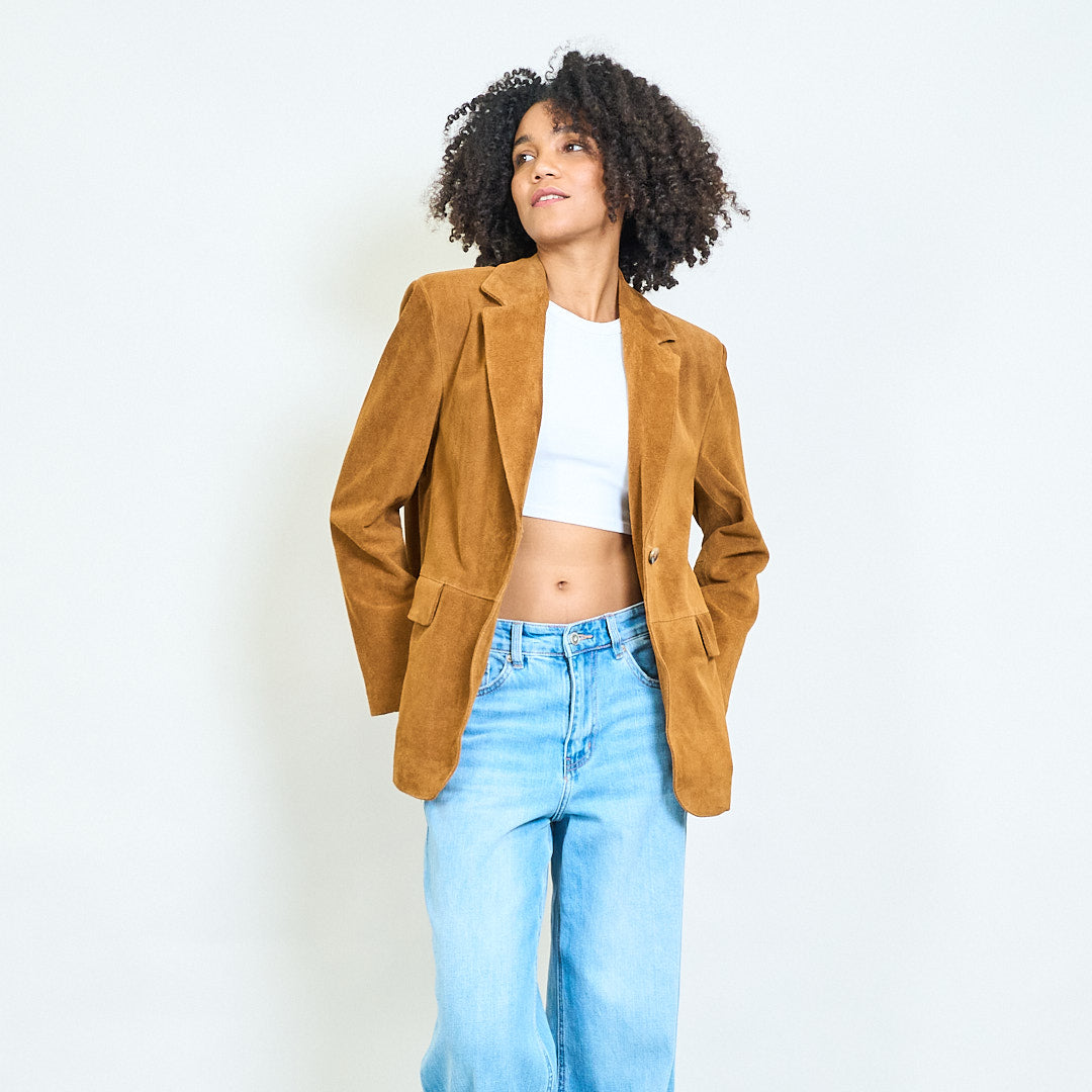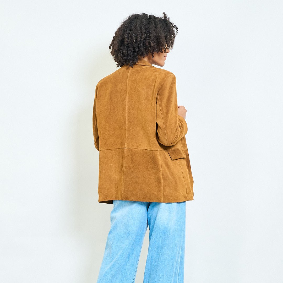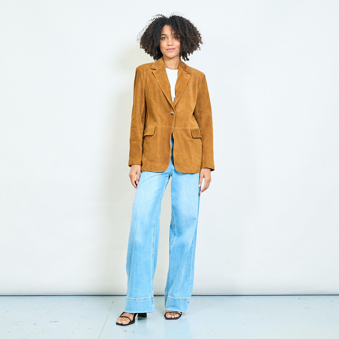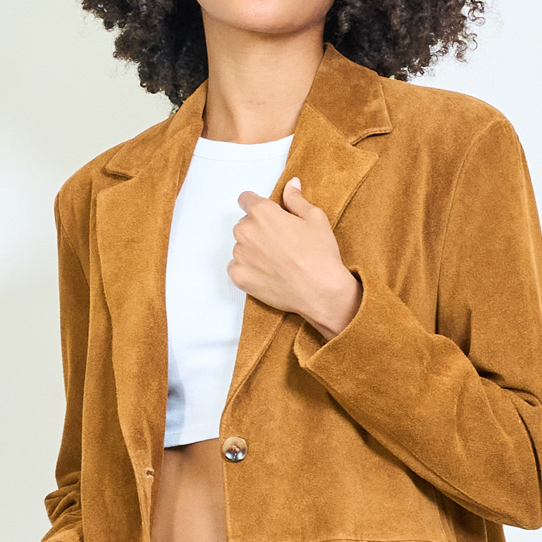 经典量身定制的绒面革效果单键皮革西装外套批发