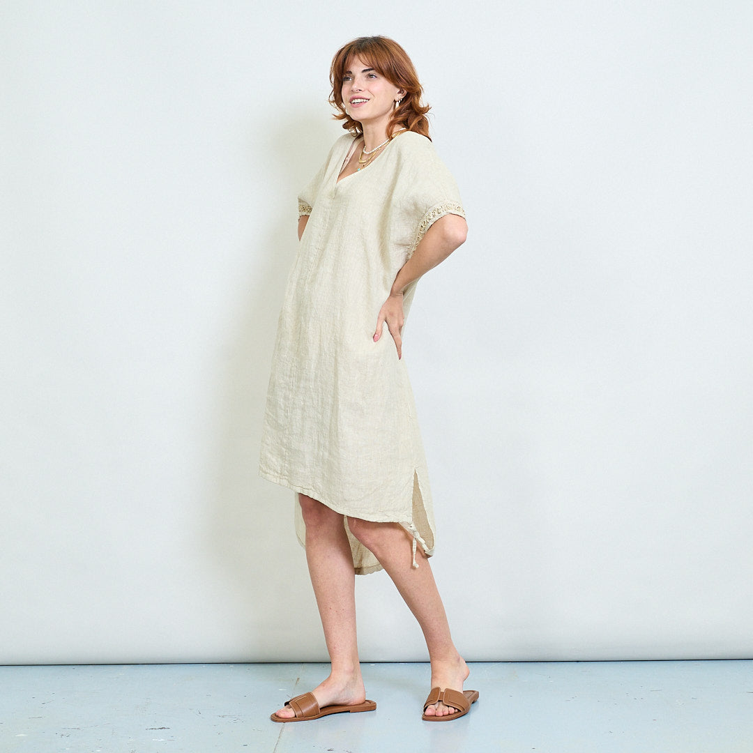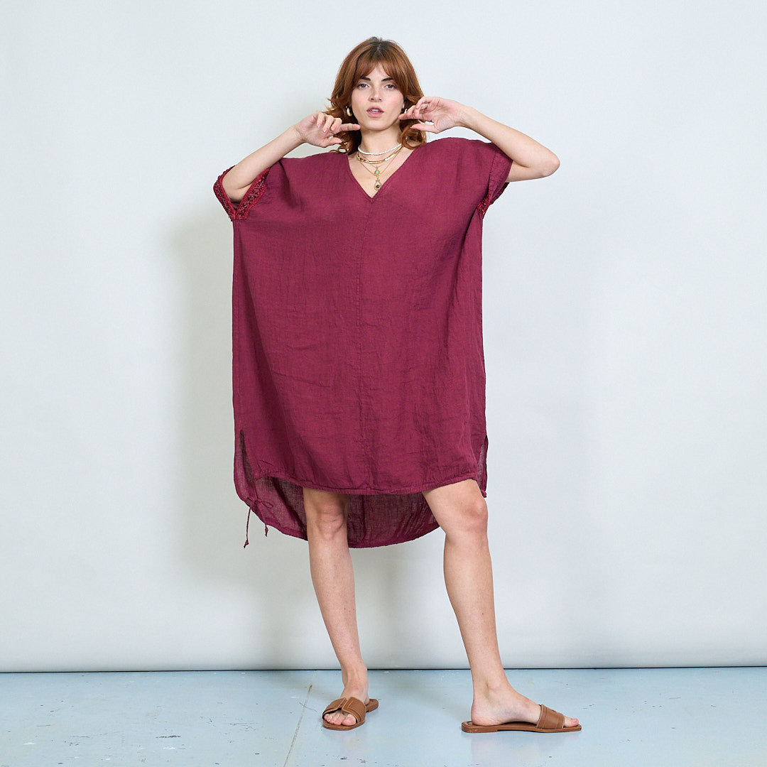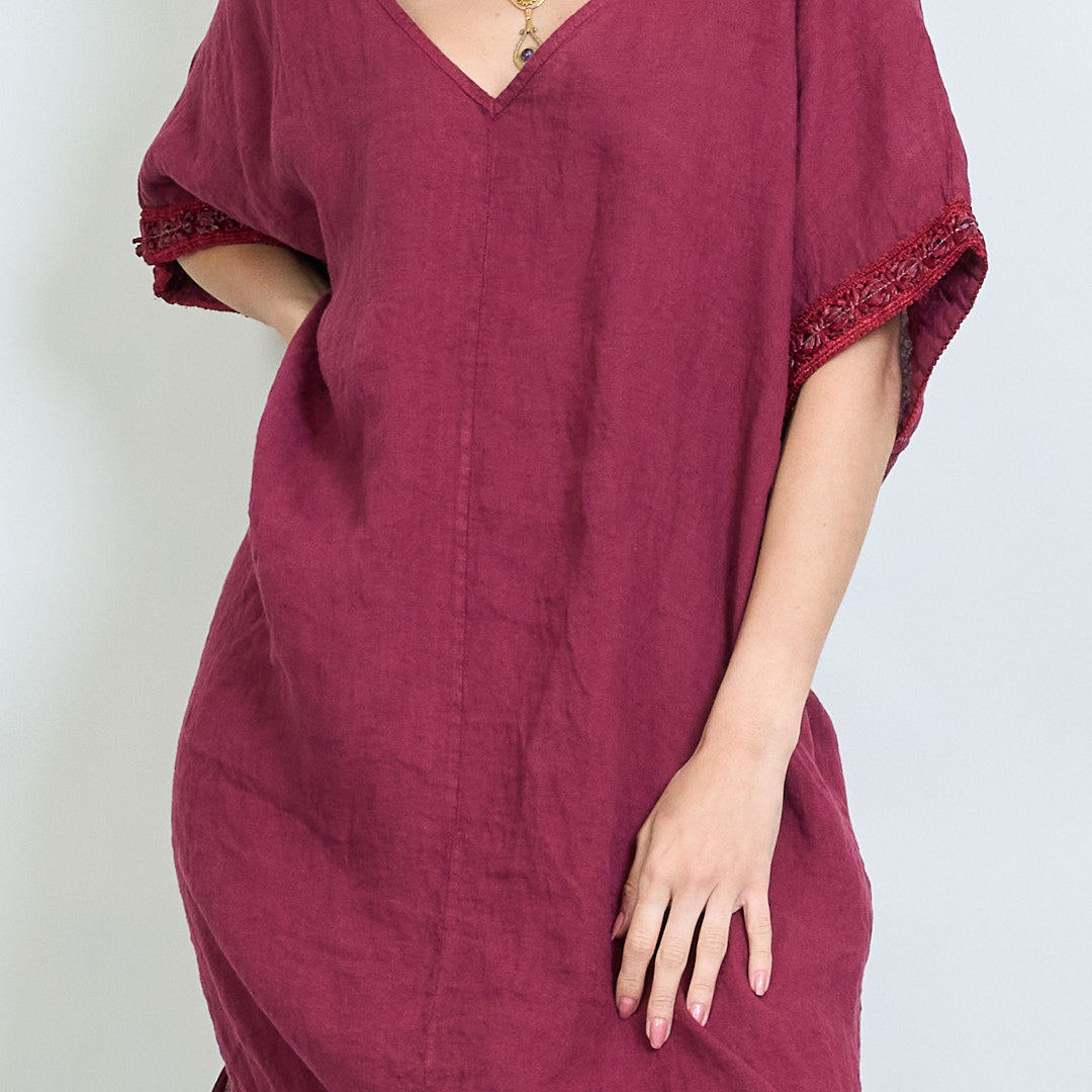 - 肘部长袖带有音调刺绣蕾丝饰边