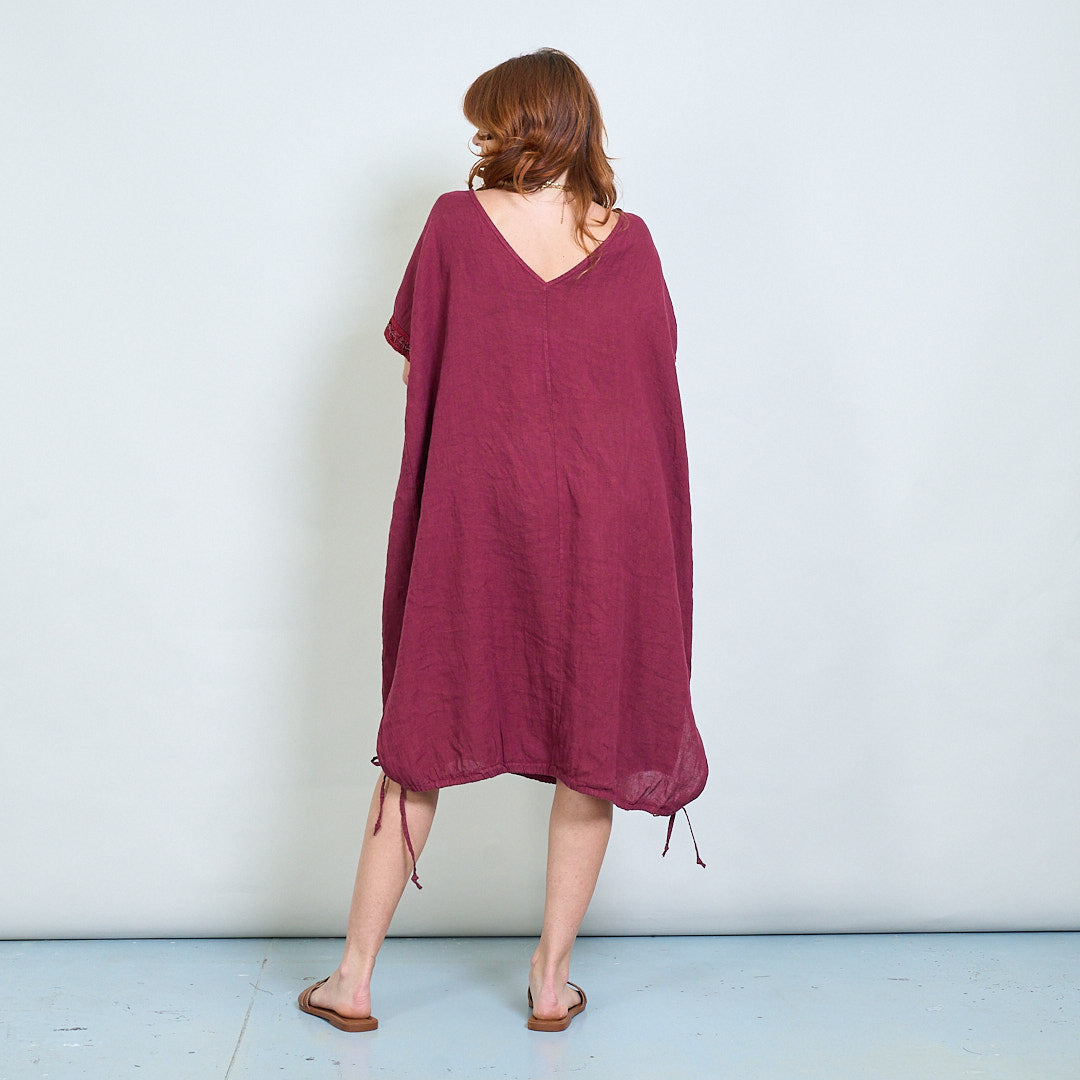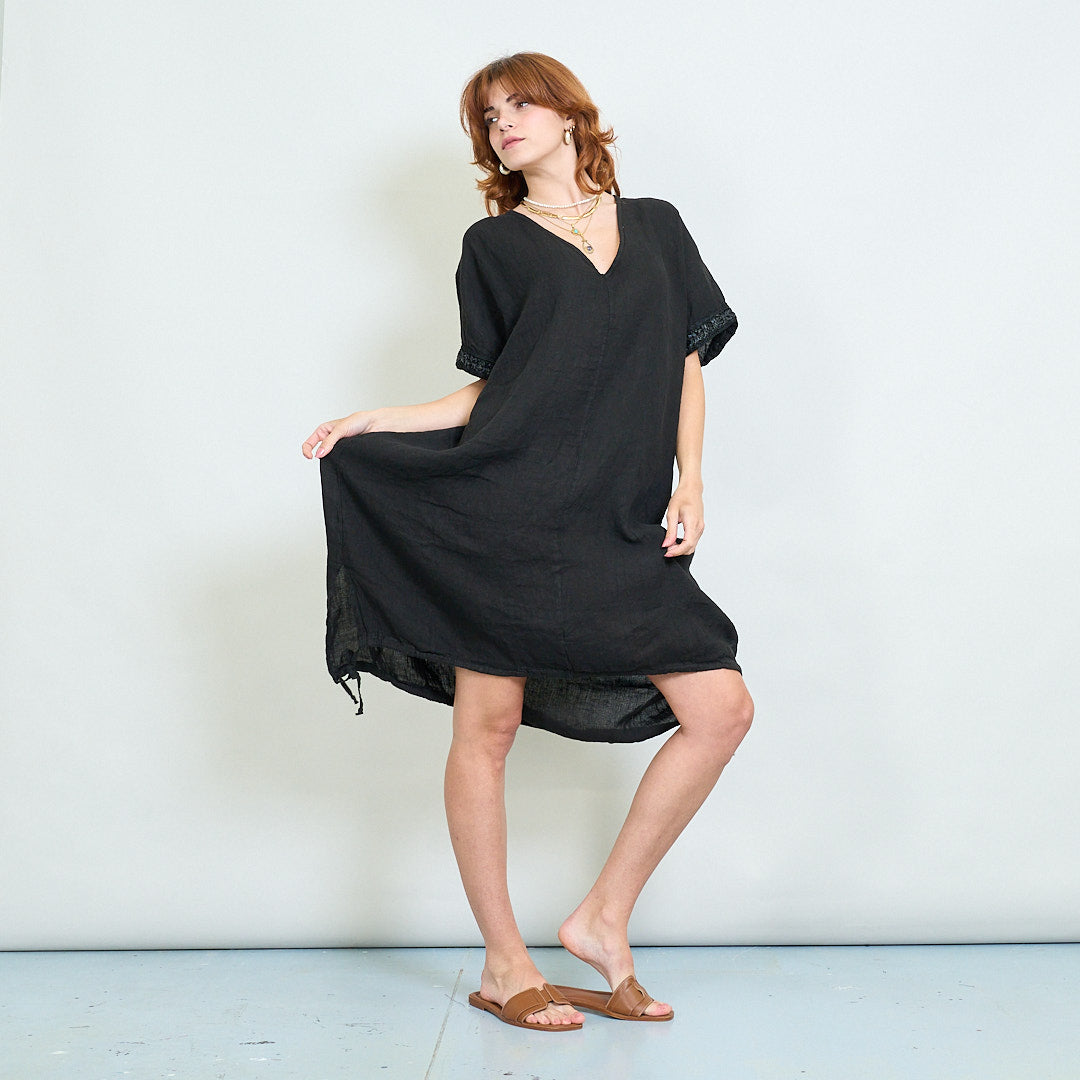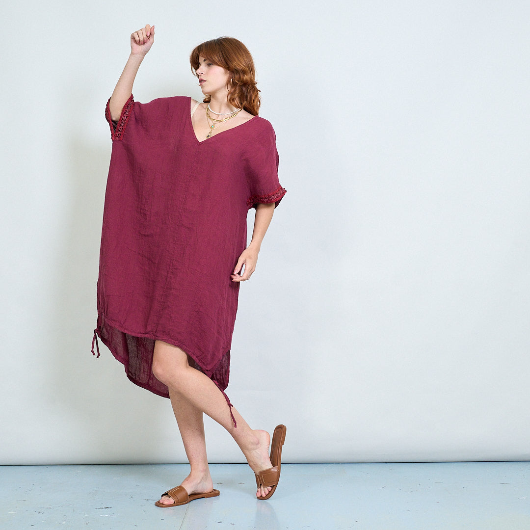- 肘部长袖带有音调刺绣蕾丝饰边