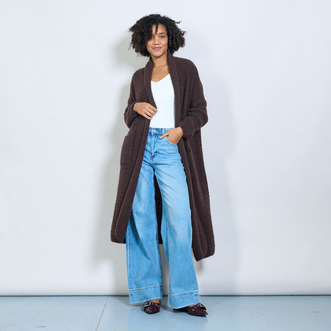 长束纹理的开放前开衫批发