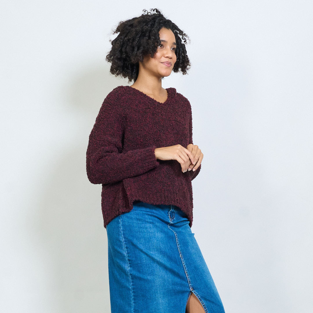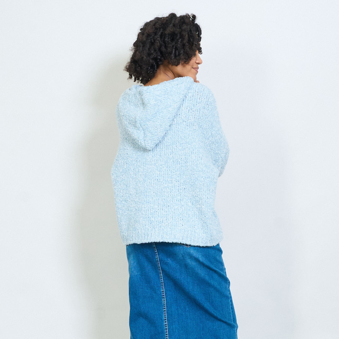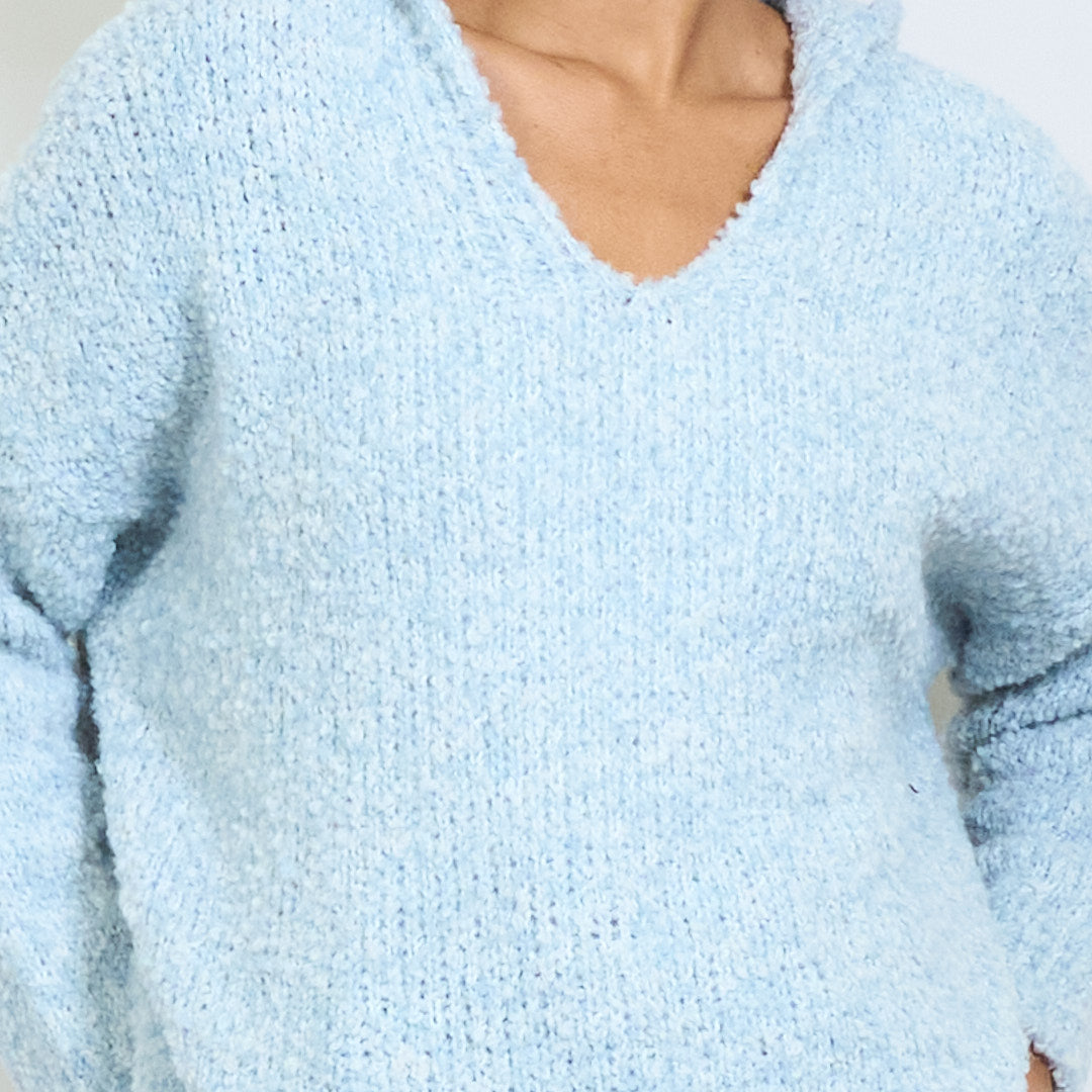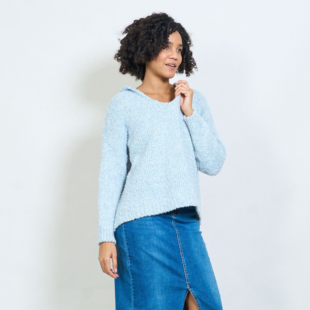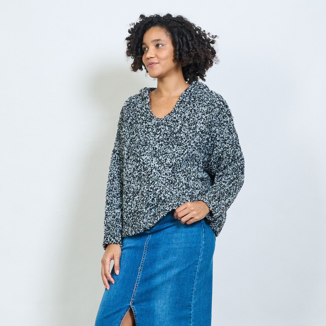 bouclé带连帽V领超大毛衣批发