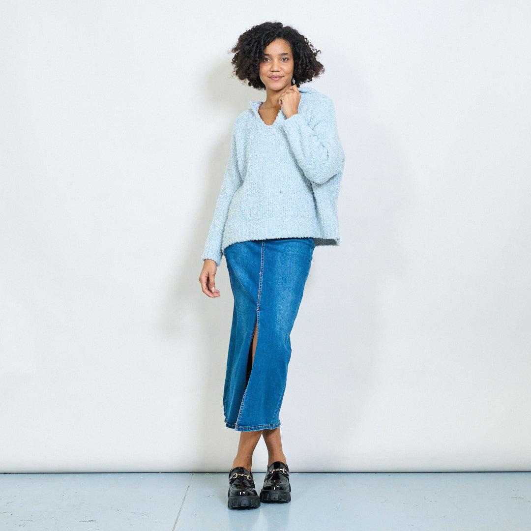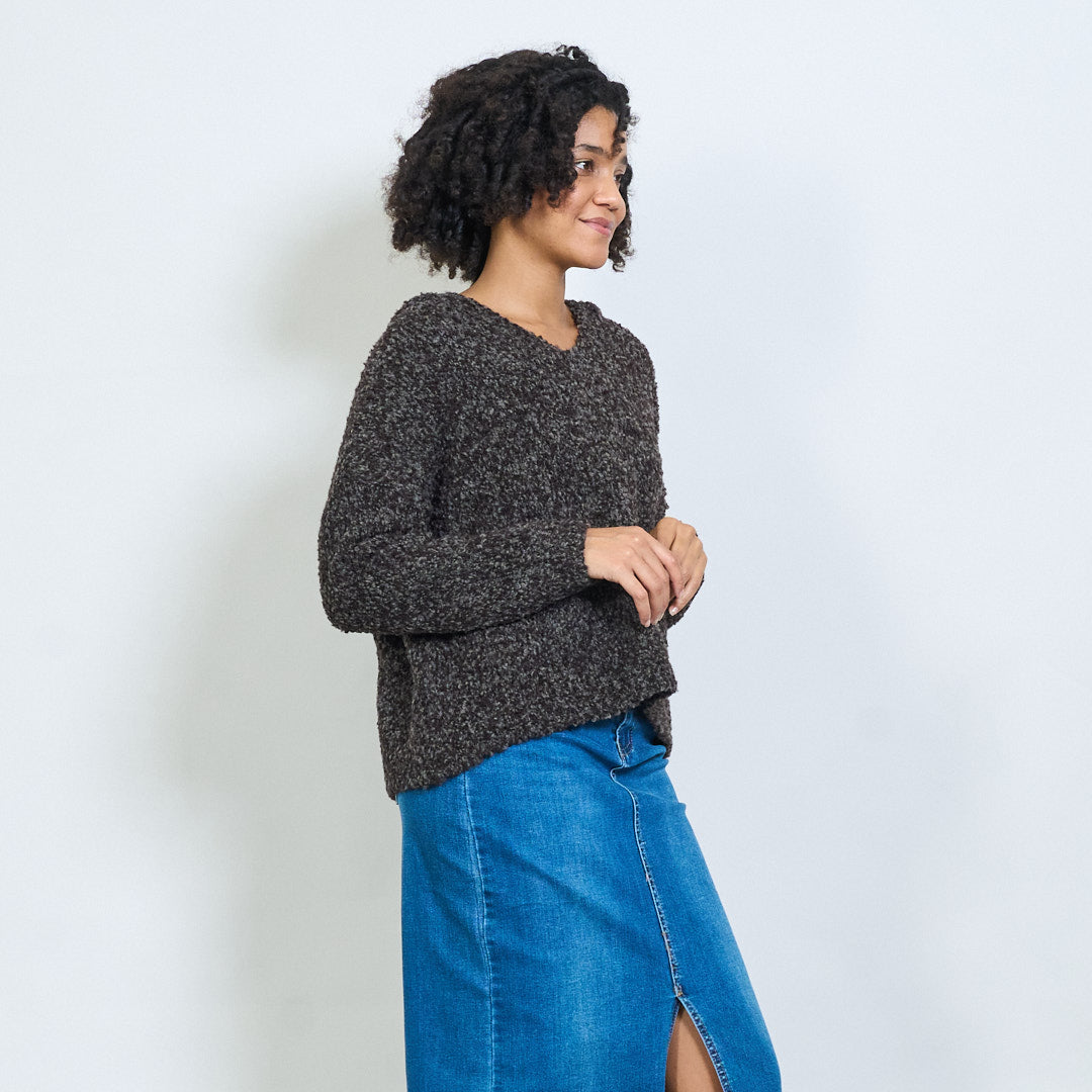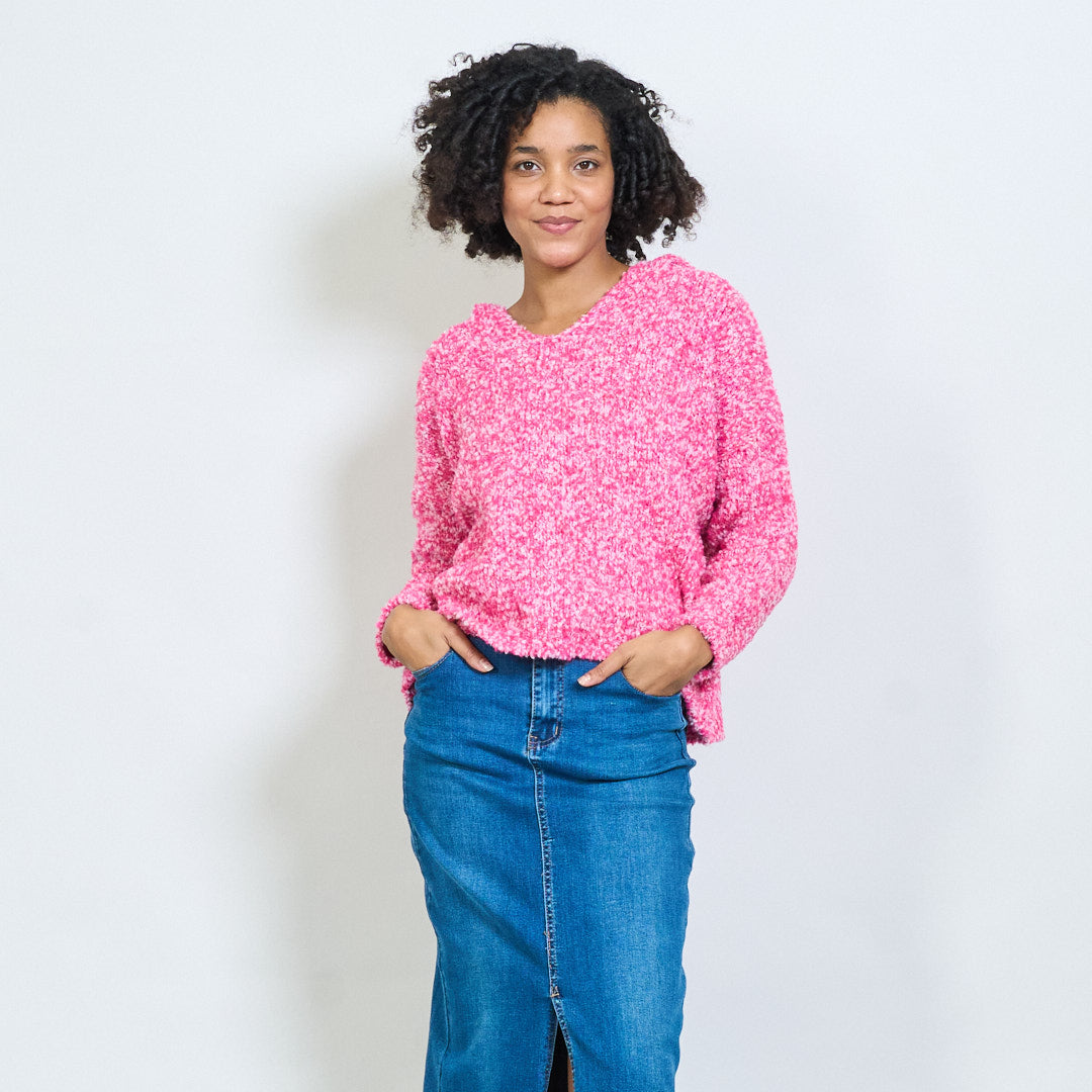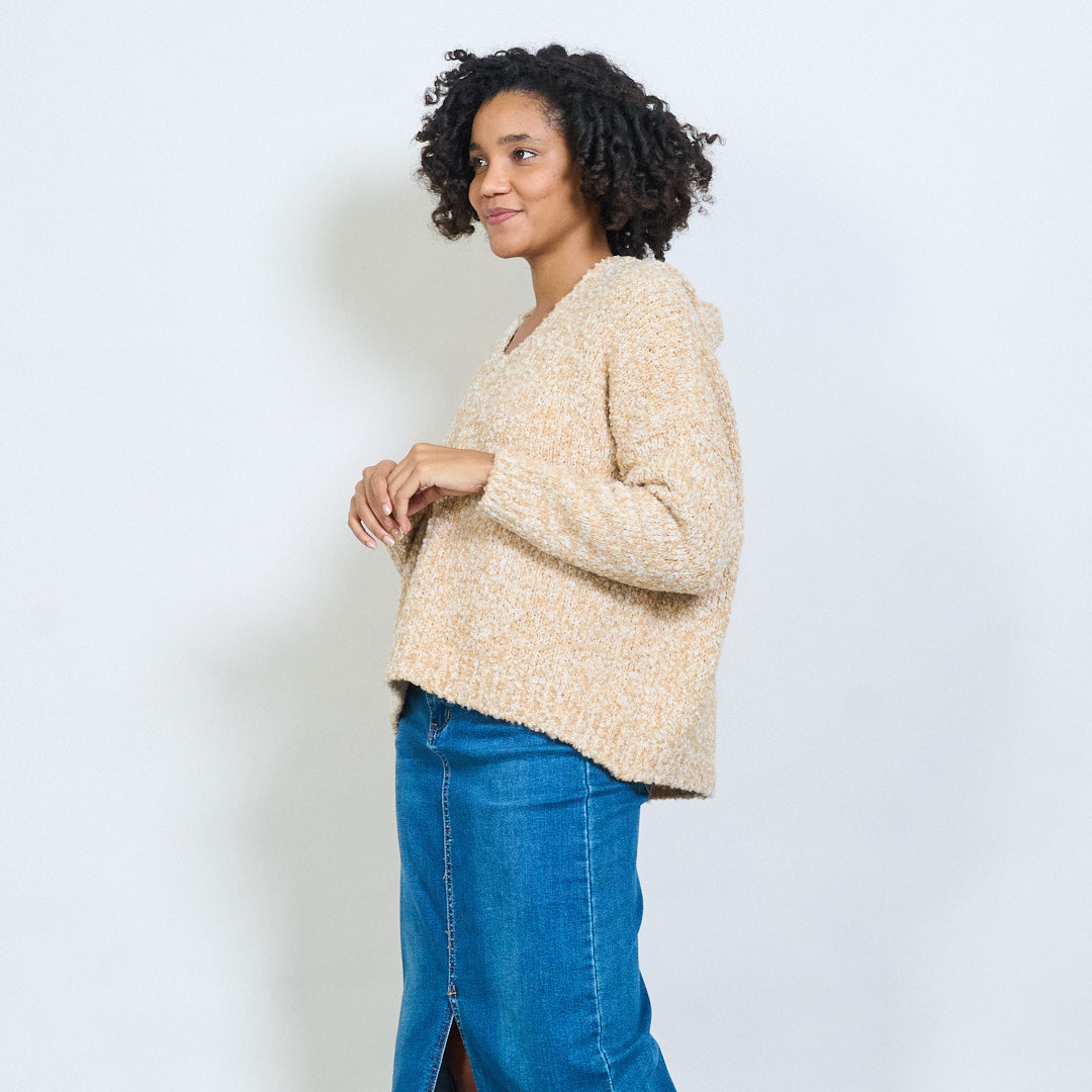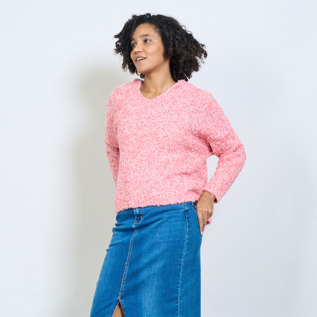 bouclé带连帽V领超大毛衣批发