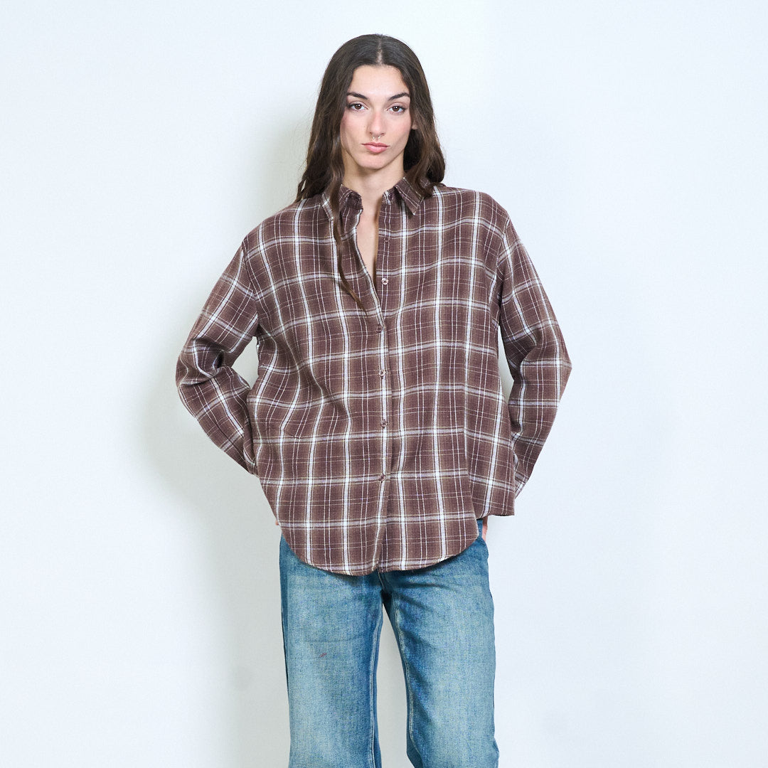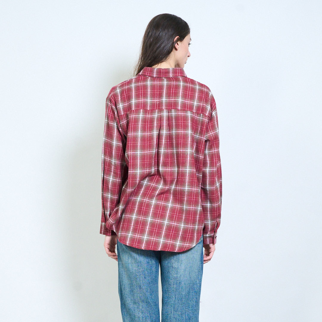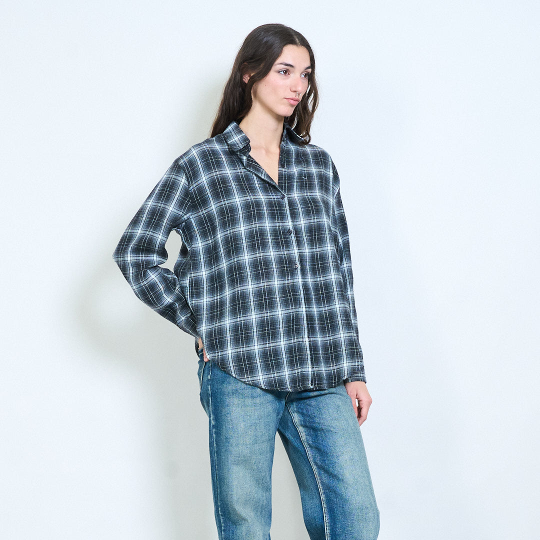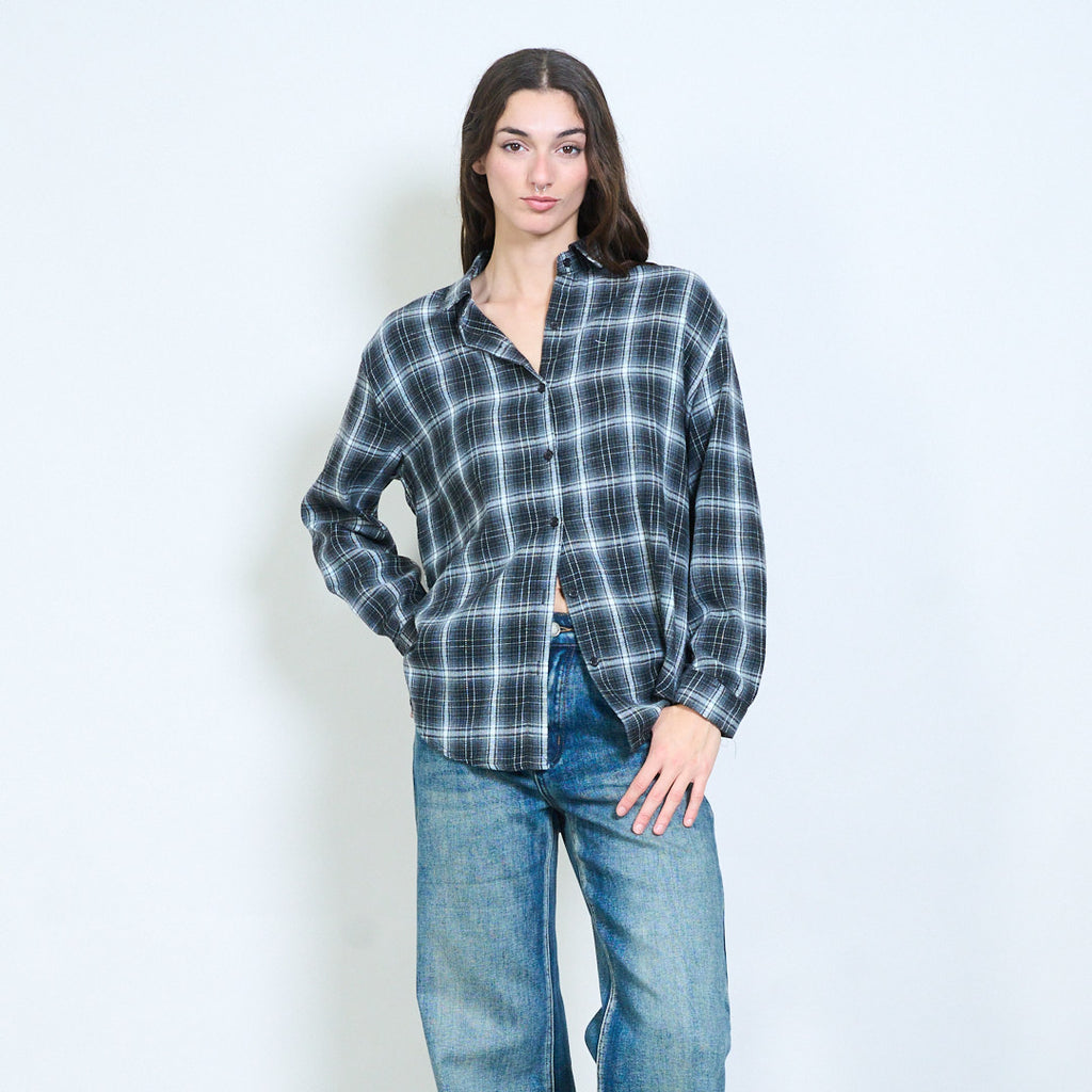 格子格纹前扣休闲长袖衬衫批发