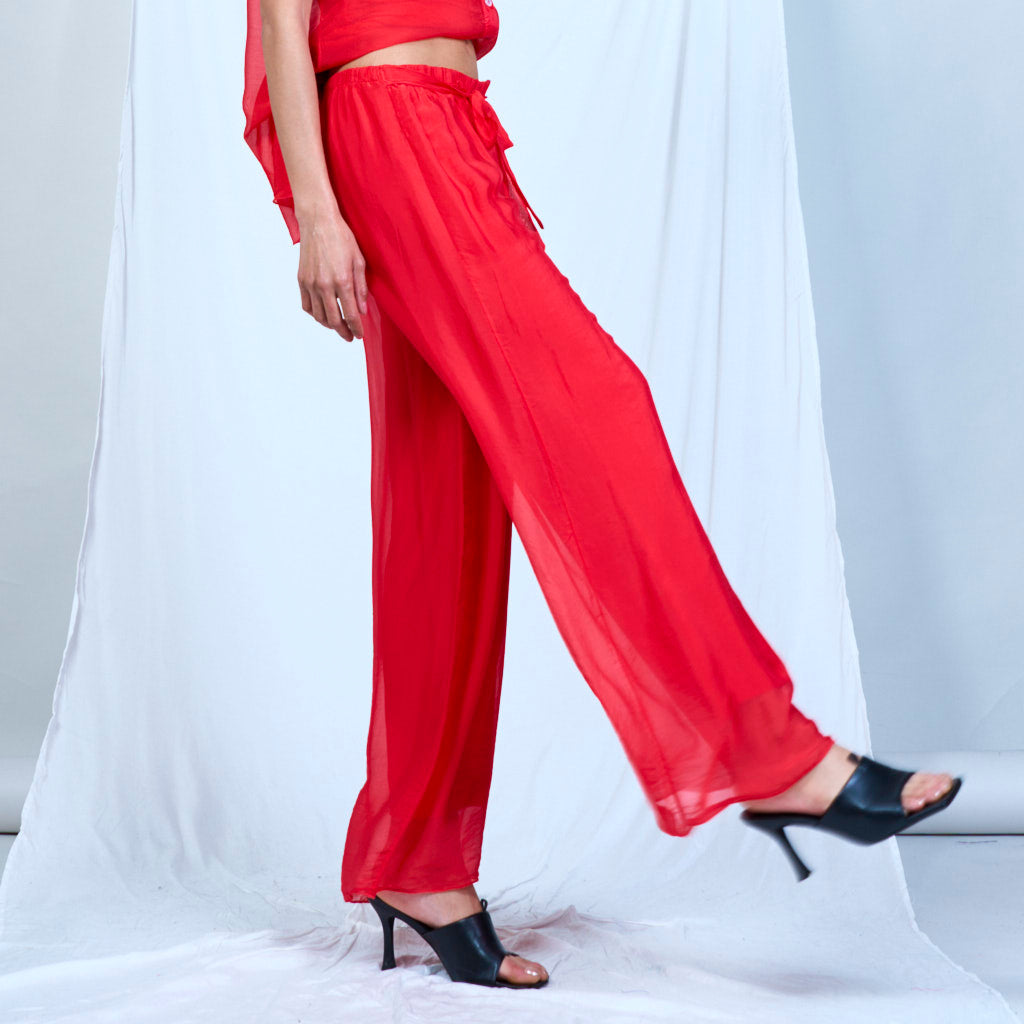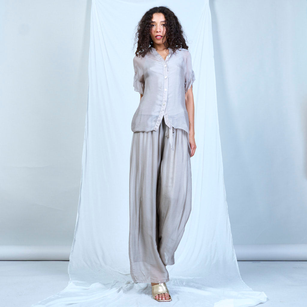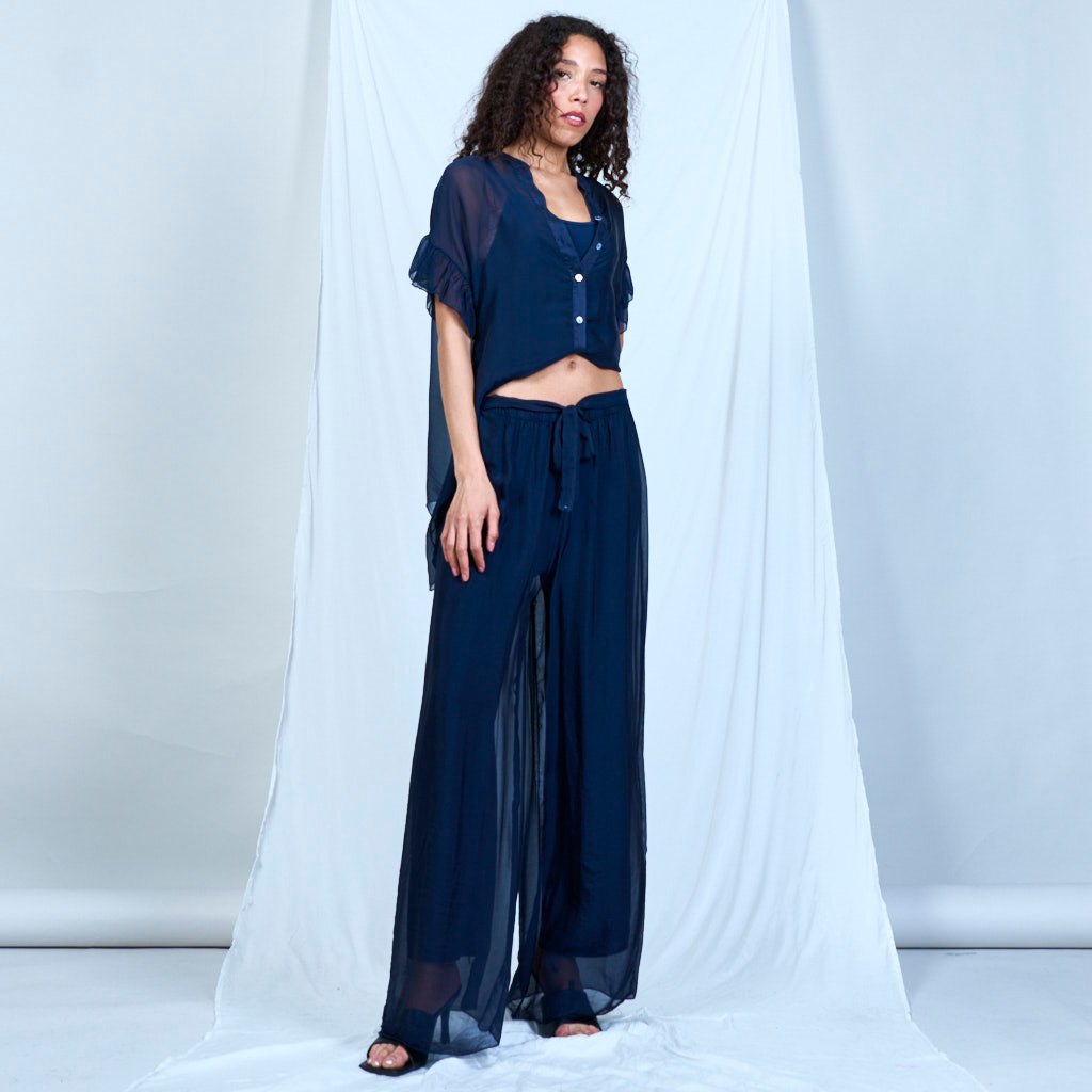 丝绸雪纺光滑的木炭吊带式palazzo裤子批发