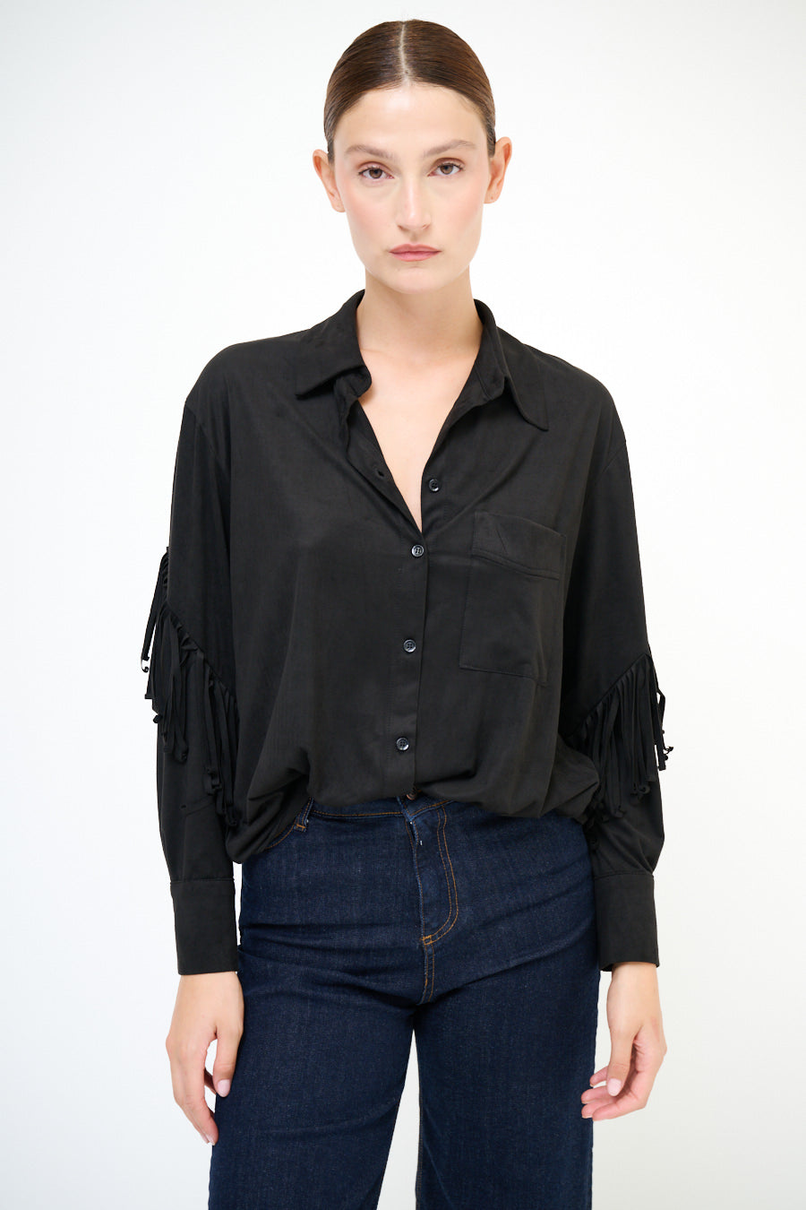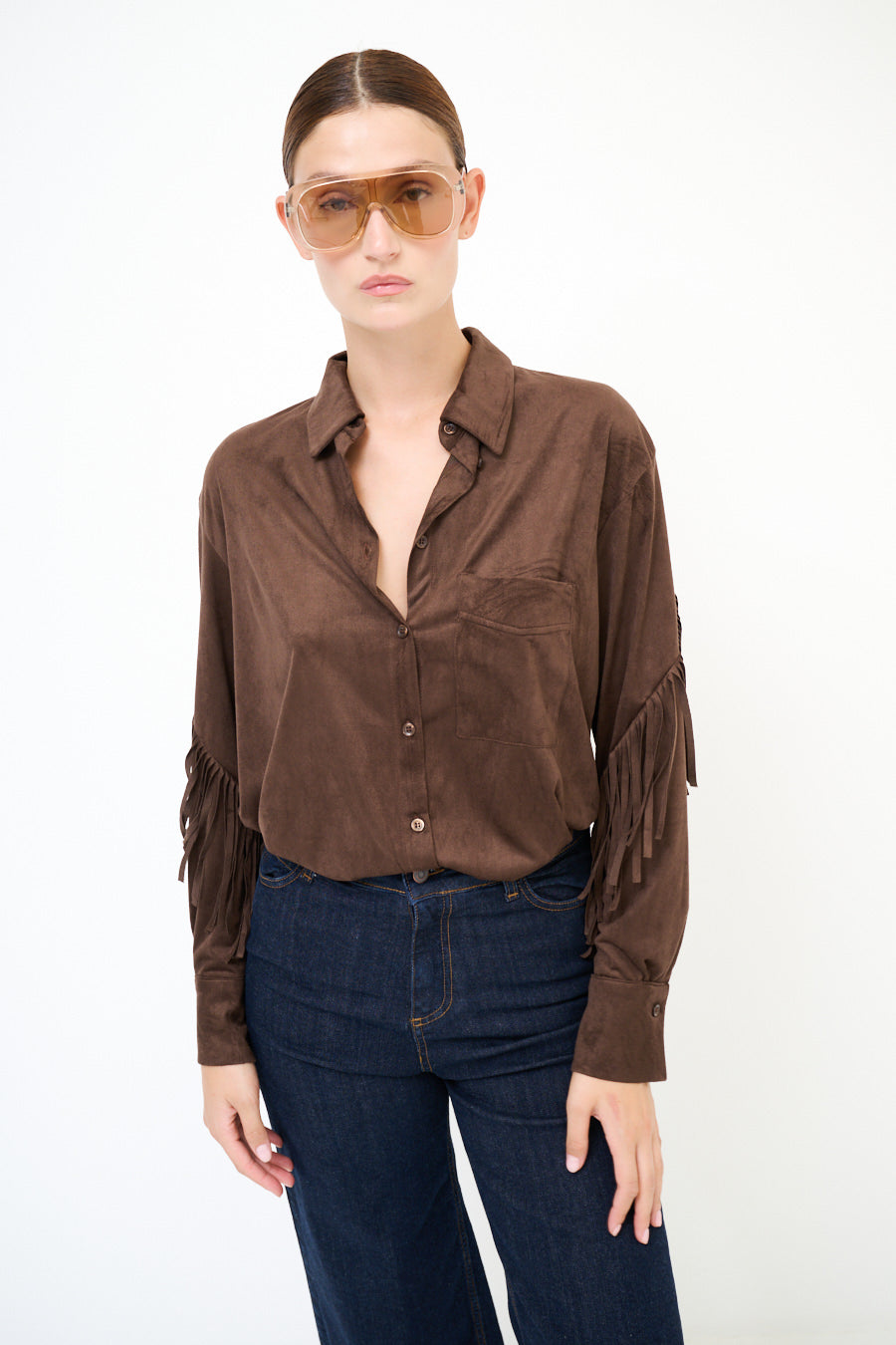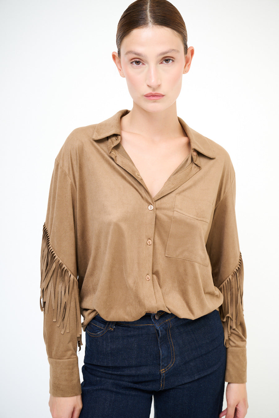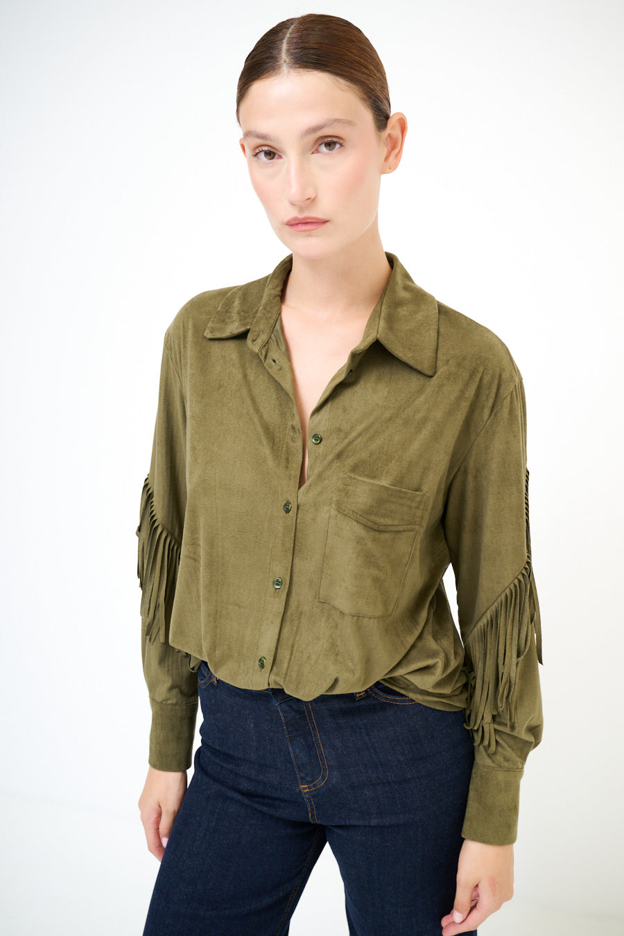 - 经典的纽扣衬衫设计具有柔软的绒面式质地