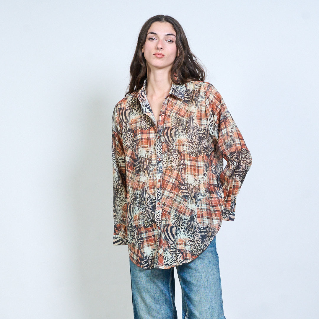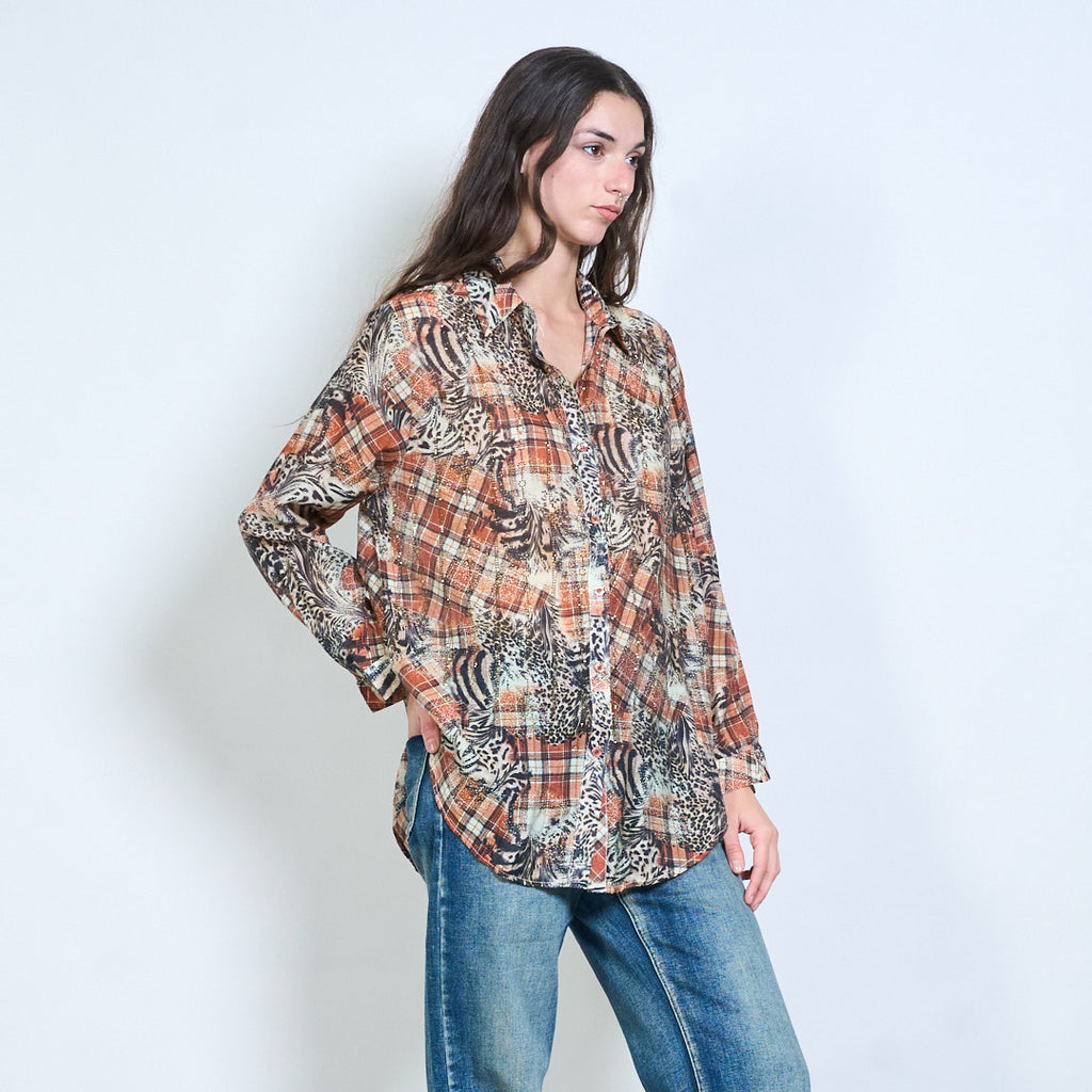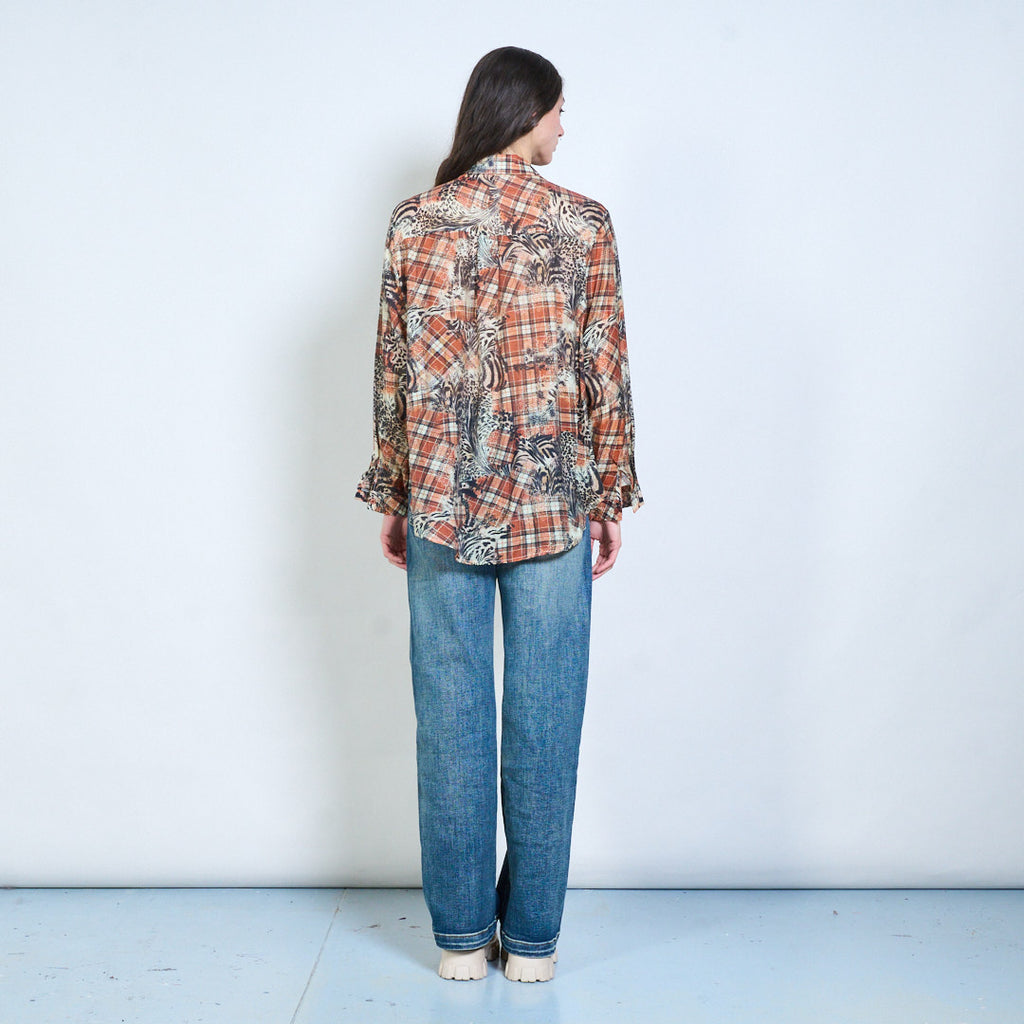 Animalia edit 格纹混合动物图案透明纽扣衬衫批发