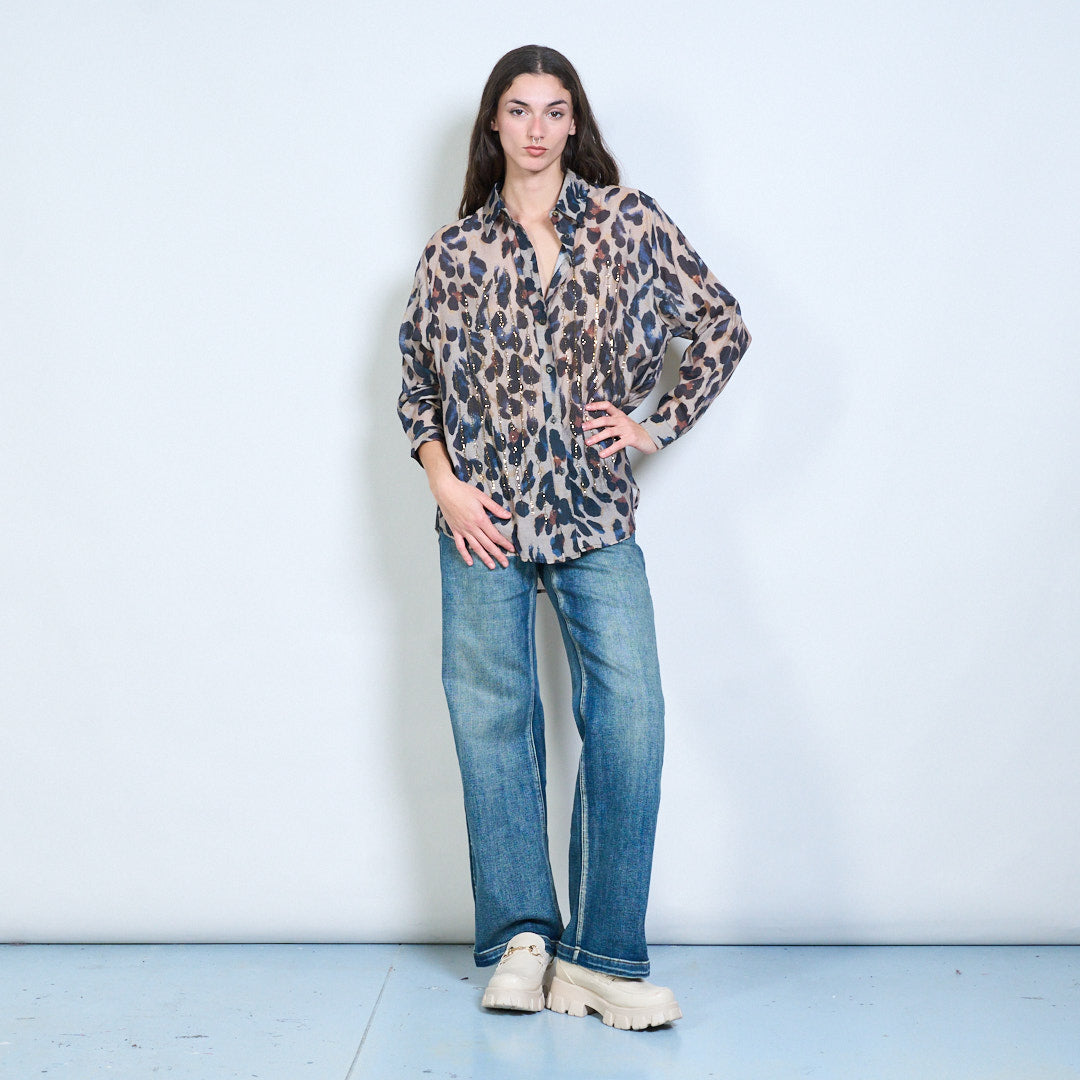 - 通体豹纹图案设计,彰显大胆、富有表现力的个性