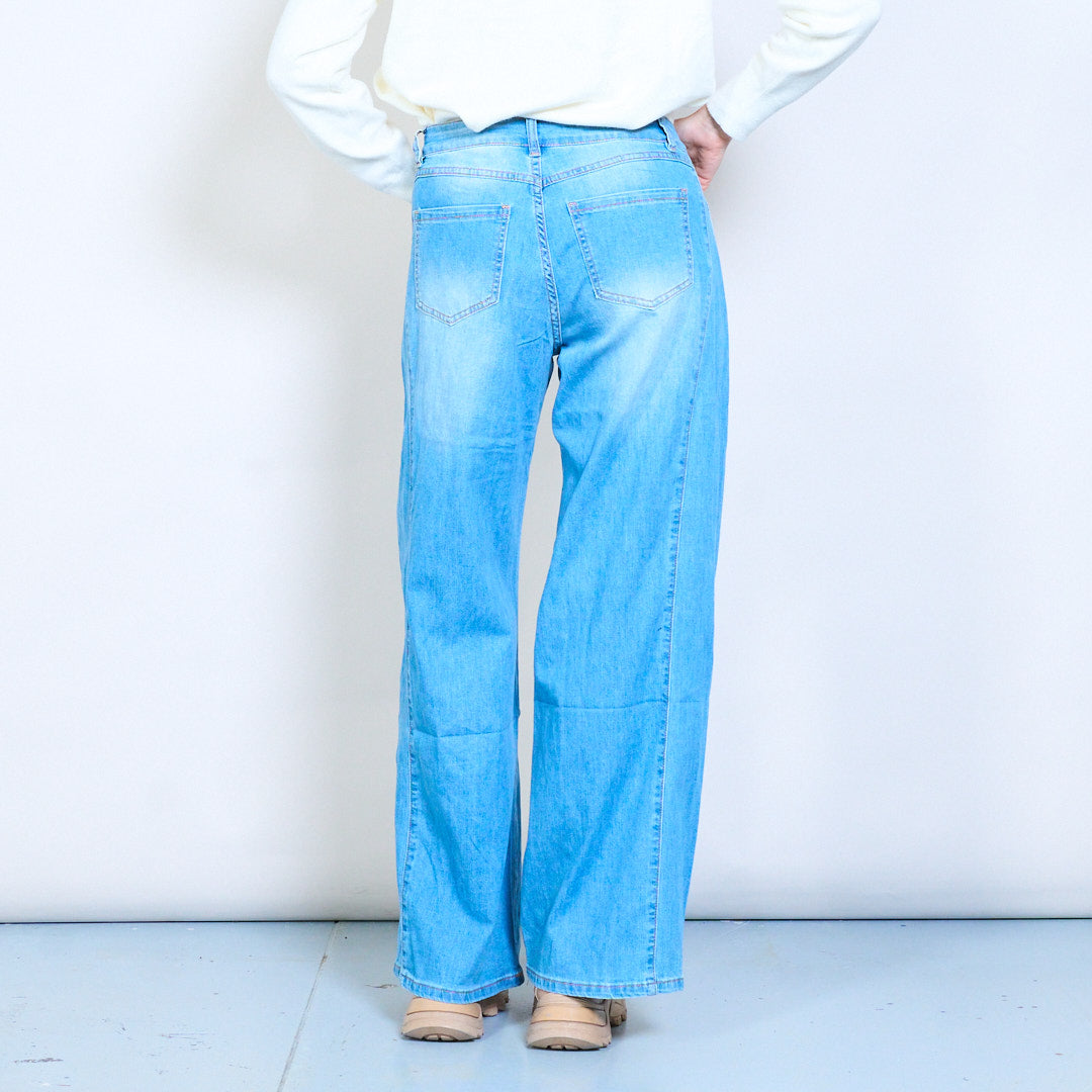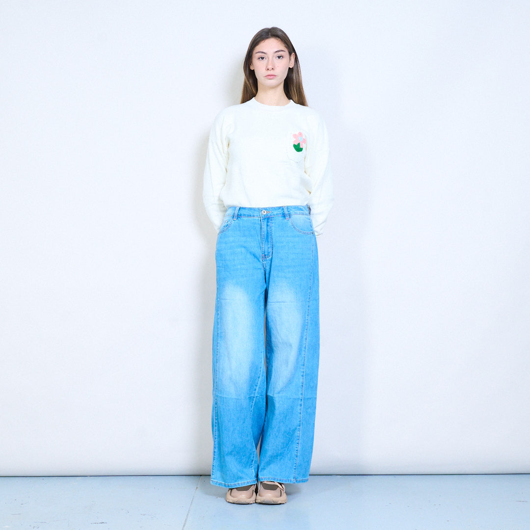 高腰宽幅秋季宽松廓形牛仔裤批发