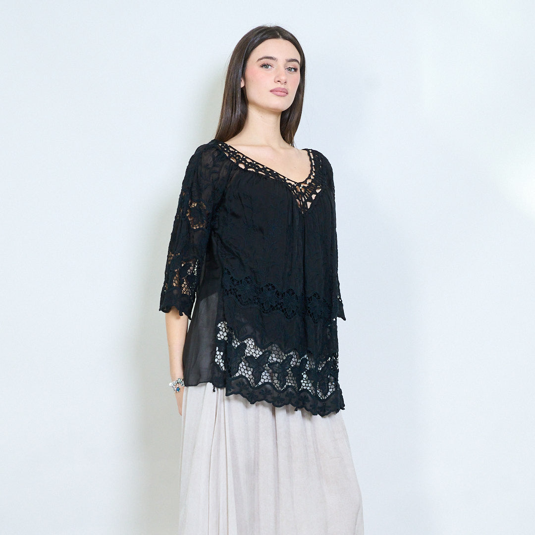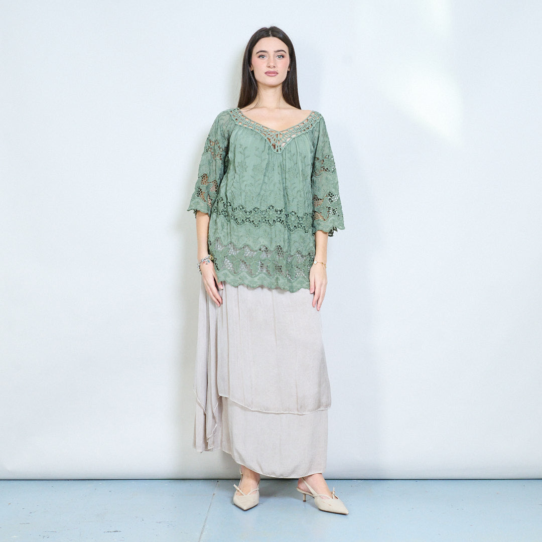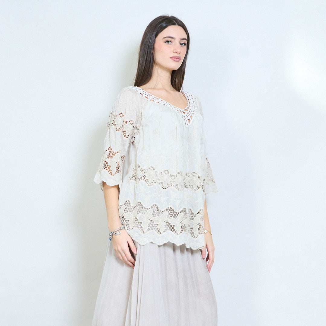- 轻盈网眼衬衫,饰有精致花卉刺绣