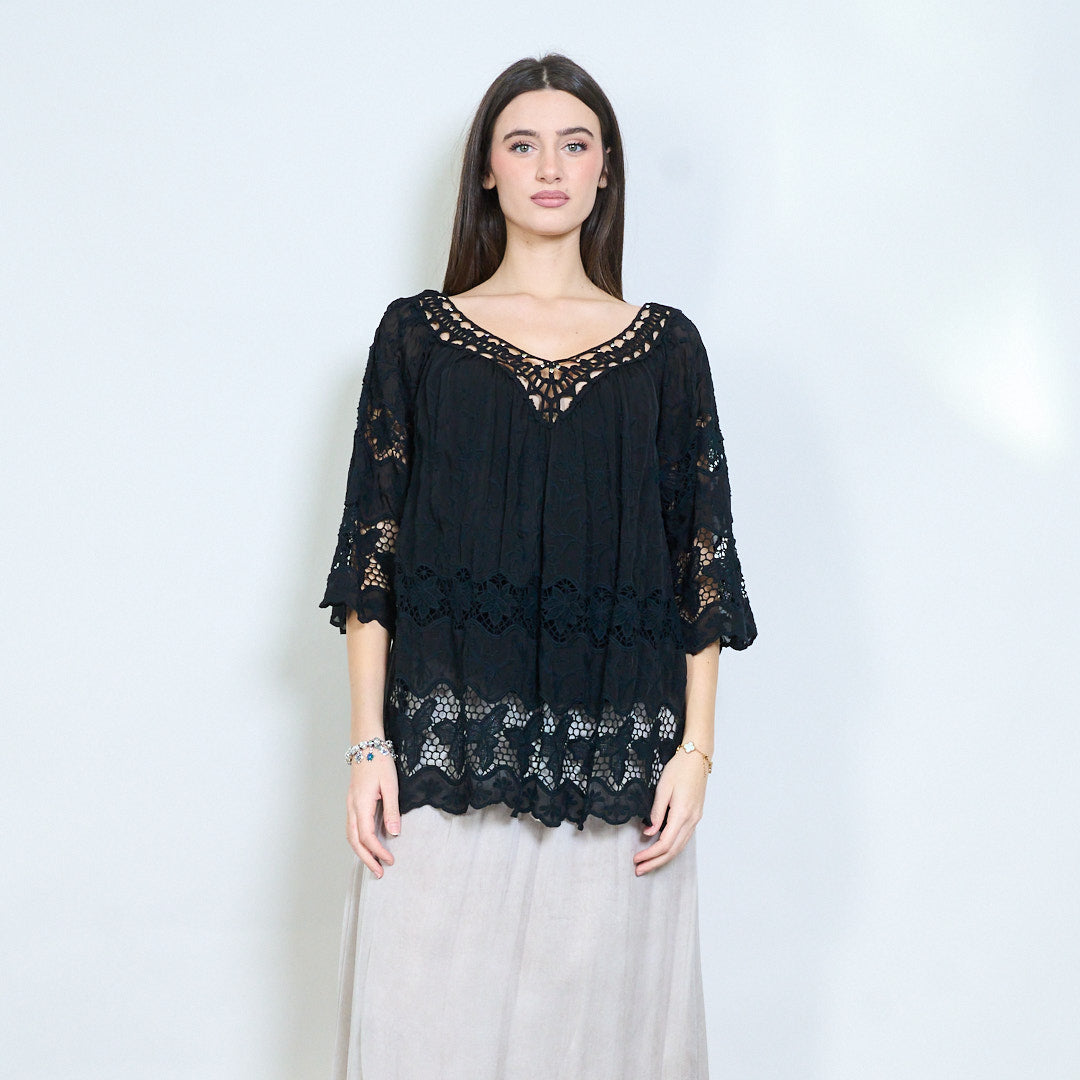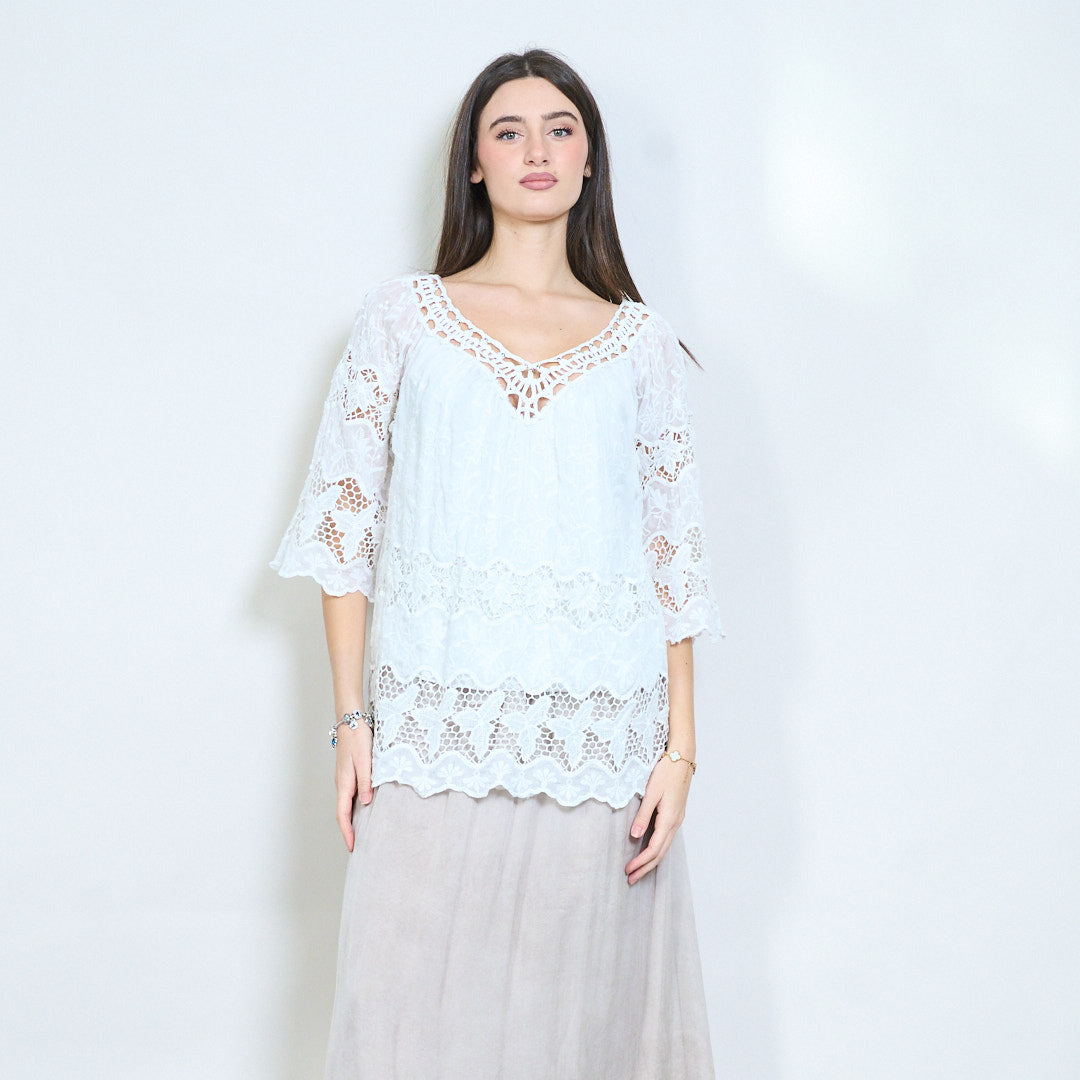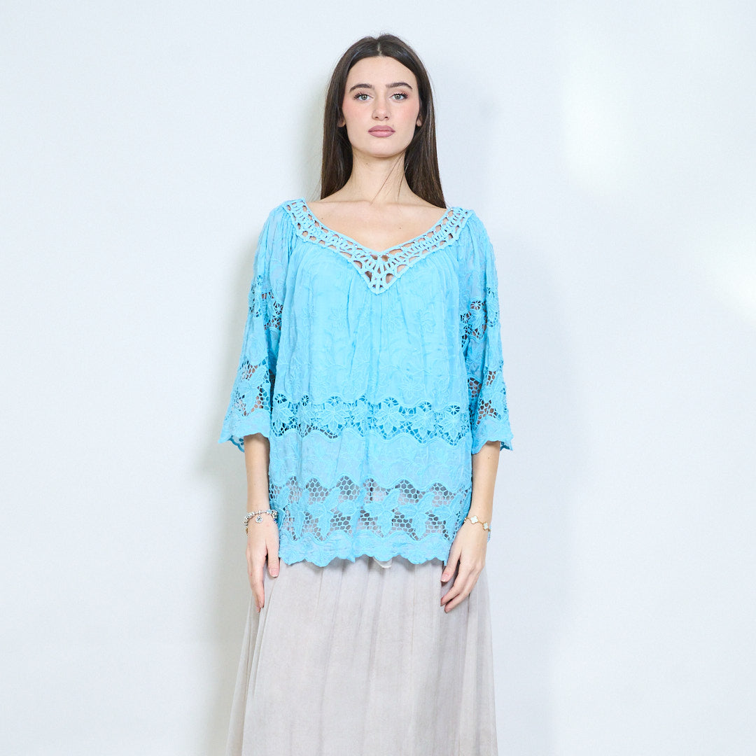 - 轻盈网眼衬衫,饰有精致花卉刺绣