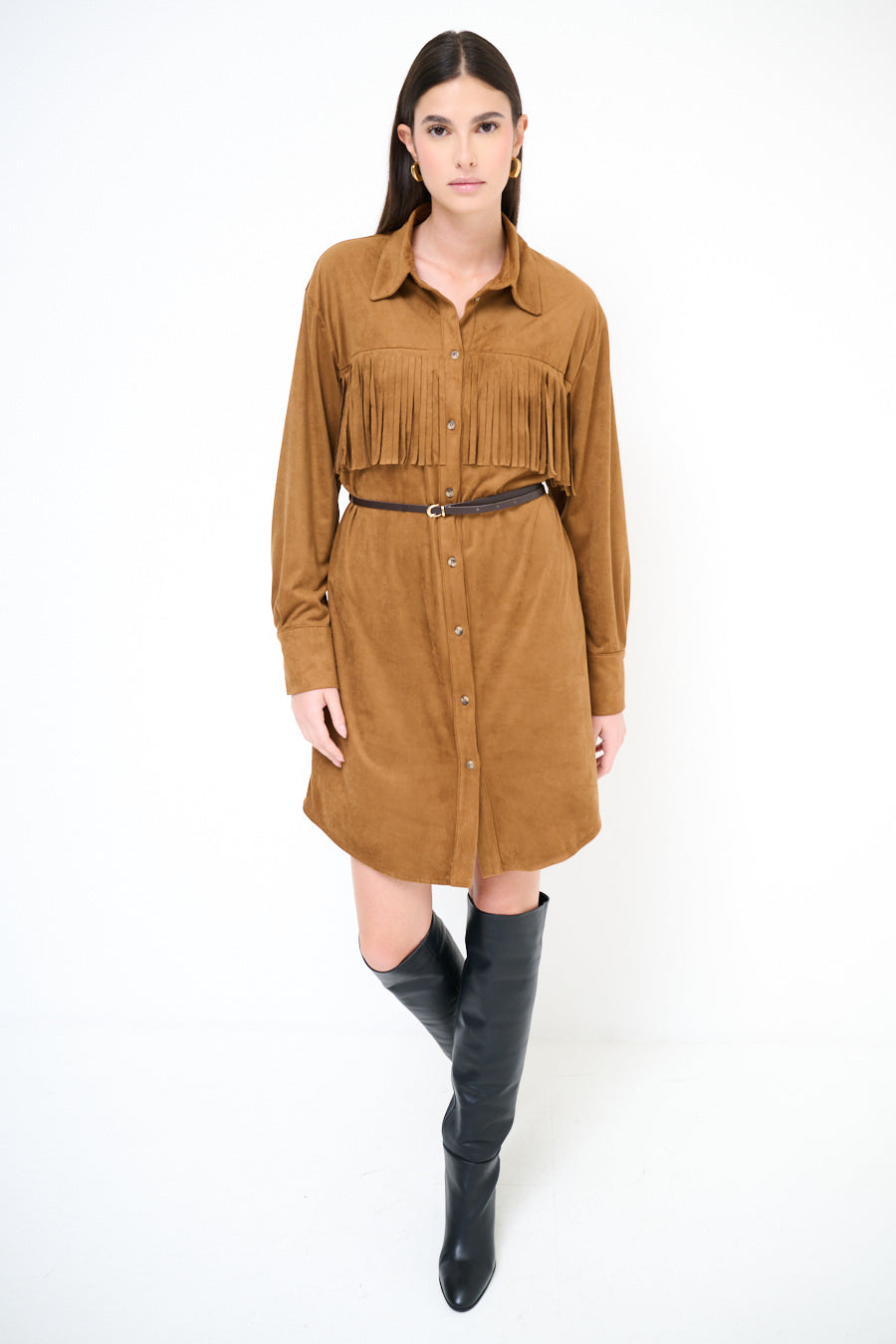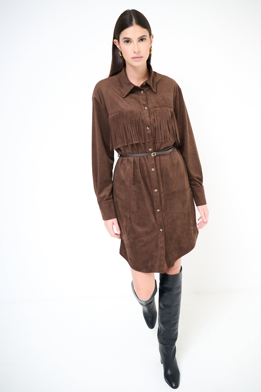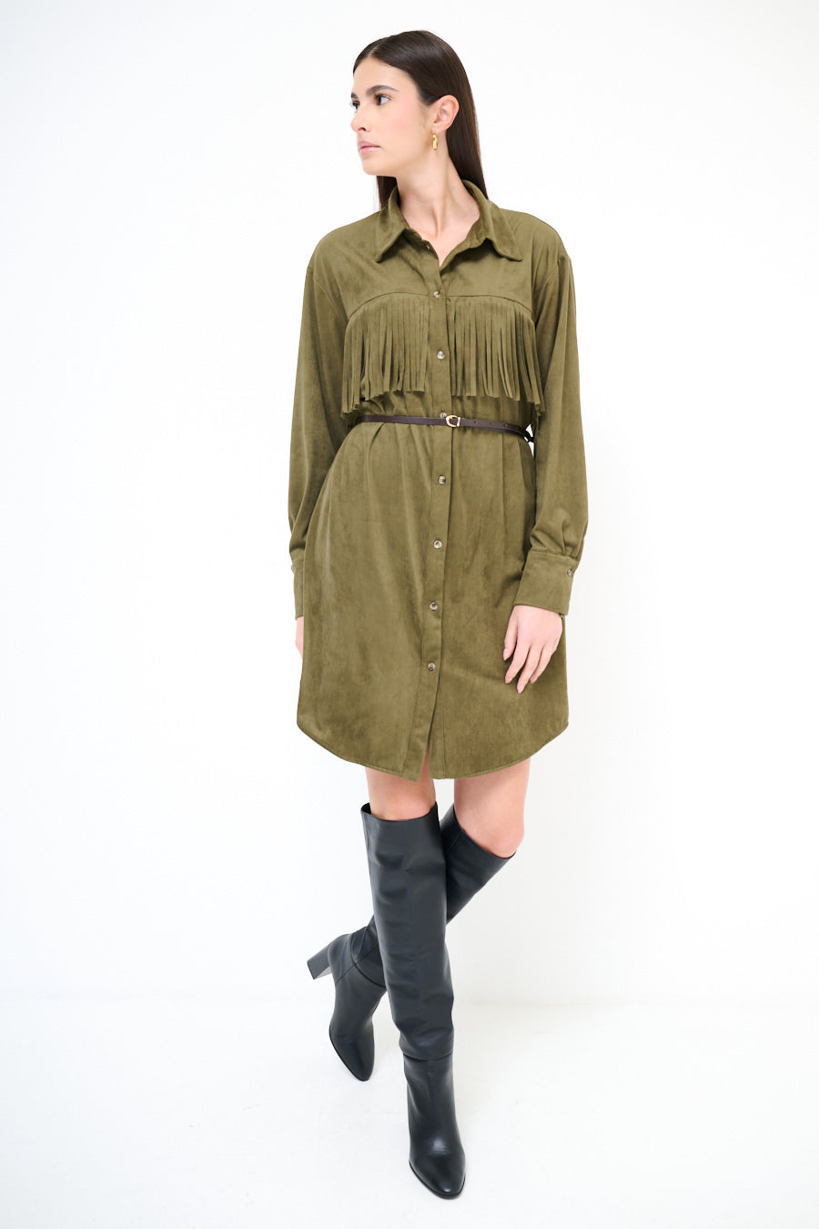 流苏细节衬衫连衣裙批发